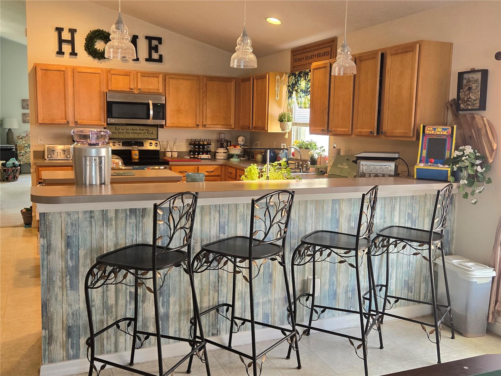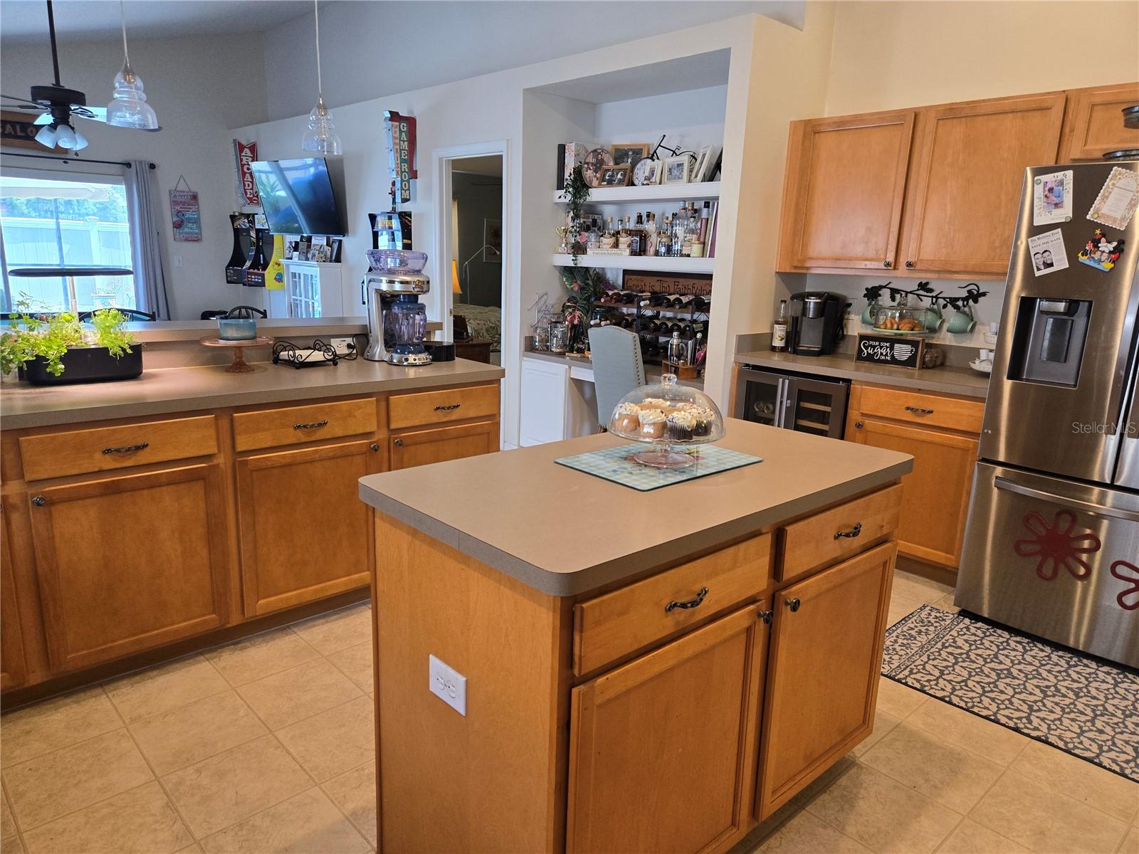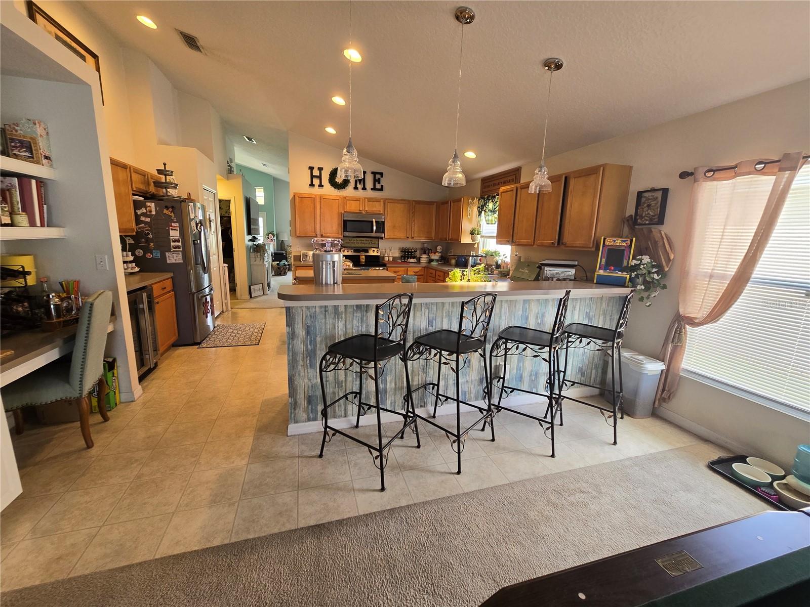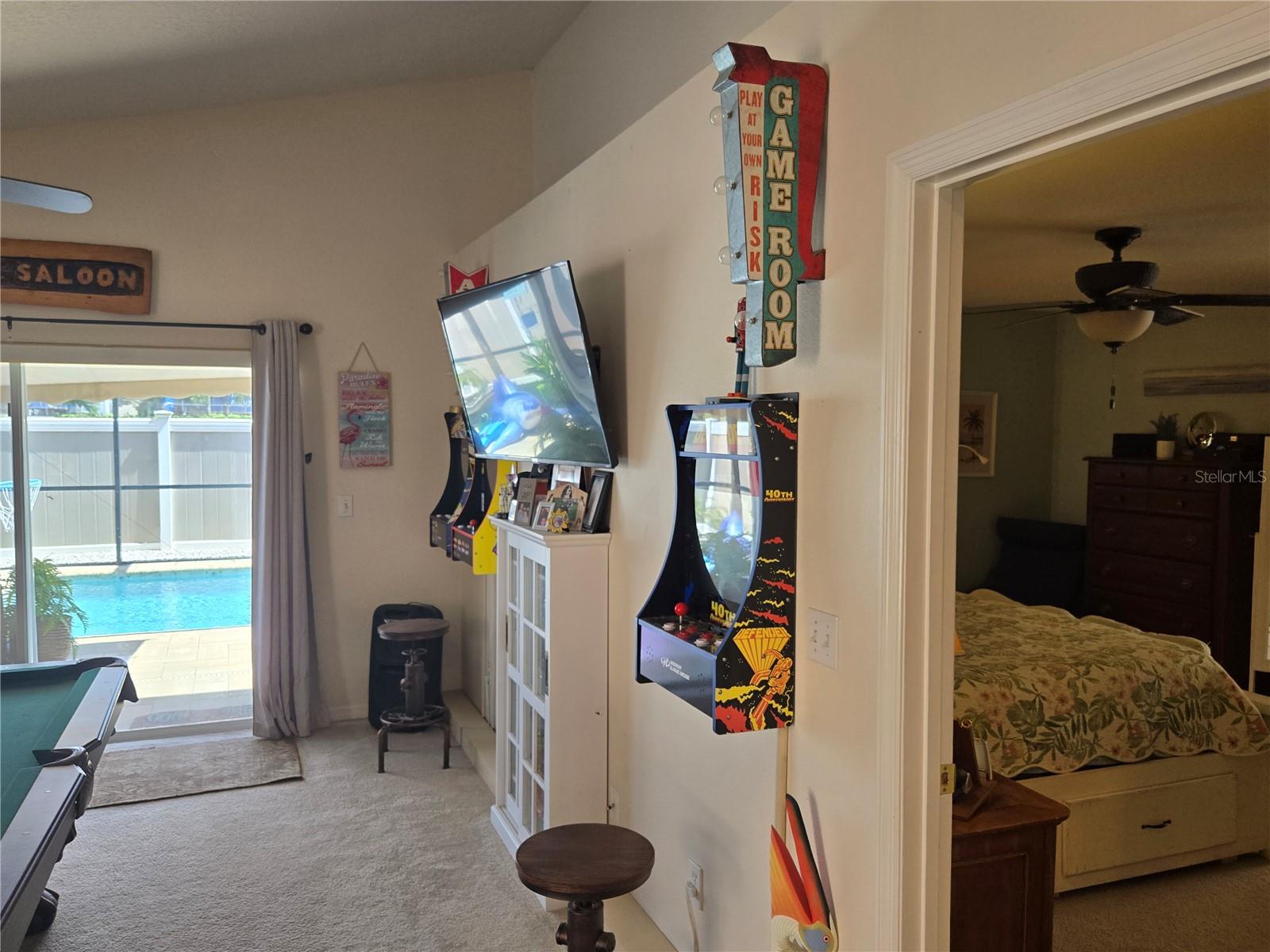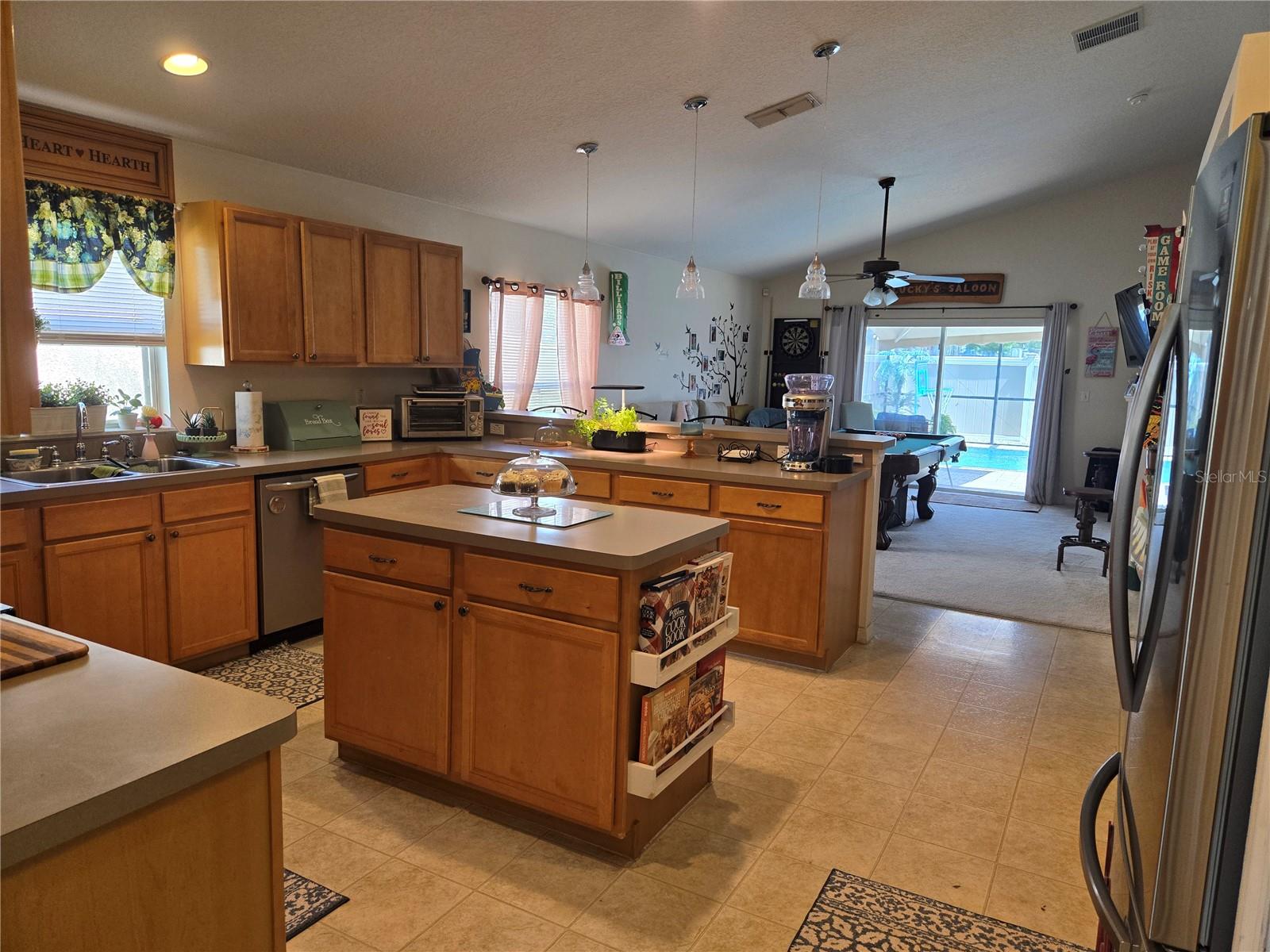 A delightful POOL home in this quiet, stable, popular Neighborhood! What a rare gem! Family Room is a Game Room - and the games and pool table will be included at a full-list offer! 3/2 with open Kitchen to FR and flows right out the door to the new swimming pool that has plenty of deck, umbrella tables, and retractable screen on a 38x51 concrete patio space - Current owners even enjoyed outdoor MOVIE NIGHTS. Open floor plan when you enter the front door brings you into the Formal Dining Room and Living Room. The kitchen and family room is one more step into the house. This is the perfect place to gather all the family or just be the entertainer! You have an attached 2-car garage with overhead door opener. New roof this year, AC 5 years old, and the pool was put in then too. Pool has heater and lights! The retractable shade screen provides peace of mind in Florida's crazy weather. This house has SOLID CONCRETE walls, not cement block. Lots of peace of mind here! The kitchen includes plenty of cabinet space and a breakfast bar, and the open floor plan to the family room makes the place feel so spacious!