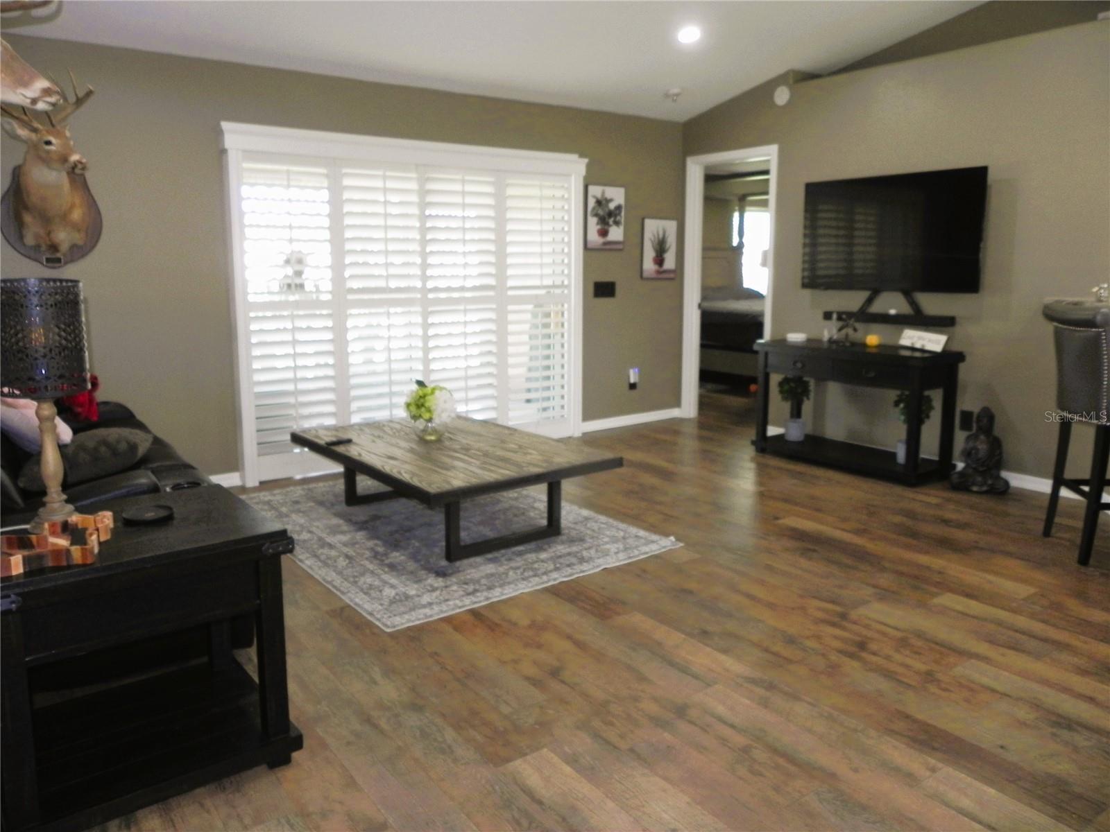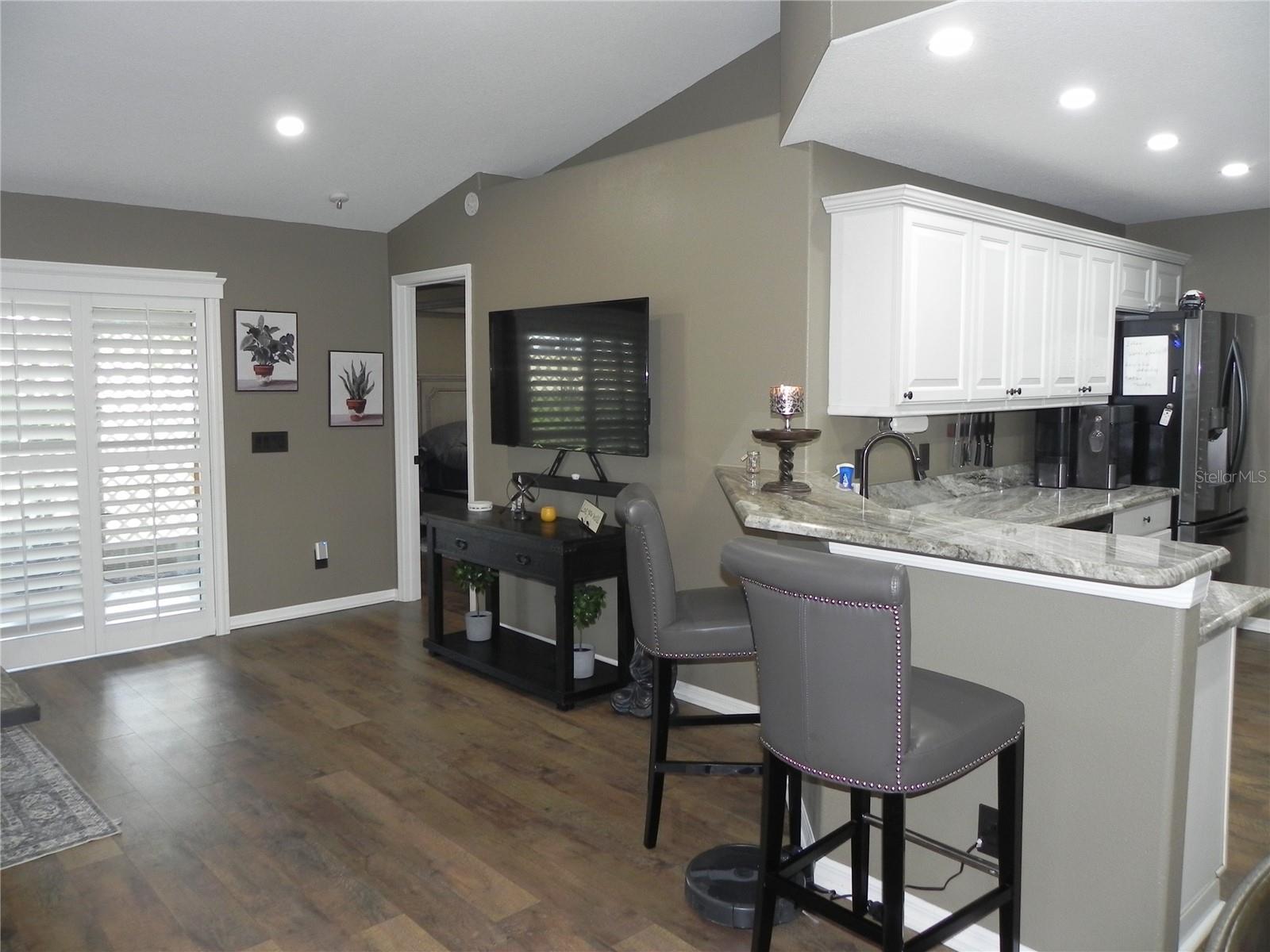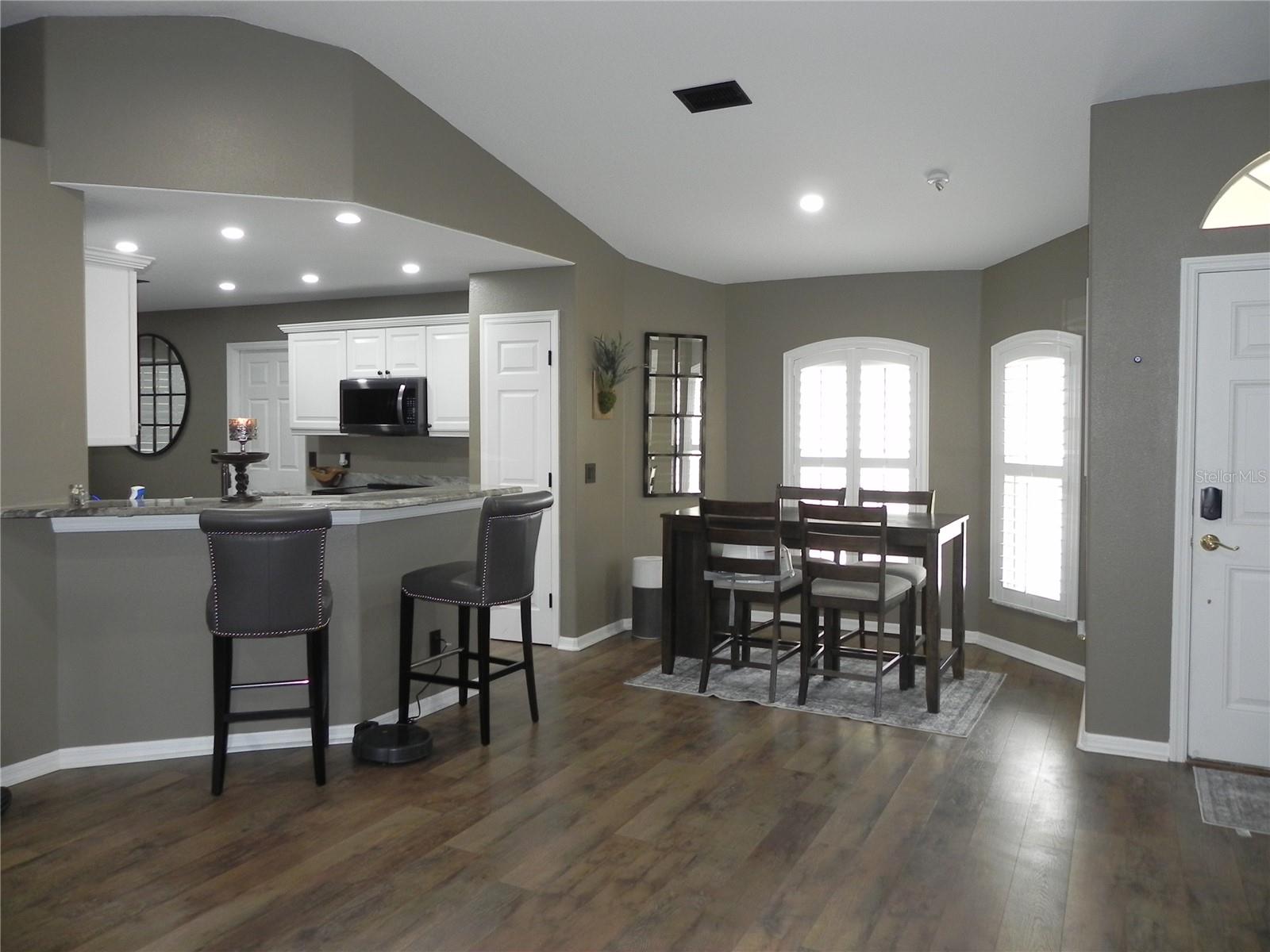 Great home located in beautiful Winterset! This 3br/2ba home has been well maintained with new granite countertops and appliances in the kitchen and updated flooring throughout most of the home. Beautiful landscaping follows you to the front door where you will enter into the great room with vaulted ceilings. This home has an open concept that allows the great room, dining room and kitchen to flow together. There is a breakfast bar that separates the kitchen from the great room making for a wonderful place to sit and chat. The kitchen also includes a dinette area and the laundry closet. Plantation shutters cover the sliding glass door from great room to screened back patio. The primary bedroom has a walk-in closet and en suite bathroom with dual sinks and roomy shower. The two extra bedrooms are on the other side of the home along with the guest bath and two linen closets. Large backyard and 2car garage with a side door. Tile roof. The community is gated and includes a clubhouse, pool, tennis courts and shuffleboard. Located on Lake Winterset, the views from these areas are gorgeous.