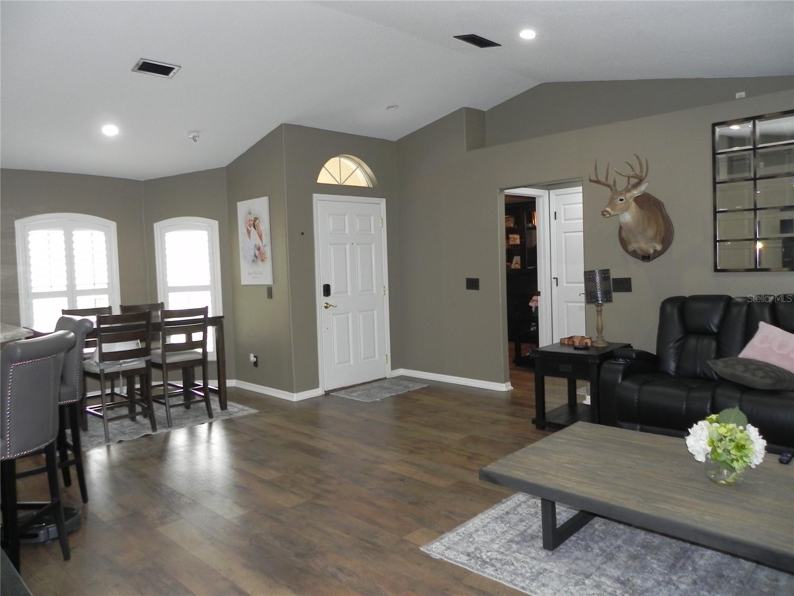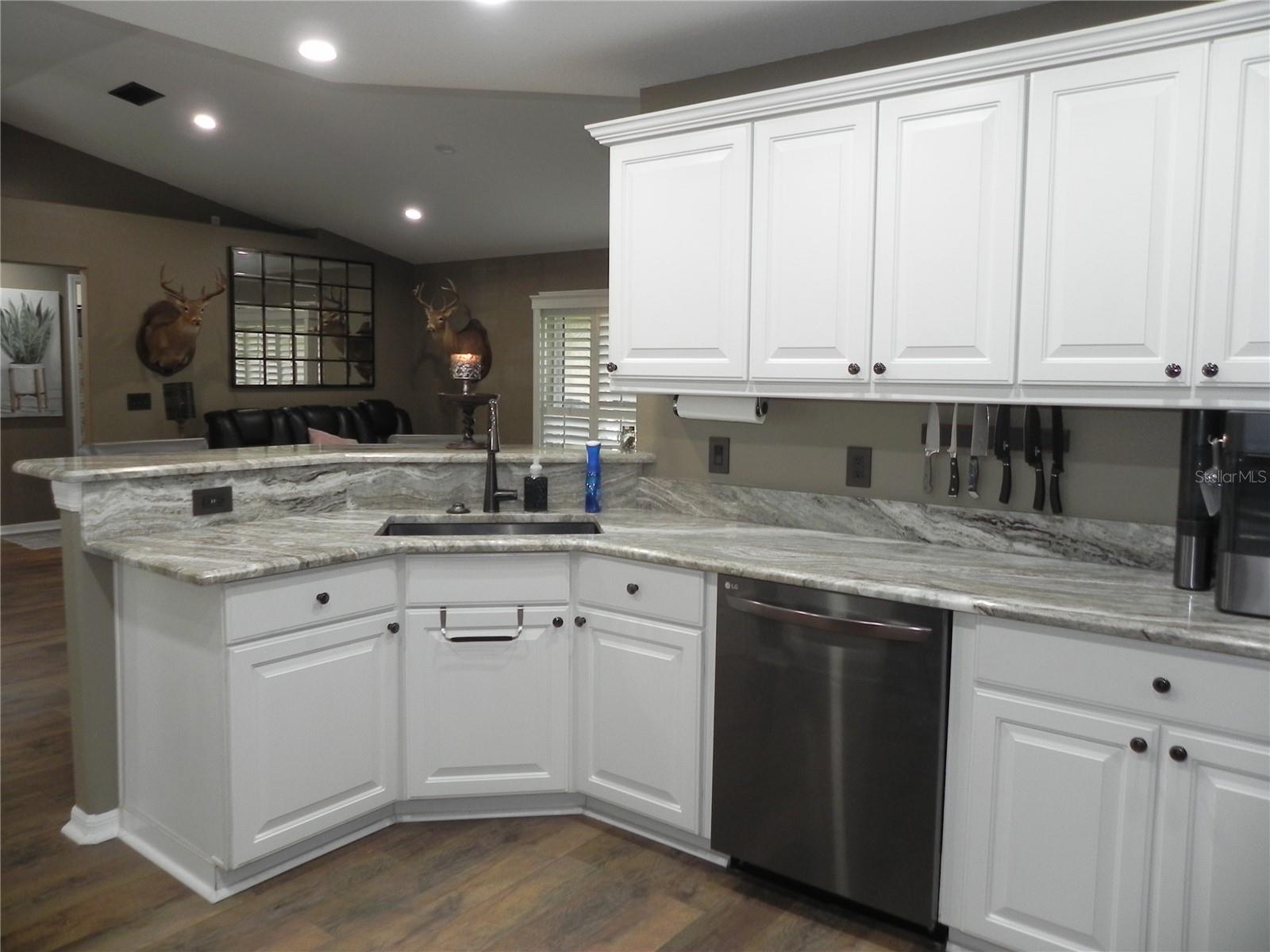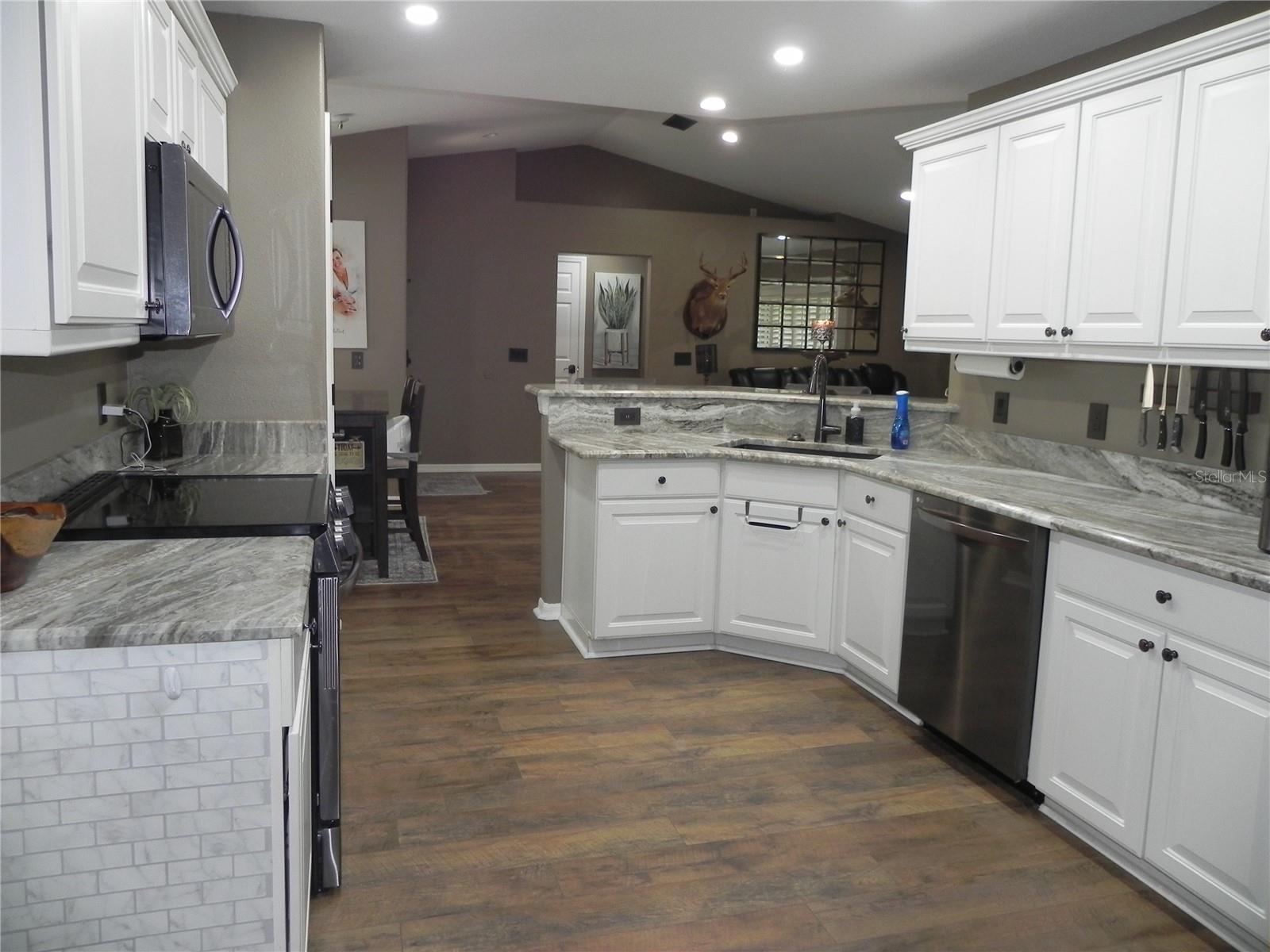 Great home located in beautiful Winterset! This 3br/2ba home has been well maintained with new granite countertops and appliances in the kitchen and updated flooring throughout most of the home. Beautiful landscaping follows you to the front door where you will enter into the great room with vaulted ceilings. This home has an open concept that allows the great room, dining room and kitchen to flow together. There is a breakfast bar that separates the kitchen from the great room making for a wonderful place to sit and chat. The kitchen also includes a dinette area and the laundry closet. Plantation shutters cover the sliding glass door from great room to screened back patio. The primary bedroom has a walk-in closet and en suite bathroom with dual sinks and roomy shower. The two extra bedrooms are on the other side of the home along with the guest bath and two linen closets. Large backyard and 2car garage with a side door. Tile roof. The community is gated and includes a clubhouse, pool, tennis courts and shuffleboard. Located on Lake Winterset, the views from these areas are gorgeous.