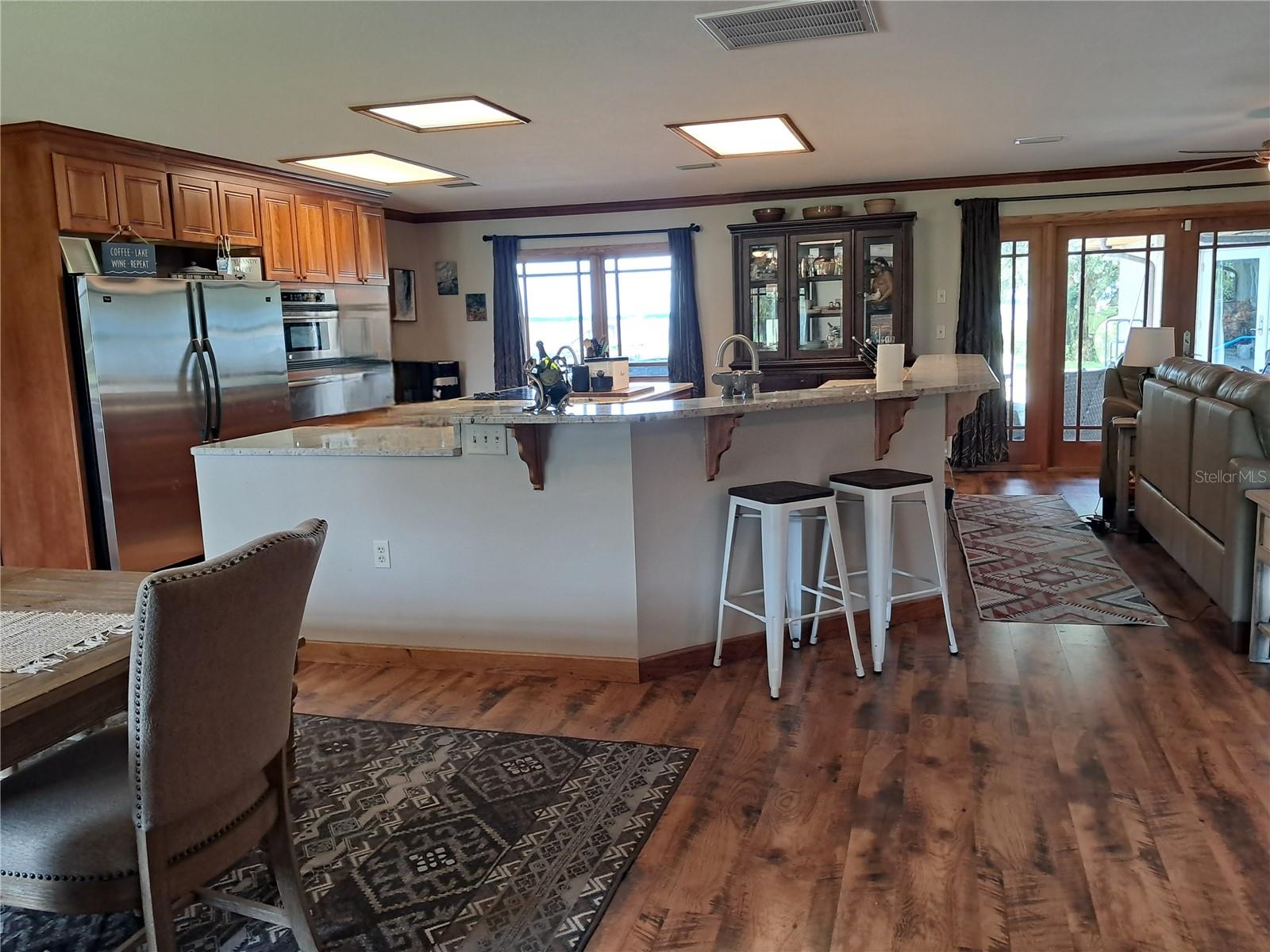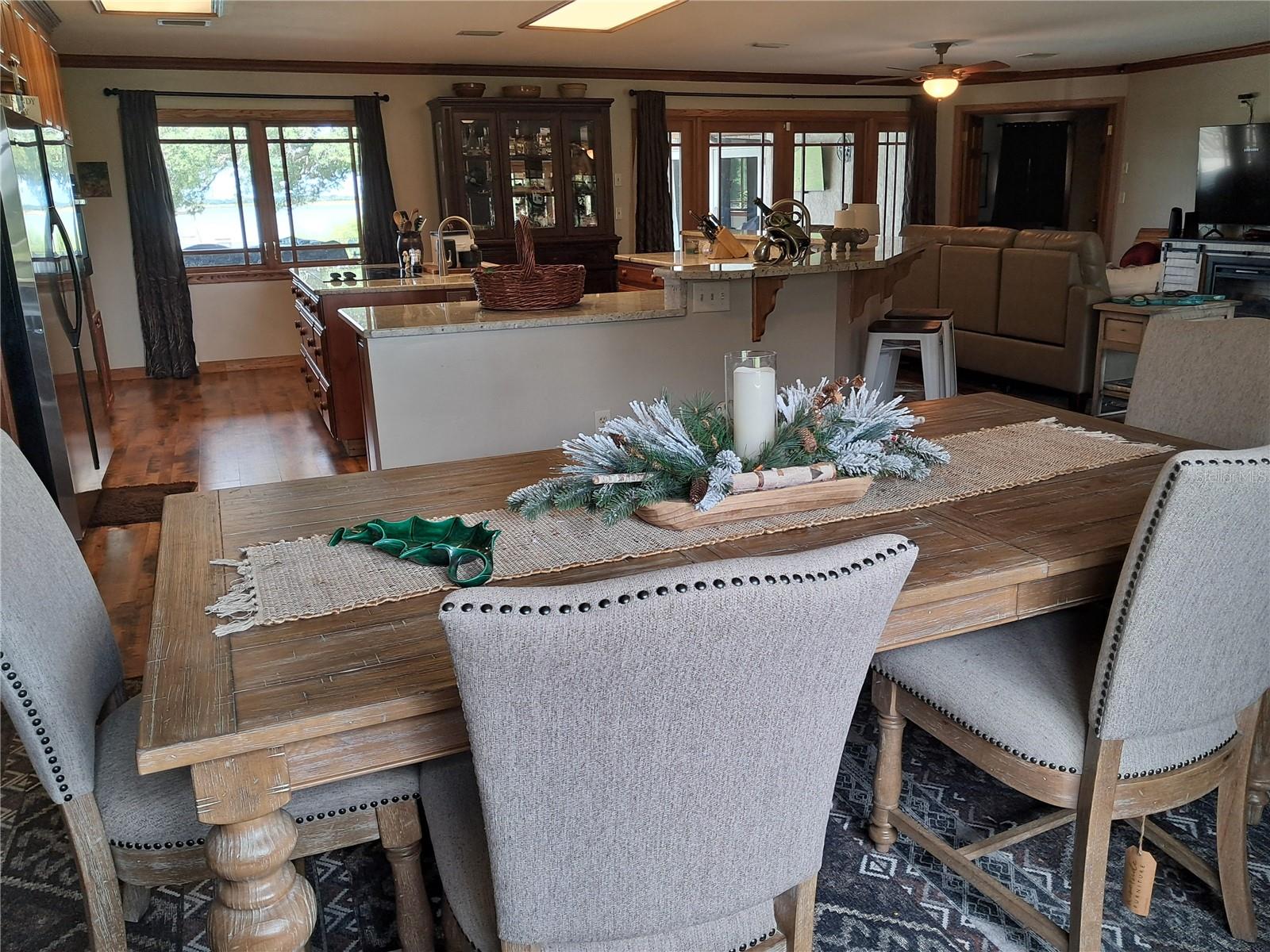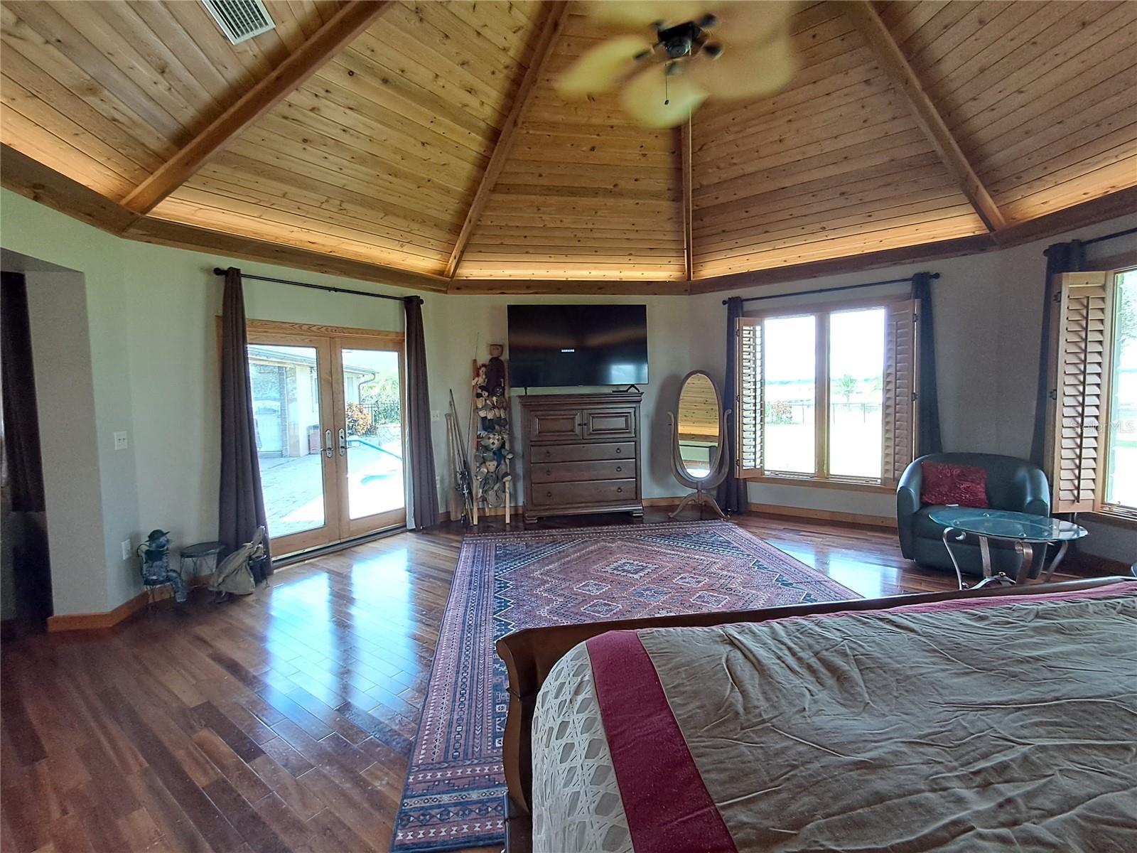 Don't miss the opportunity to own this affordable Lakefront Pool home sitting on nearly an acre and boasting some of the most stunning sunsets over Lake Hamilton! Enjoy wildlife and an occasional Sea Plane landing from your dock, poolside or through all of the efficient Jeld Wenn windows and French doors. The open kitchen, living, dining and main bedroom all provide gorgeous lake views too! A host's dream, the kitchen with expansive solid surface counters, featuring two dishwashers, a commercial-grade refrigerator/freezer, built-in cooktop, microwave, warming drawer, and a second sink are perfect for entertaining. The primary bedroom is a true retreat, with an awe-inspiring octagonal shape wood ceiling, sitting/dressing area and spacious walk-in closet. Relax and unwind in the huge walk-in shower with beautiful tile work and multiple shower heads to help wash the day away. Jeld Wenn French doors in the primary lead to the heated pool and spa as well as a private outdoor shower, perfect for pet washing. The second bedroom is complete with its own en-suite and view of the park like front yard with avocado trees and beautiful palms. The 3rd full bath is conveniently located by the pool patio. The large pantry room, adjacent to the kitchen and near the pool bath, includes two wine refrigerators to keep your guests' refreshments chilled while they enjoy the sunsets from the wrought iron-fenced backyard. When the water beckons, take advantage of the new dock built in 2023, accommodating both boat parking and trips to waterfront dining. Additional features bringing peace of mind, include roof replacement in 2022, updated Trane HVAC system and ductwork in 2020, interior paint in 2022, new garage door 2022, septic drained and inspected in 2022, new pool pump in 2023, a timed irrigation system from the lake, elegant copper gutters, attic insulation, central vacuum system, 50-amp RV hookup, 2- 200 amp electrical panels for EV, along with the inclusion of both washers and dryer. Please call today and allow me to help you obtain this stunning lakeside property!