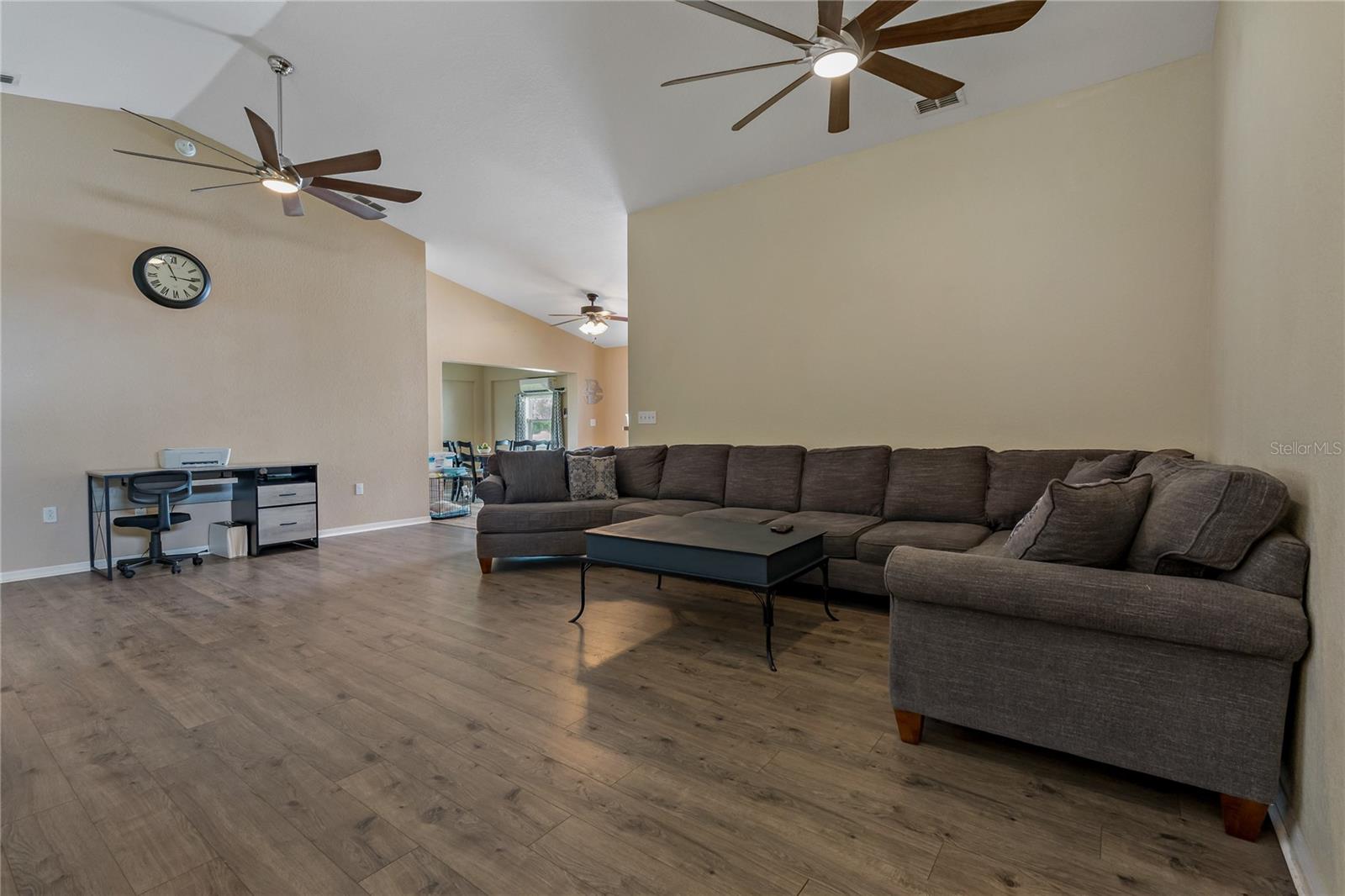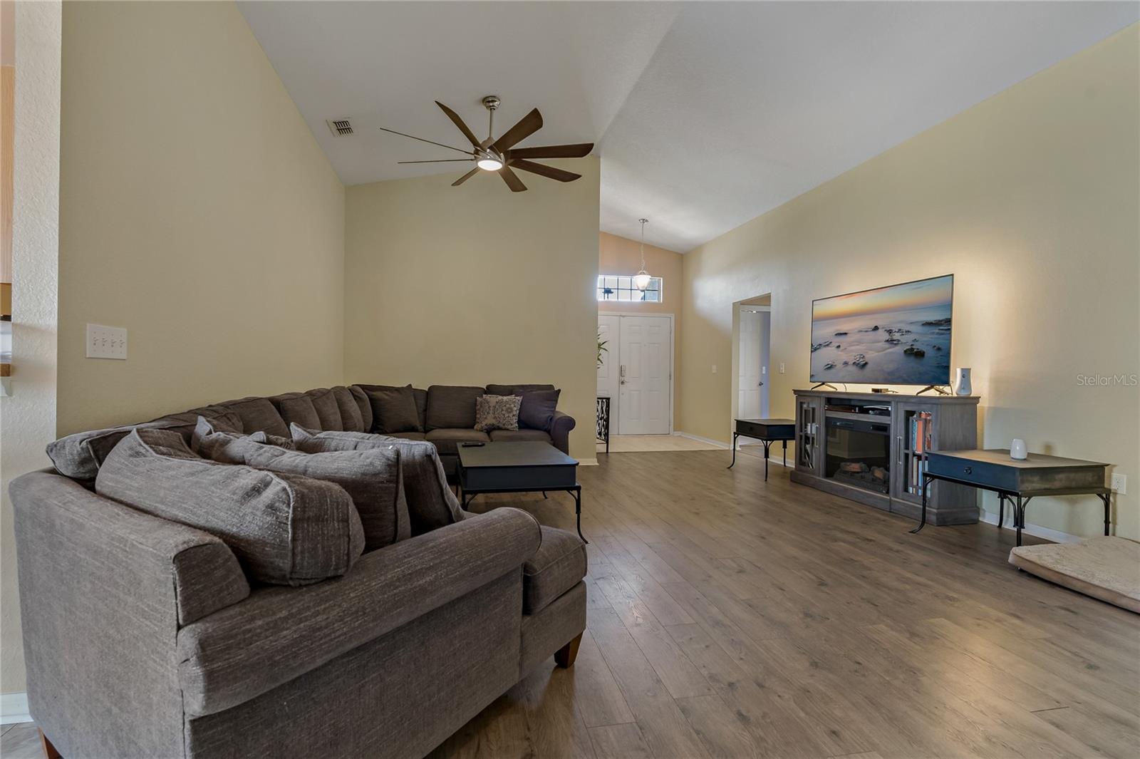 WELL MAINTAINED!! ROOF replaced in 2024!! Beautiful 3 bedroom, 2 bath home with a 2 car garage in CRESECENT VIEW. Low Annual HOA fee! Nestled on 0.23 acres, this home offers nearly 1700 square feet of living space. The perfectly landscaped and inviting entryway provides a WELCOME HOME feel! As you enter the home, you are greeted by the CHARMING foyer that leads right into the EXPANSIVE living room, dining, and the tucked away GALLEY STYLE kitchen. VAULTED CEILINGS enhance the spacious OPEN FLOOR PLAN! The kitchen boasts STAINLESS STEEL appliances, ample cabinet space, a GORGEOUS backsplash, and additional eating space. INSIDE LAUNDRY ROOM. The primary bedroom features a fully equipped EN SUITE bathroom with a garden tub, dual vanity, and step-in shower!! FENCED IN BACKYARD!! Enjoy a PRIVATE OASIS with NO REAR NEIGHBORS as you savor your morning coffee or relax after a long day on the REAR SCREENED PORCH. AC and Water heater are ONLY 2 years old! Don't miss this home, CALL US TODAY.