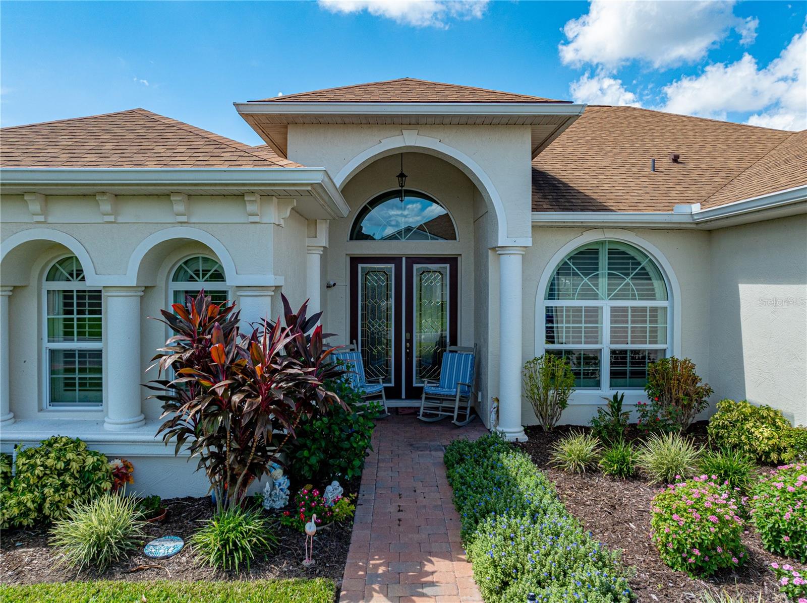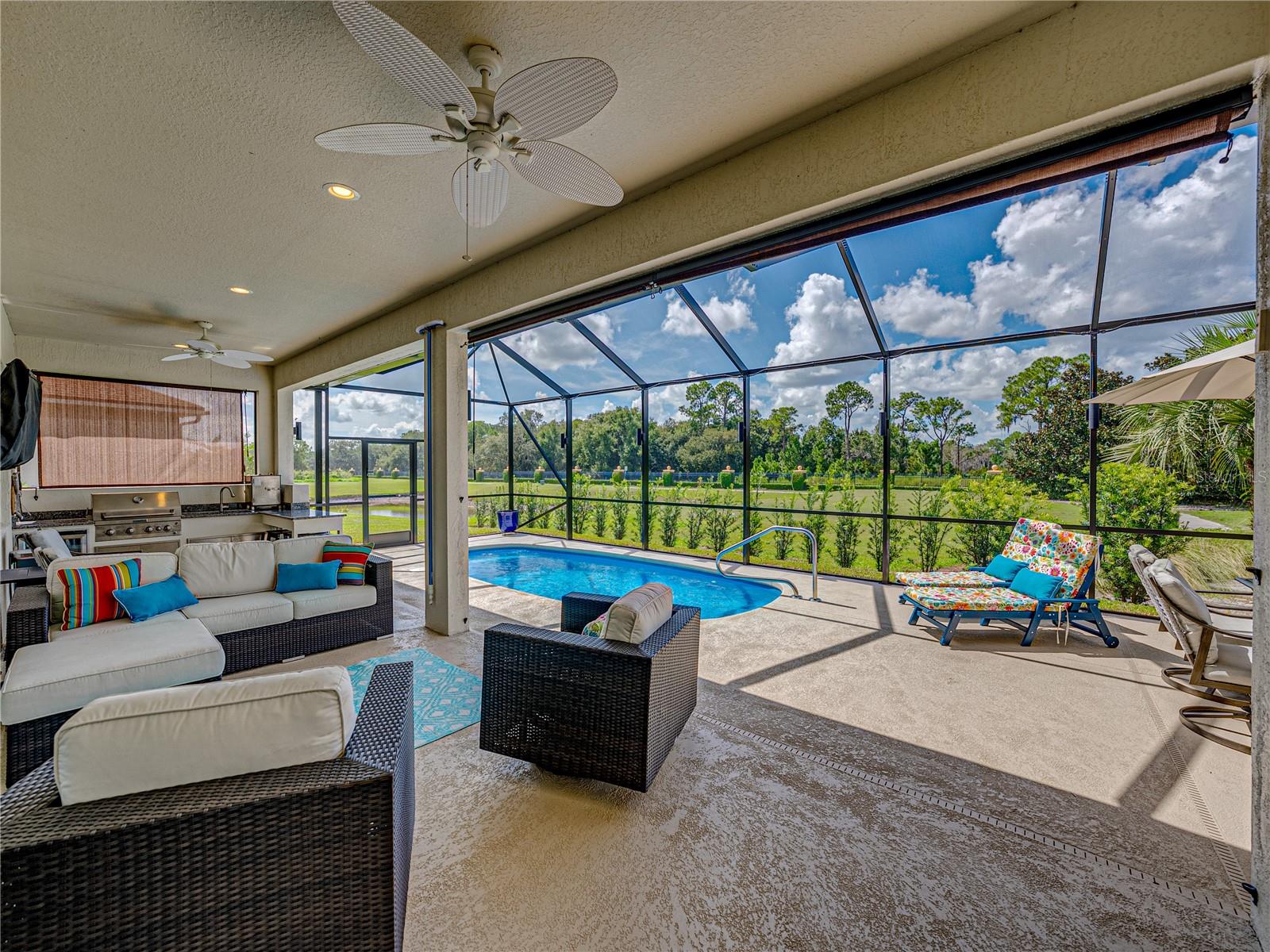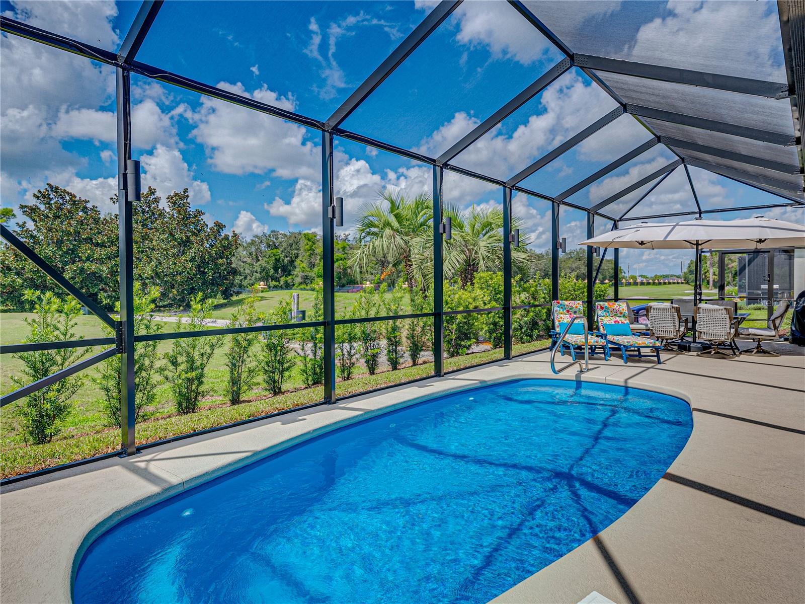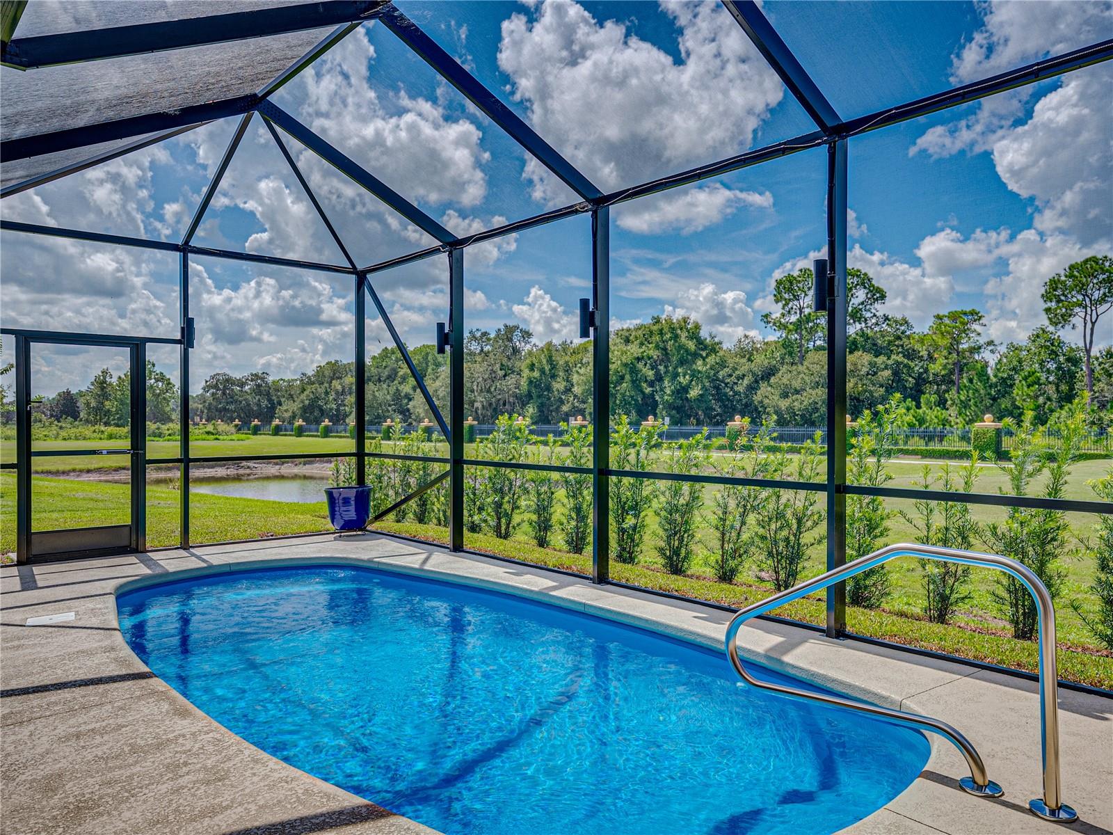 Luxury living at its finest! From the stunning, meticulously maintained landscaping to the oversized screened enclosure, lighted, in-ground pool and well-appointed outdoor kitchen , this delightful Ashton floor plan home (3-bed, 2-bath with den, 2,512 sq. ft.) is exquisite in every detail. It is a certified Green Home by Environments for Living, providing significant energy savings. Among the dramatically beautiful features of the home is the front entry full leaded glass French doors with sidelight. Kitchen cabinets are Seacrest Birch Mirage in white and bath cabinets are Skyler Maple color. The kitchen cabinets feature a bump up and a bump out with refrigerator end cabinet and soft close drawers. Counters are Helix Silestone with ½” bullnose edge. Plantation shutters adorn the windows. Custom window treatments finish the full wall of 8’ glass sliders across the back of the home. The flex room has cabinets for added storage, and a utility sink. The home has a water softener system, and custom hardware, lighting, and fans throughout. The master bath hosts his and her custom closets and a granite-topped makeup table. The oversized, spacious veranda (with custom floor, fans and lighting) will be your favorite spot, as it offers a very well designed, custom outdoor kitchen and an in-ground, heated, salt-water pool that is 21’ 9” long and 10’ 6” wide. The home also features an oversized garage (extended 2’ from standard to accommodate longer vehicles) with custom epoxy flooring, golf cart garage door, Skeeter Beater garage screens on both doors and widened paver driveway. Beautiful inside and out, this 3-year old home is a perfect example of tasteful, comfortable living at its best! Please note the washer and dryer do not convey with purchase. The property is in Lake Ashton, central Florida’s premier 55+ community. With two 18-hole golf courses, a 26,000 sq ft club house and a 26,000+ sq ft Health and Fitness Center, pickle ball and tennis courts, a bowling alley, 2 restaurants and much more. Activities are abundant in this exceptional, active-adult community. Schedule your personal showing today!