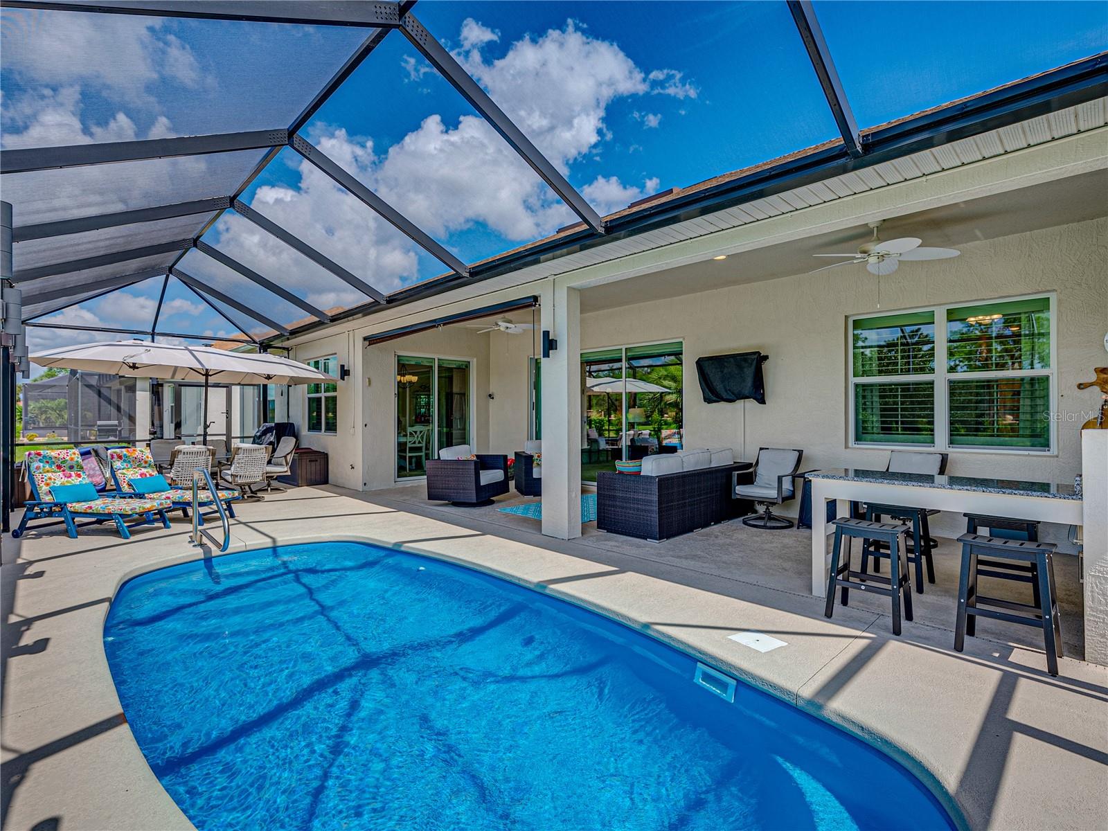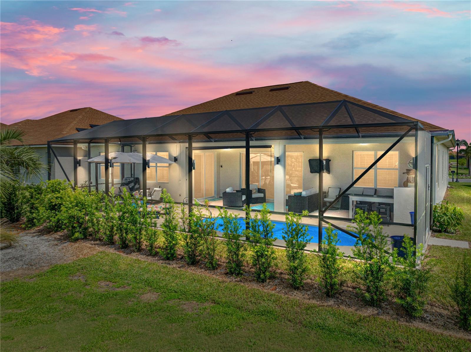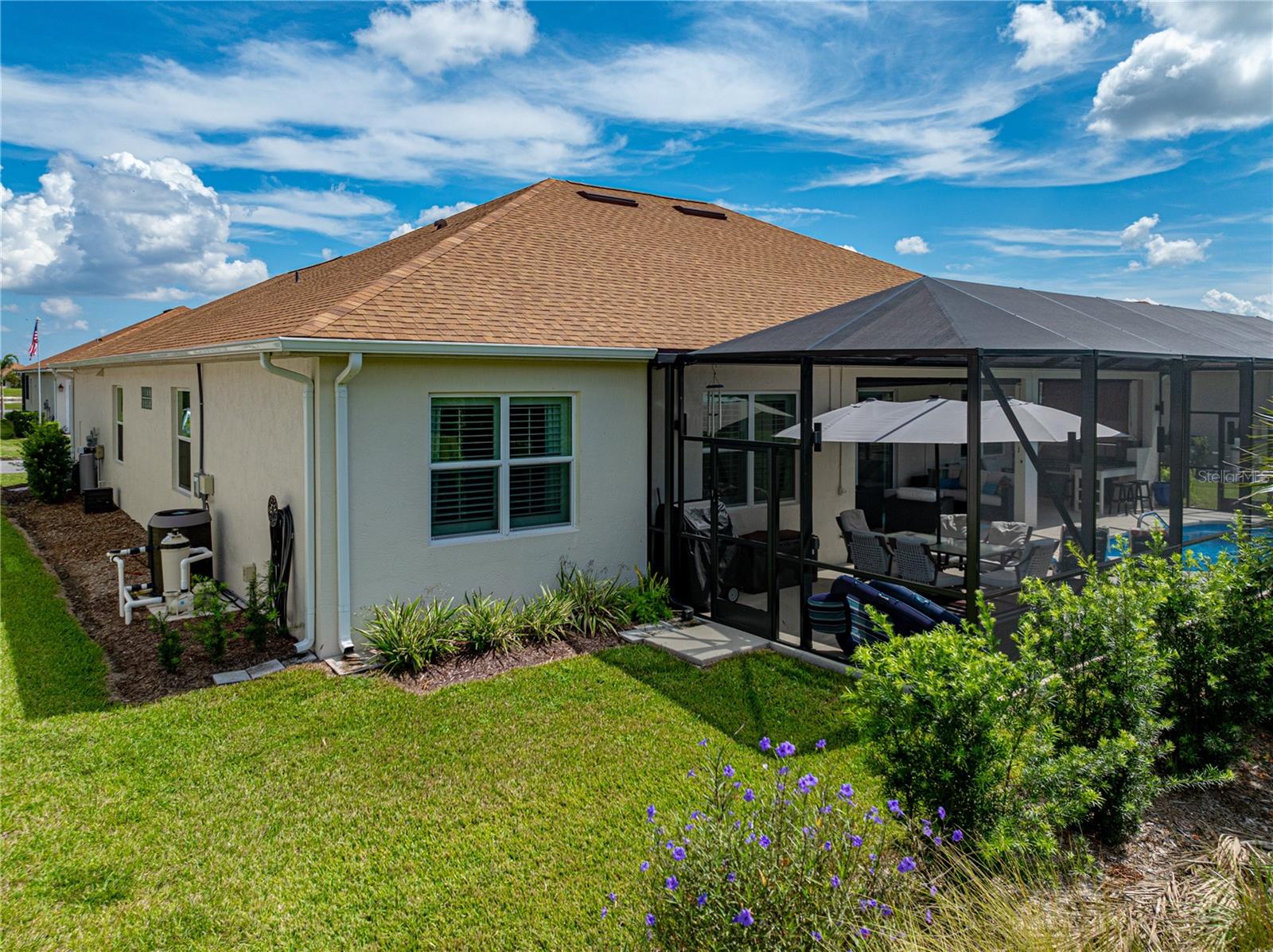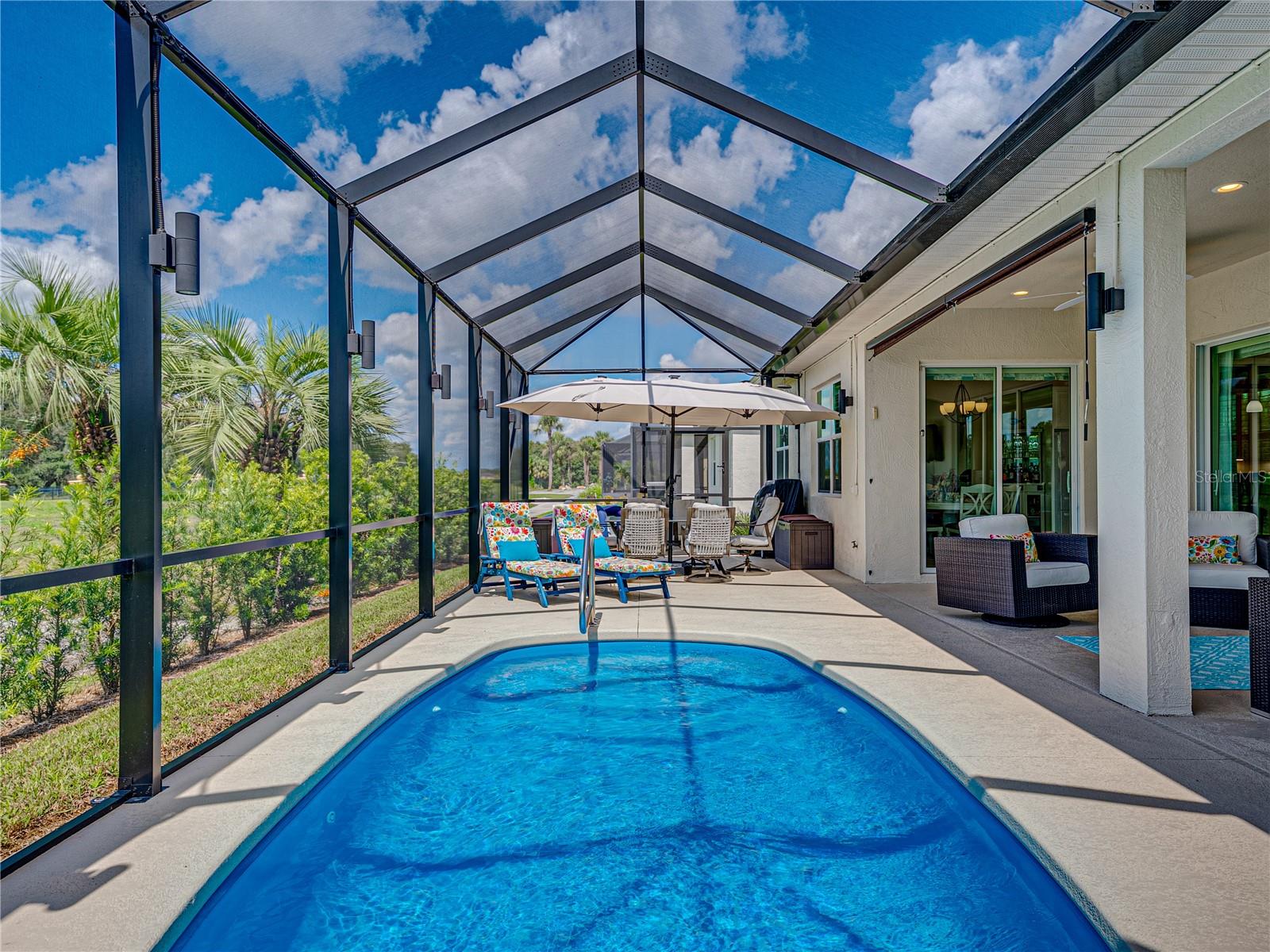 Luxury living at its finest! From the stunning, meticulously maintained landscaping to the oversized screened enclosure, lighted, in-ground pool and well-appointed outdoor kitchen , this delightful Ashton floor plan home (3-bed, 2-bath with den, 2,512 sq. ft.) is exquisite in every detail. It is a certified Green Home by Environments for Living, providing significant energy savings. Among the dramatically beautiful features of the home is the front entry full leaded glass French doors with sidelight. Kitchen cabinets are Seacrest Birch Mirage in white and bath cabinets are Skyler Maple color. The kitchen cabinets feature a bump up and a bump out with refrigerator end cabinet and soft close drawers. Counters are Helix Silestone with ½” bullnose edge. Plantation shutters adorn the windows. Custom window treatments finish the full wall of 8’ glass sliders across the back of the home. The flex room has cabinets for added storage, and a utility sink. The home has a water softener system, and custom hardware, lighting, and fans throughout. The master bath hosts his and her custom closets and a granite-topped makeup table. The oversized, spacious veranda (with custom floor, fans and lighting) will be your favorite spot, as it offers a very well designed, custom outdoor kitchen and an in-ground, heated, salt-water pool that is 21’ 9” long and 10’ 6” wide. The home also features an oversized garage (extended 2’ from standard to accommodate longer vehicles) with custom epoxy flooring, golf cart garage door, Skeeter Beater garage screens on both doors and widened paver driveway. Beautiful inside and out, this 3-year old home is a perfect example of tasteful, comfortable living at its best! Please note the washer and dryer do not convey with purchase. The property is in Lake Ashton, central Florida’s premier 55+ community. With two 18-hole golf courses, a 26,000 sq ft club house and a 26,000+ sq ft Health and Fitness Center, pickle ball and tennis courts, a bowling alley, 2 restaurants and much more. Activities are abundant in this exceptional, active-adult community. Schedule your personal showing today!