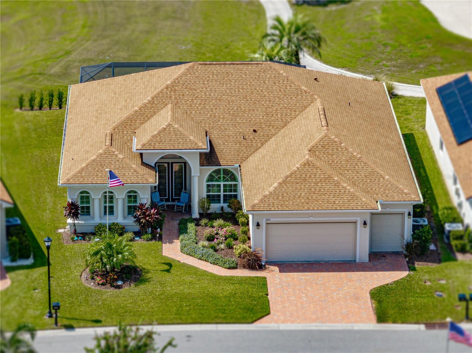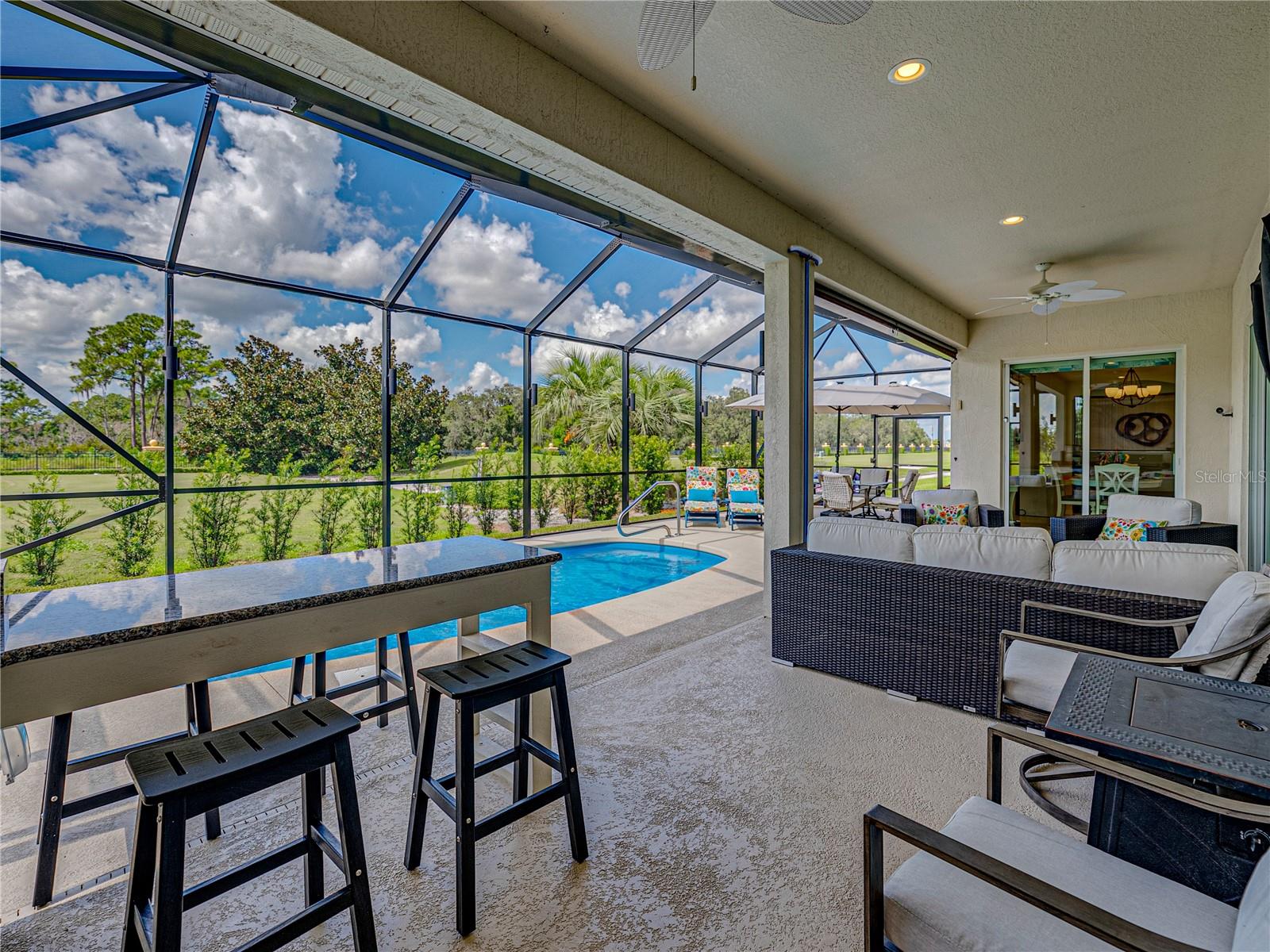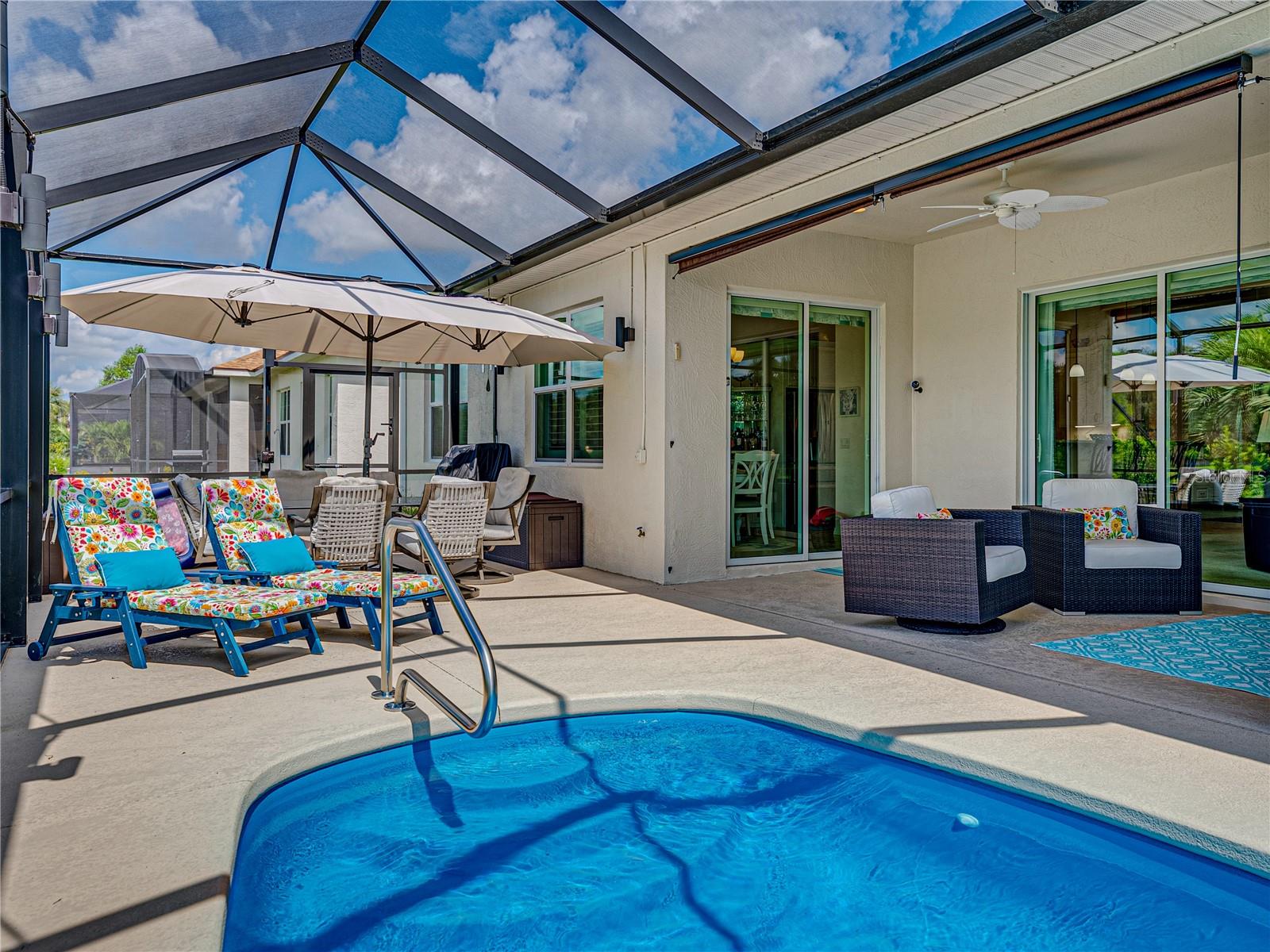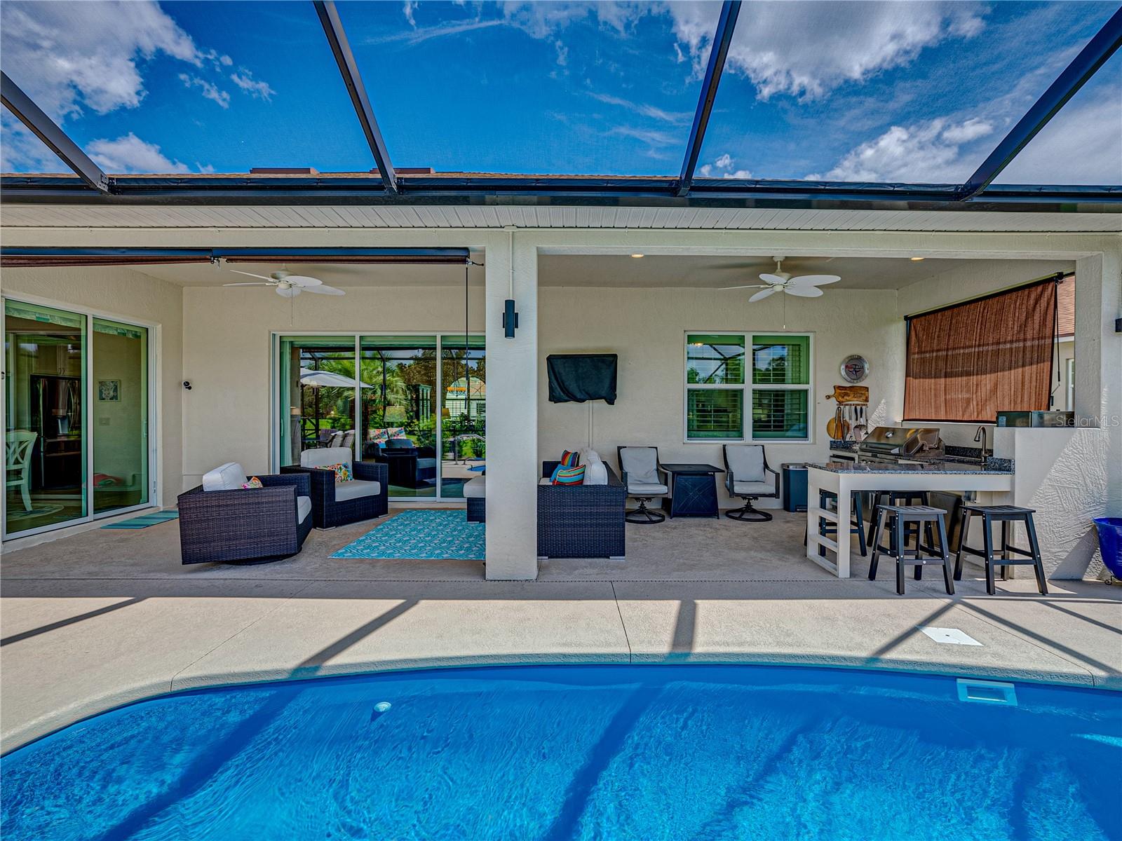 Luxury living at its finest! From the stunning, meticulously maintained landscaping to the oversized screened enclosure, lighted, in-ground pool and well-appointed outdoor kitchen , this delightful Ashton floor plan home (3-bed, 2-bath with den, 2,512 sq. ft.) is exquisite in every detail. It is a certified Green Home by Environments for Living, providing significant energy savings. Among the dramatically beautiful features of the home is the front entry full leaded glass French doors with sidelight. Kitchen cabinets are Seacrest Birch Mirage in white and bath cabinets are Skyler Maple color. The kitchen cabinets feature a bump up and a bump out with refrigerator end cabinet and soft close drawers. Counters are Helix Silestone with ½” bullnose edge. Plantation shutters adorn the windows. Custom window treatments finish the full wall of 8’ glass sliders across the back of the home. The flex room has cabinets for added storage, and a utility sink. The home has a water softener system, and custom hardware, lighting, and fans throughout. The master bath hosts his and her custom closets and a granite-topped makeup table. The oversized, spacious veranda (with custom floor, fans and lighting) will be your favorite spot, as it offers a very well designed, custom outdoor kitchen and an in-ground, heated, salt-water pool that is 21’ 9” long and 10’ 6” wide. The home also features an oversized garage (extended 2’ from standard to accommodate longer vehicles) with custom epoxy flooring, golf cart garage door, Skeeter Beater garage screens on both doors and widened paver driveway. Beautiful inside and out, this 3-year old home is a perfect example of tasteful, comfortable living at its best! Please note the washer and dryer do not convey with purchase. The property is in Lake Ashton, central Florida’s premier 55+ community. With two 18-hole golf courses, a 26,000 sq ft club house and a 26,000+ sq ft Health and Fitness Center, pickle ball and tennis courts, a bowling alley, 2 restaurants and much more. Activities are abundant in this exceptional, active-adult community. Schedule your personal showing today!