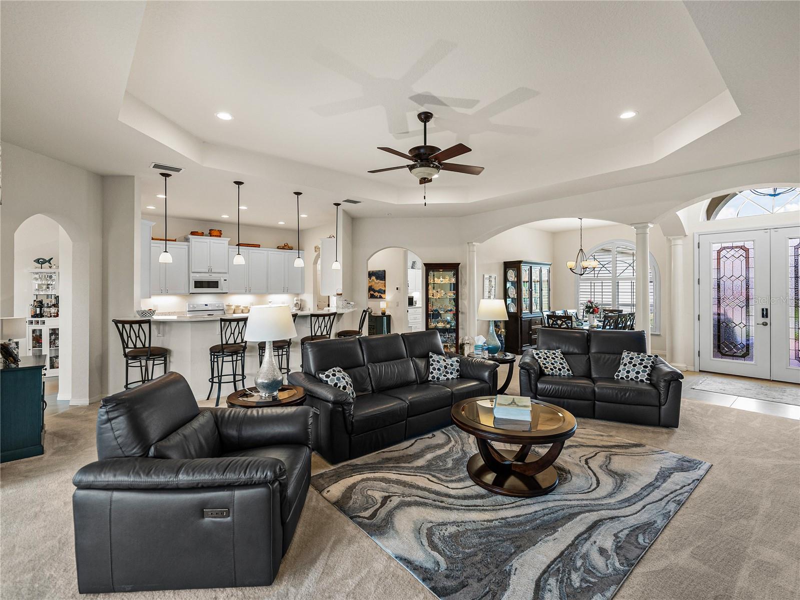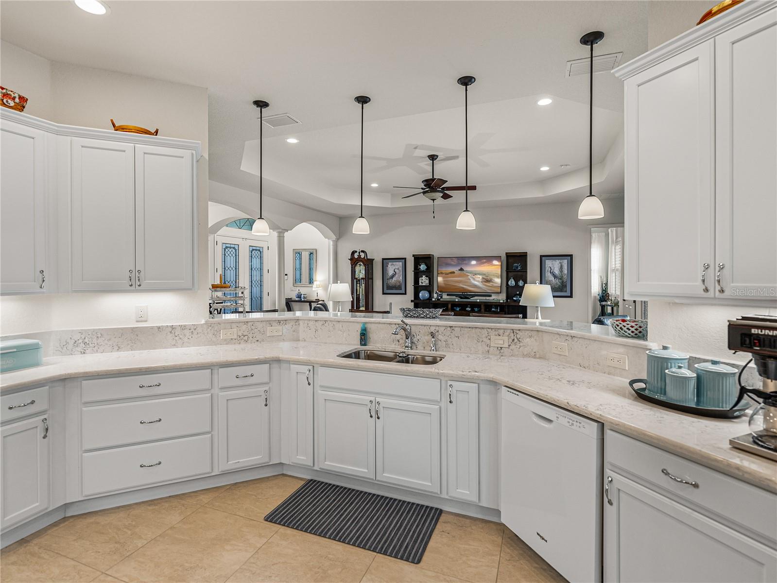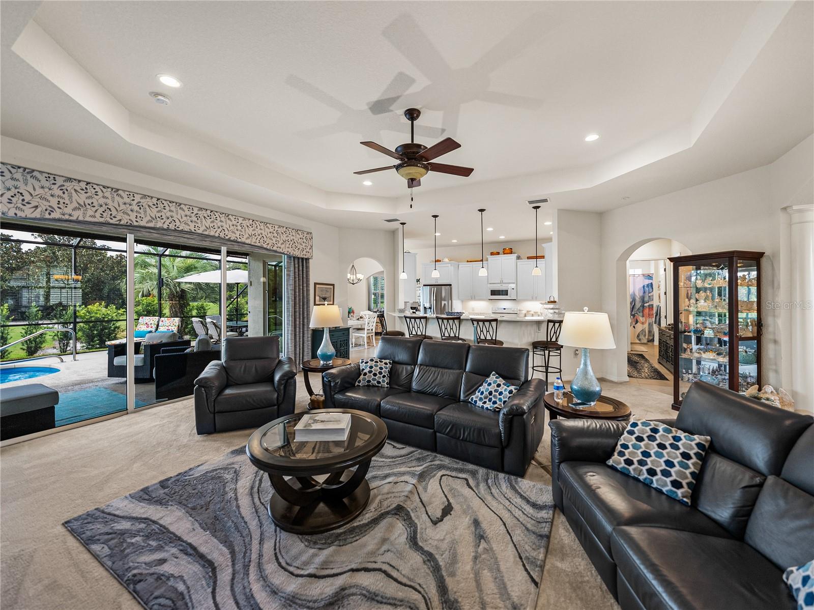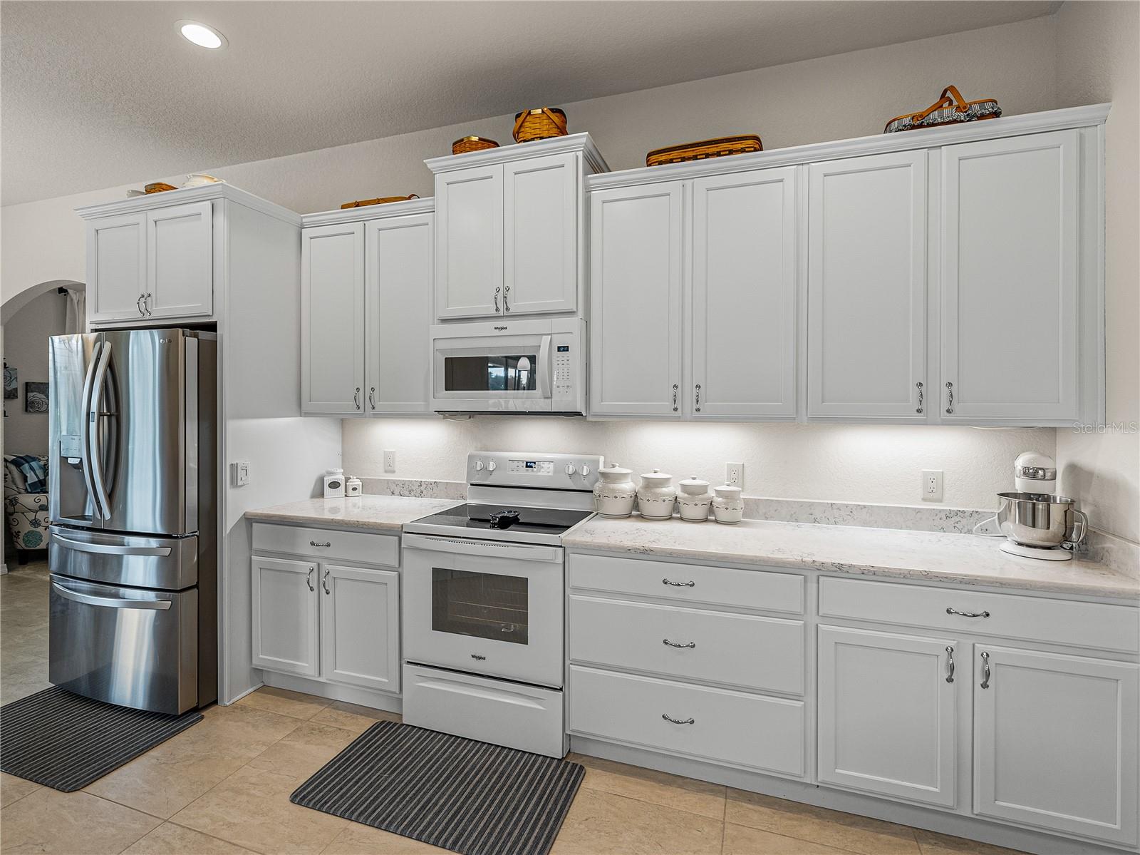 Luxury living at its finest! From the stunning, meticulously maintained landscaping to the oversized screened enclosure, lighted, in-ground pool and well-appointed outdoor kitchen , this delightful Ashton floor plan home (3-bed, 2-bath with den, 2,512 sq. ft.) is exquisite in every detail. It is a certified Green Home by Environments for Living, providing significant energy savings. Among the dramatically beautiful features of the home is the front entry full leaded glass French doors with sidelight. Kitchen cabinets are Seacrest Birch Mirage in white and bath cabinets are Skyler Maple color. The kitchen cabinets feature a bump up and a bump out with refrigerator end cabinet and soft close drawers. Counters are Helix Silestone with ½” bullnose edge. Plantation shutters adorn the windows. Custom window treatments finish the full wall of 8’ glass sliders across the back of the home. The flex room has cabinets for added storage, and a utility sink. The home has a water softener system, and custom hardware, lighting, and fans throughout. The master bath hosts his and her custom closets and a granite-topped makeup table. The oversized, spacious veranda (with custom floor, fans and lighting) will be your favorite spot, as it offers a very well designed, custom outdoor kitchen and an in-ground, heated, salt-water pool that is 21’ 9” long and 10’ 6” wide. The home also features an oversized garage (extended 2’ from standard to accommodate longer vehicles) with custom epoxy flooring, golf cart garage door, Skeeter Beater garage screens on both doors and widened paver driveway. Beautiful inside and out, this 3-year old home is a perfect example of tasteful, comfortable living at its best! Please note the washer and dryer do not convey with purchase. The property is in Lake Ashton, central Florida’s premier 55+ community. With two 18-hole golf courses, a 26,000 sq ft club house and a 26,000+ sq ft Health and Fitness Center, pickle ball and tennis courts, a bowling alley, 2 restaurants and much more. Activities are abundant in this exceptional, active-adult community. Schedule your personal showing today!