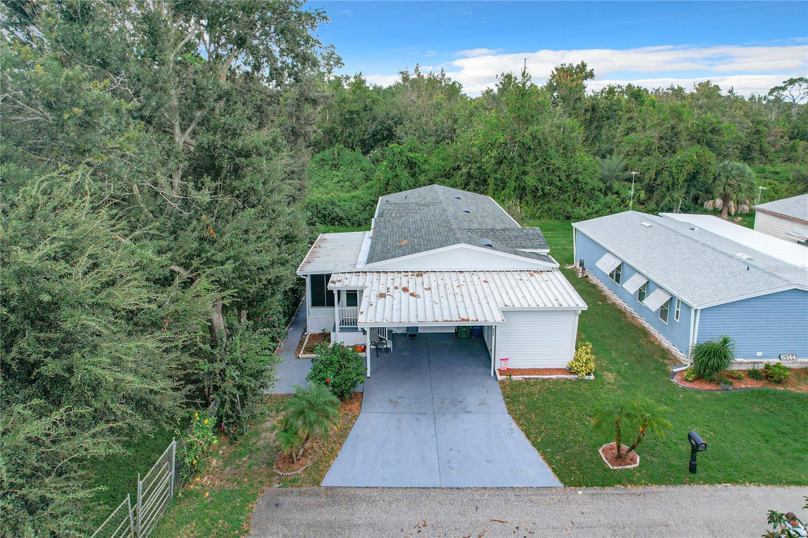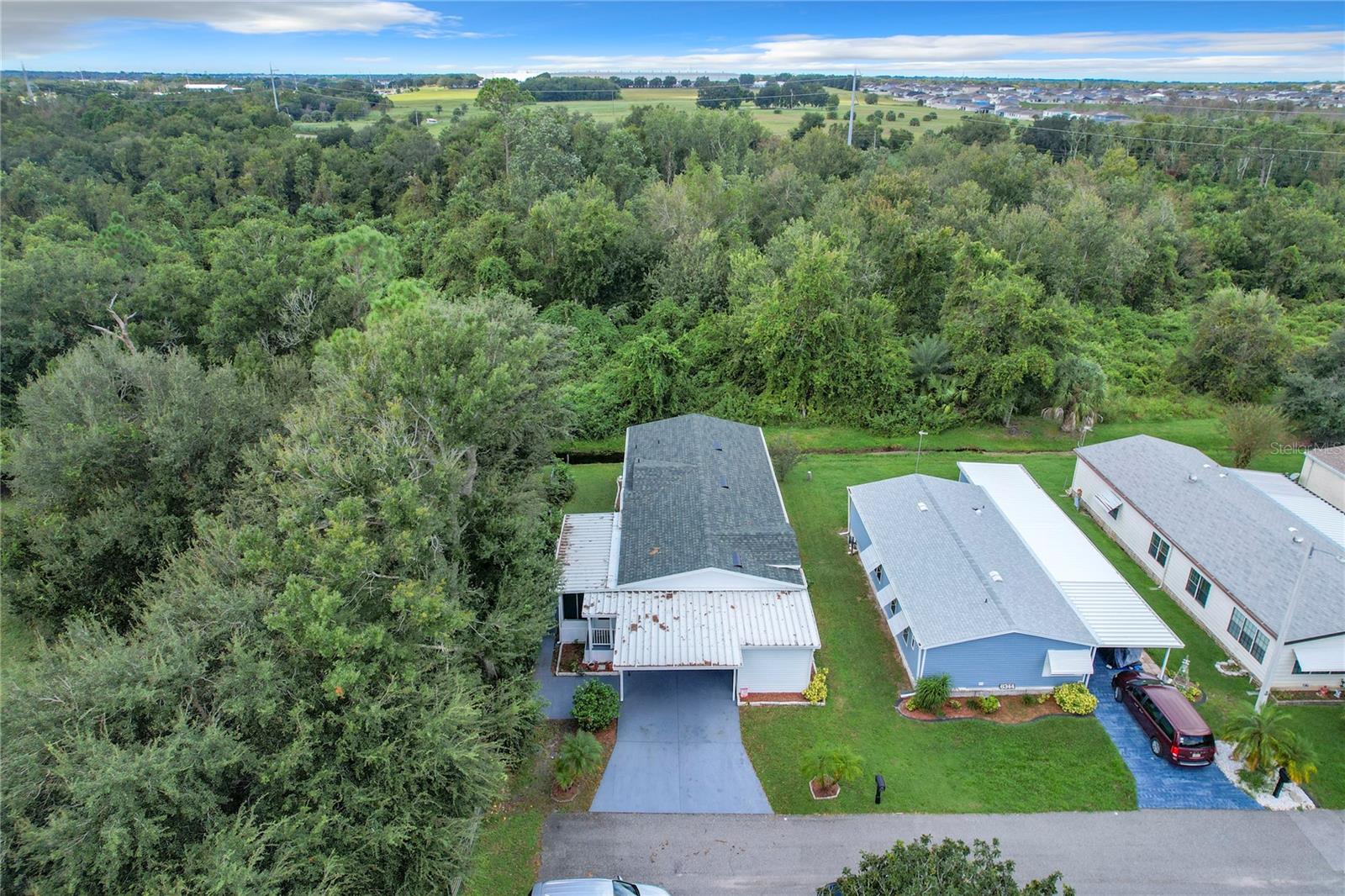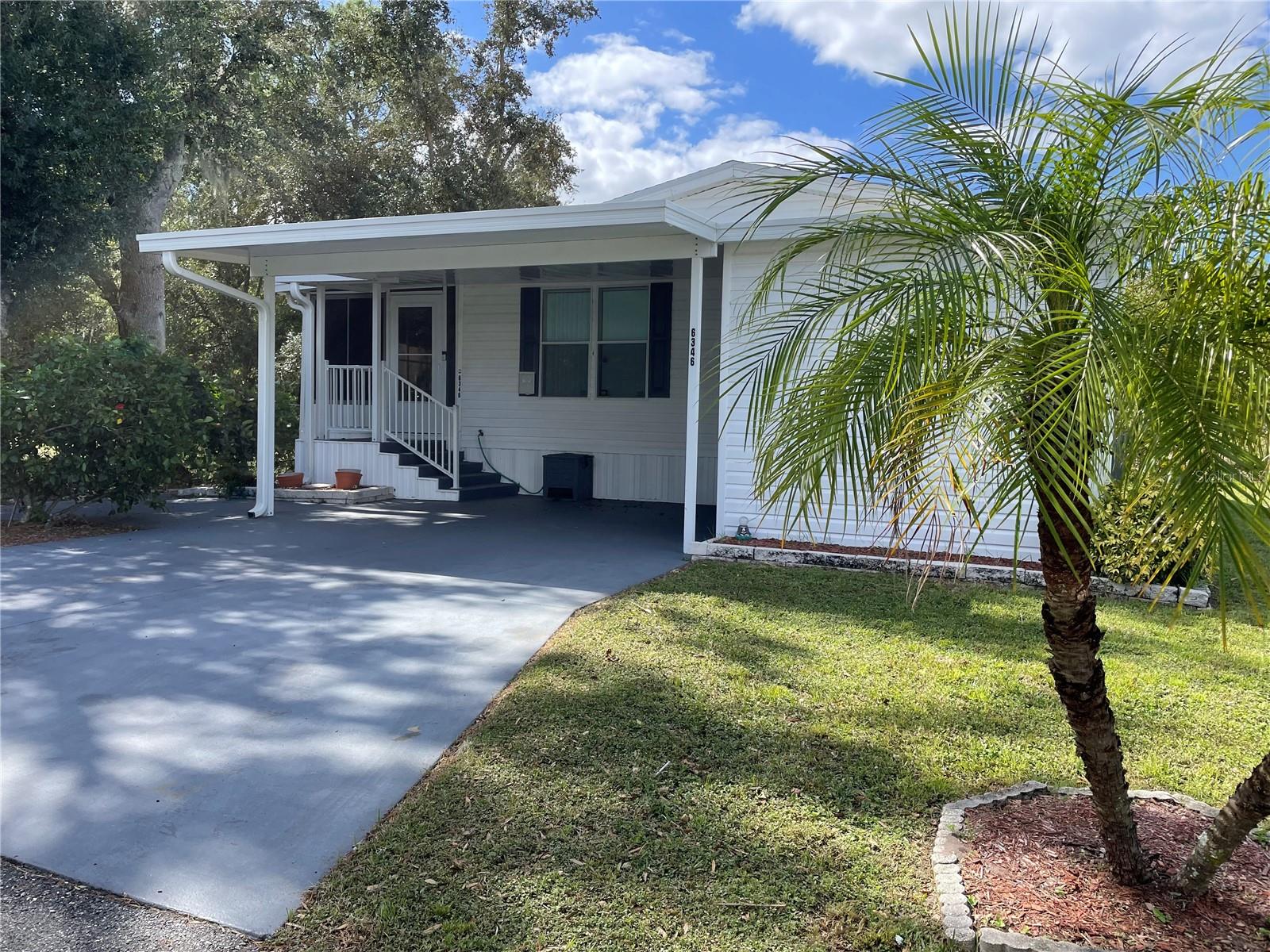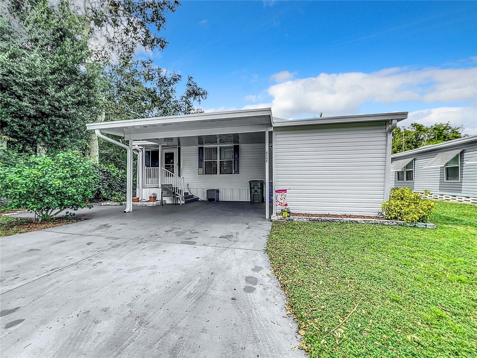 Discover the best of retirement living at Brookhaven, a welcoming 55+ community! This charming 2005 double-wide manufactured "Homes of Merit" home is located on a corner lot with **OWNED LAND**, offering a peaceful retreat on a quiet dead-end street. Fully furnished and well maintained, this home features 1,440 sqft of living space, including a spacious open living area, 2 bedrooms, 2 bathrooms, a versatile bonus room, and an indoor laundry room. Enjoy views from the additional porch, which overlooks a neighboring pasture. Recent upgrades include a new shingle roof and carport (09/2023), updated siding, and reinforced tie downs. The large kitchen boasts a separate island, updated microwave, new refrigerator 03/2024, a new a/c unit 03/2024 and ample counter and cabinet space. The open floor-plan seamlessly connects the living, dining, and kitchen areas, with sliding doors leading to the porch which includes a portable a/c unit for added comfort. Natural light floods the space, and a tray ceiling adds an elegant touch to the living room.The bonus room, with French doors, offers flexibility as a home office, third bedroom, or hobby space. The guest bedroom and bathroom are spacious, while the oversized primary bedroom features an ensuite bath for added privacy. Additional conveniences include an indoor laundry room (washer/dryer included) and a spacious workshop for extra storage.Surrounded by mature landscaping, this home offers tranquility and charm. Brookhaven’s 55+ community amenities include a pool, clubhouse, and shuffleboard. With a low HOA fee of just $34 monthly, the community is ideally located near HWY 27, shopping, medical facilities, and restaurants. Plus, you’re just an hour from Disney parks and 1.5 to 2 hours from both the East and West coasts.Don’t miss your chance to make 6346 Bayberry Blvd your new home. Schedule your appointment today to experience this unique property firsthand!