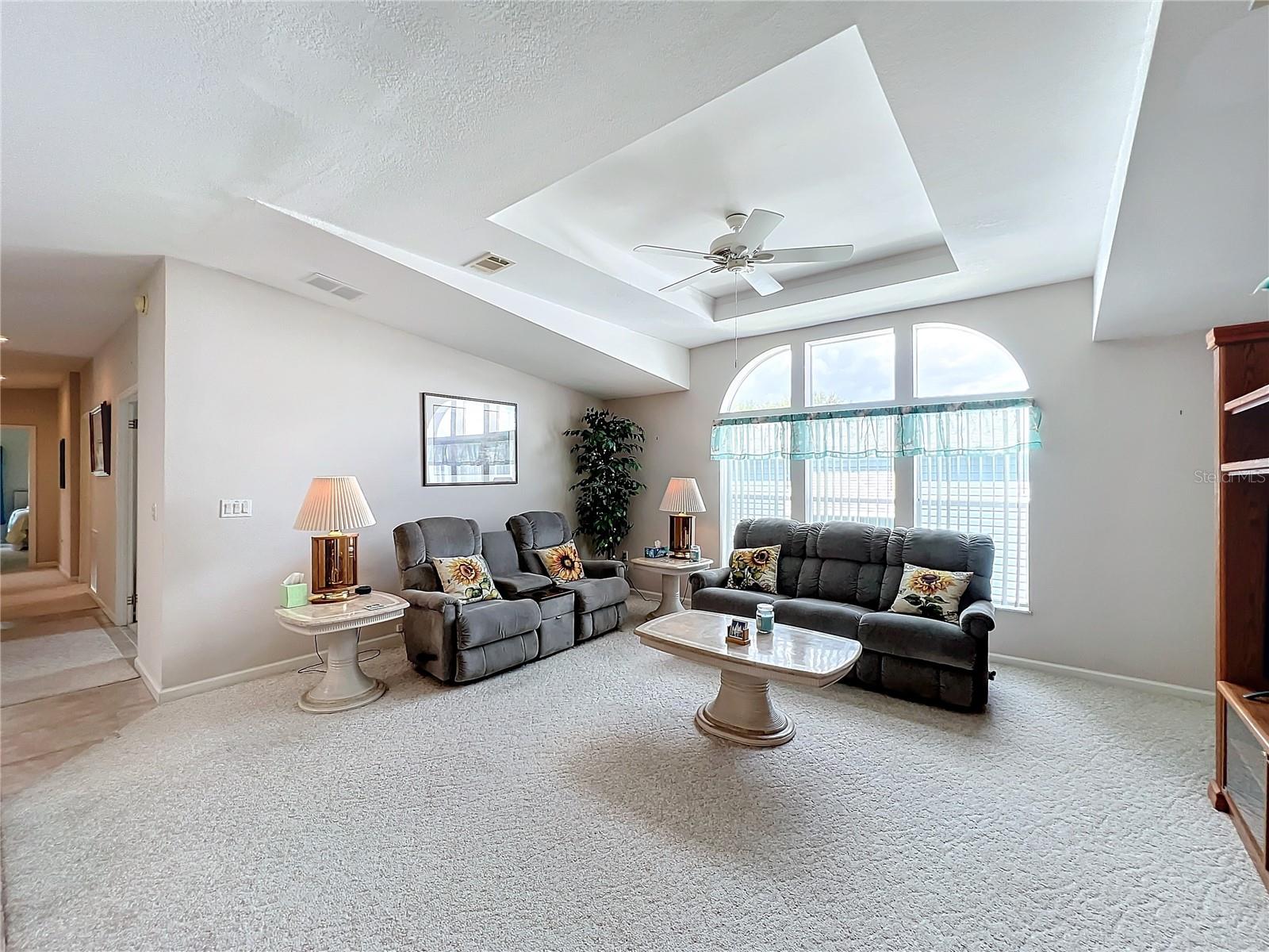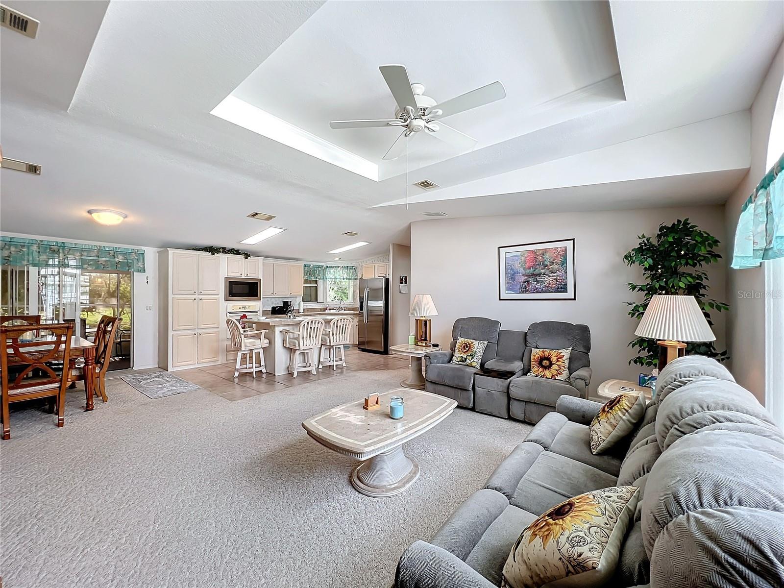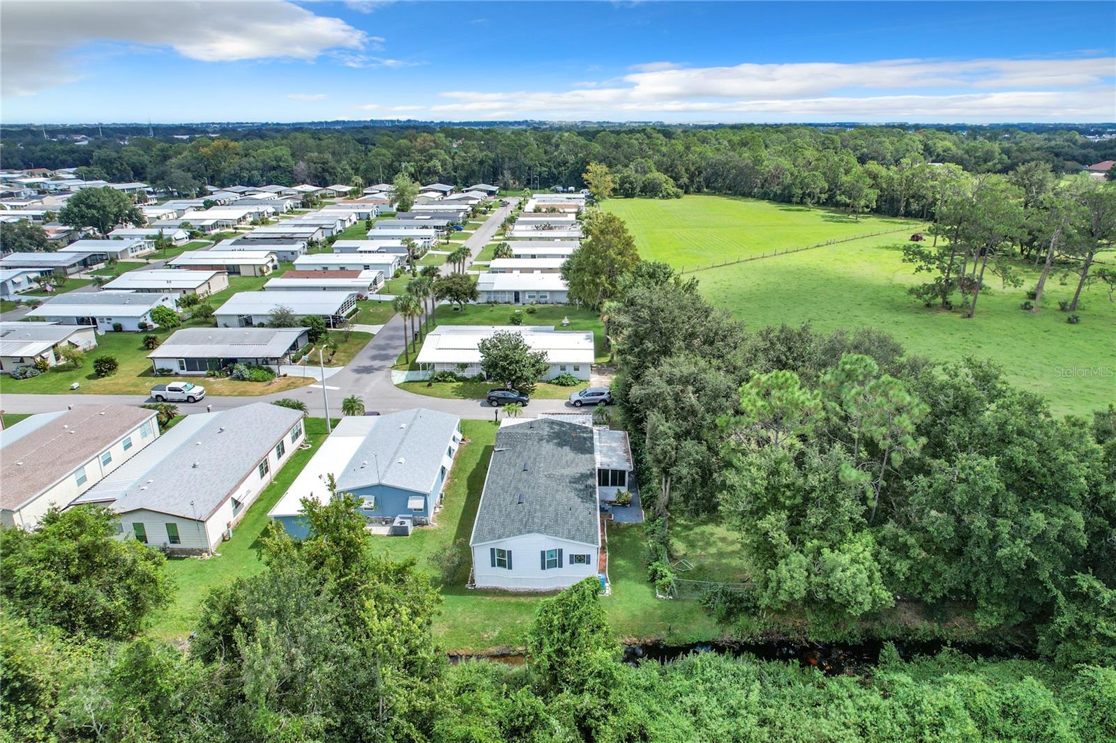 Discover the best of retirement living at Brookhaven, a welcoming 55+ community! This charming 2005 double-wide manufactured "Homes of Merit" home is located on a corner lot with **OWNED LAND**, offering a peaceful retreat on a quiet dead-end street. Fully furnished and well maintained, this home features 1,440 sqft of living space, including a spacious open living area, 2 bedrooms, 2 bathrooms, a versatile bonus room, and an indoor laundry room. Enjoy views from the additional porch, which overlooks a neighboring pasture. Recent upgrades include a new shingle roof and carport (09/2023), updated siding, and reinforced tie downs. The large kitchen boasts a separate island, updated microwave, new refrigerator 03/2024, a new a/c unit 03/2024 and ample counter and cabinet space. The open floor-plan seamlessly connects the living, dining, and kitchen areas, with sliding doors leading to the porch which includes a portable a/c unit for added comfort. Natural light floods the space, and a tray ceiling adds an elegant touch to the living room.The bonus room, with French doors, offers flexibility as a home office, third bedroom, or hobby space. The guest bedroom and bathroom are spacious, while the oversized primary bedroom features an ensuite bath for added privacy. Additional conveniences include an indoor laundry room (washer/dryer included) and a spacious workshop for extra storage.Surrounded by mature landscaping, this home offers tranquility and charm. Brookhaven’s 55+ community amenities include a pool, clubhouse, and shuffleboard. With a low HOA fee of just $34 monthly, the community is ideally located near HWY 27, shopping, medical facilities, and restaurants. Plus, you’re just an hour from Disney parks and 1.5 to 2 hours from both the East and West coasts.Don’t miss your chance to make 6346 Bayberry Blvd your new home. Schedule your appointment today to experience this unique property firsthand!