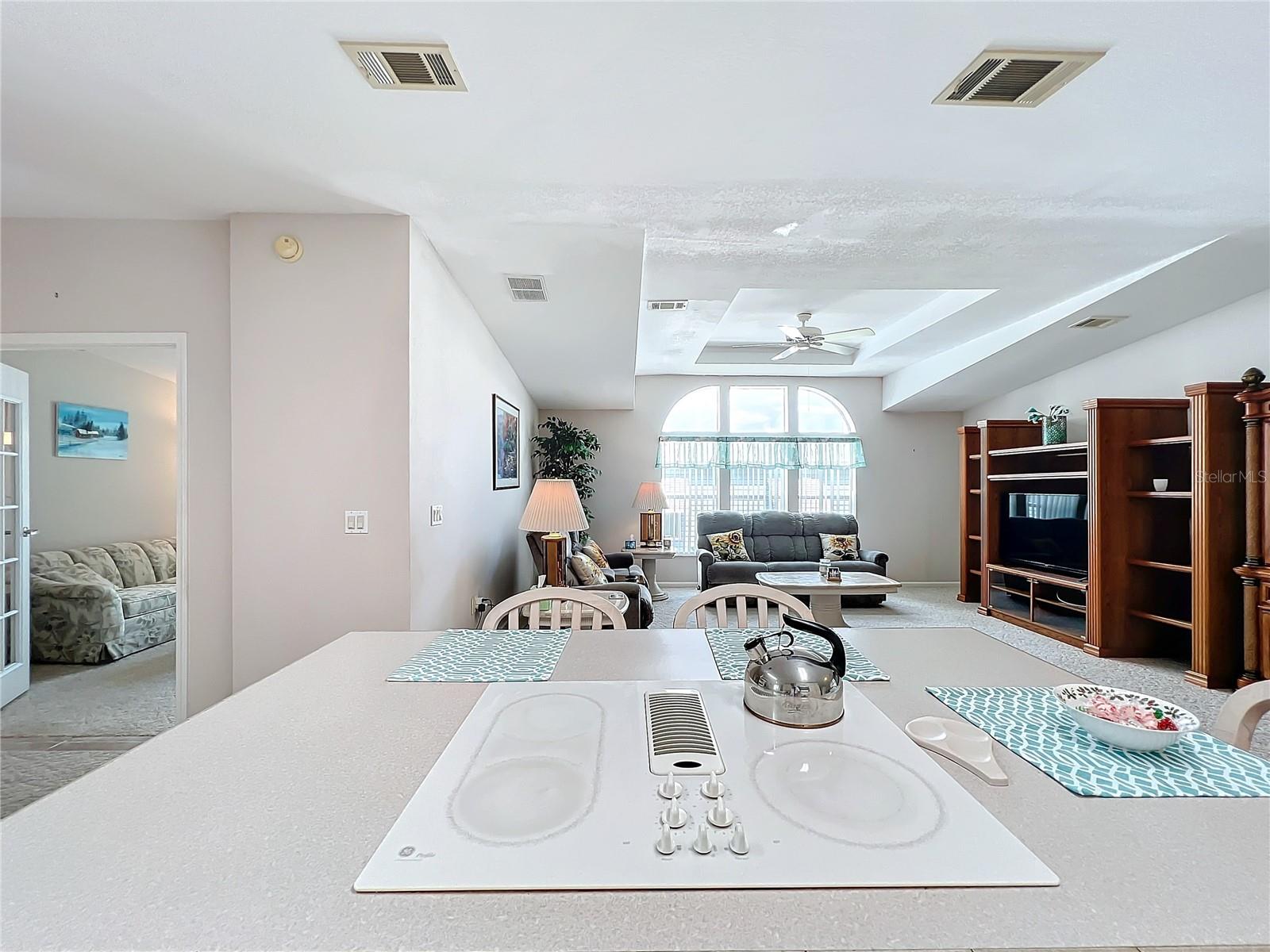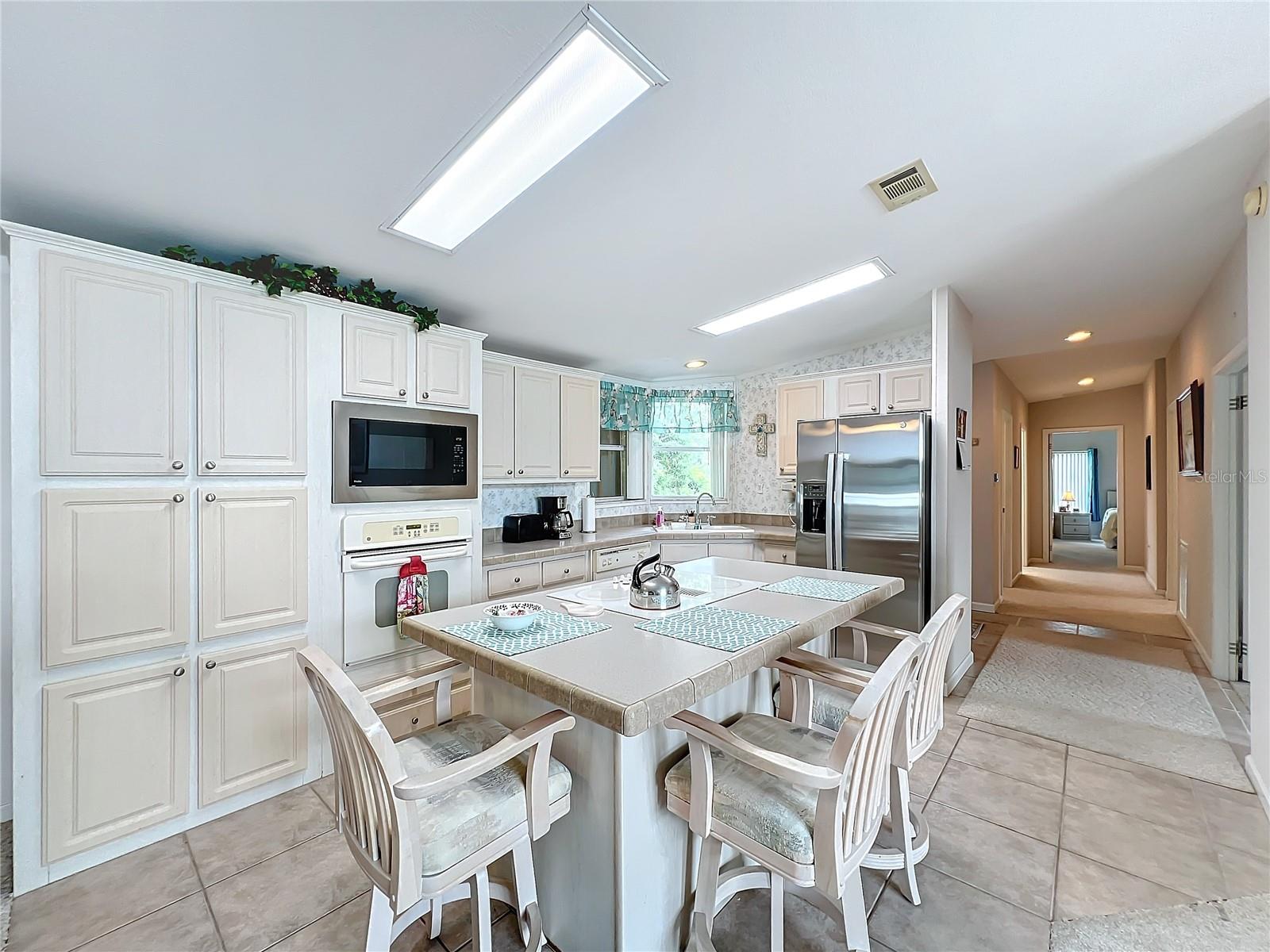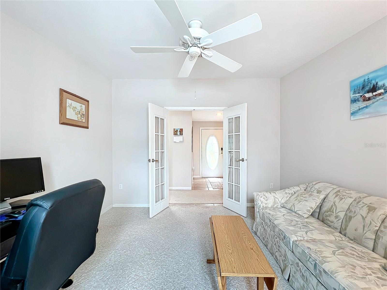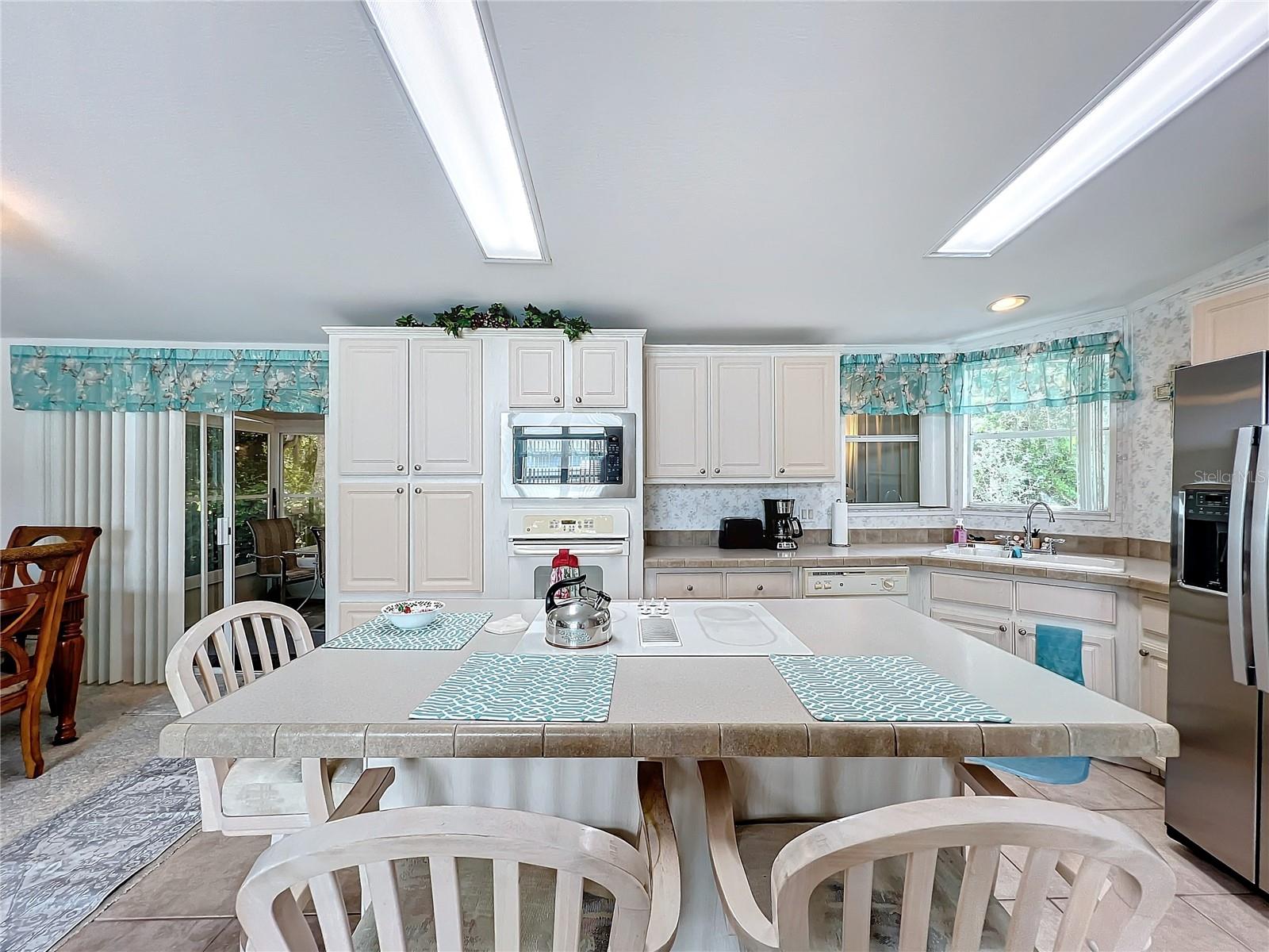 Discover the best of retirement living at Brookhaven, a welcoming 55+ community! This charming 2005 double-wide manufactured "Homes of Merit" home is located on a corner lot with **OWNED LAND**, offering a peaceful retreat on a quiet dead-end street. Fully furnished and well maintained, this home features 1,440 sqft of living space, including a spacious open living area, 2 bedrooms, 2 bathrooms, a versatile bonus room, and an indoor laundry room. Enjoy views from the additional porch, which overlooks a neighboring pasture. Recent upgrades include a new shingle roof and carport (09/2023), updated siding, and reinforced tie downs. The large kitchen boasts a separate island, updated microwave, new refrigerator 03/2024, a new a/c unit 03/2024 and ample counter and cabinet space. The open floor-plan seamlessly connects the living, dining, and kitchen areas, with sliding doors leading to the porch which includes a portable a/c unit for added comfort. Natural light floods the space, and a tray ceiling adds an elegant touch to the living room.The bonus room, with French doors, offers flexibility as a home office, third bedroom, or hobby space. The guest bedroom and bathroom are spacious, while the oversized primary bedroom features an ensuite bath for added privacy. Additional conveniences include an indoor laundry room (washer/dryer included) and a spacious workshop for extra storage.Surrounded by mature landscaping, this home offers tranquility and charm. Brookhaven’s 55+ community amenities include a pool, clubhouse, and shuffleboard. With a low HOA fee of just $34 monthly, the community is ideally located near HWY 27, shopping, medical facilities, and restaurants. Plus, you’re just an hour from Disney parks and 1.5 to 2 hours from both the East and West coasts.Don’t miss your chance to make 6346 Bayberry Blvd your new home. Schedule your appointment today to experience this unique property firsthand!
