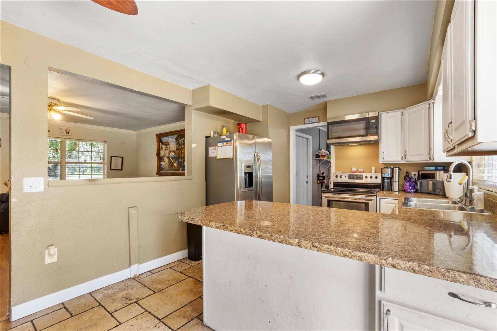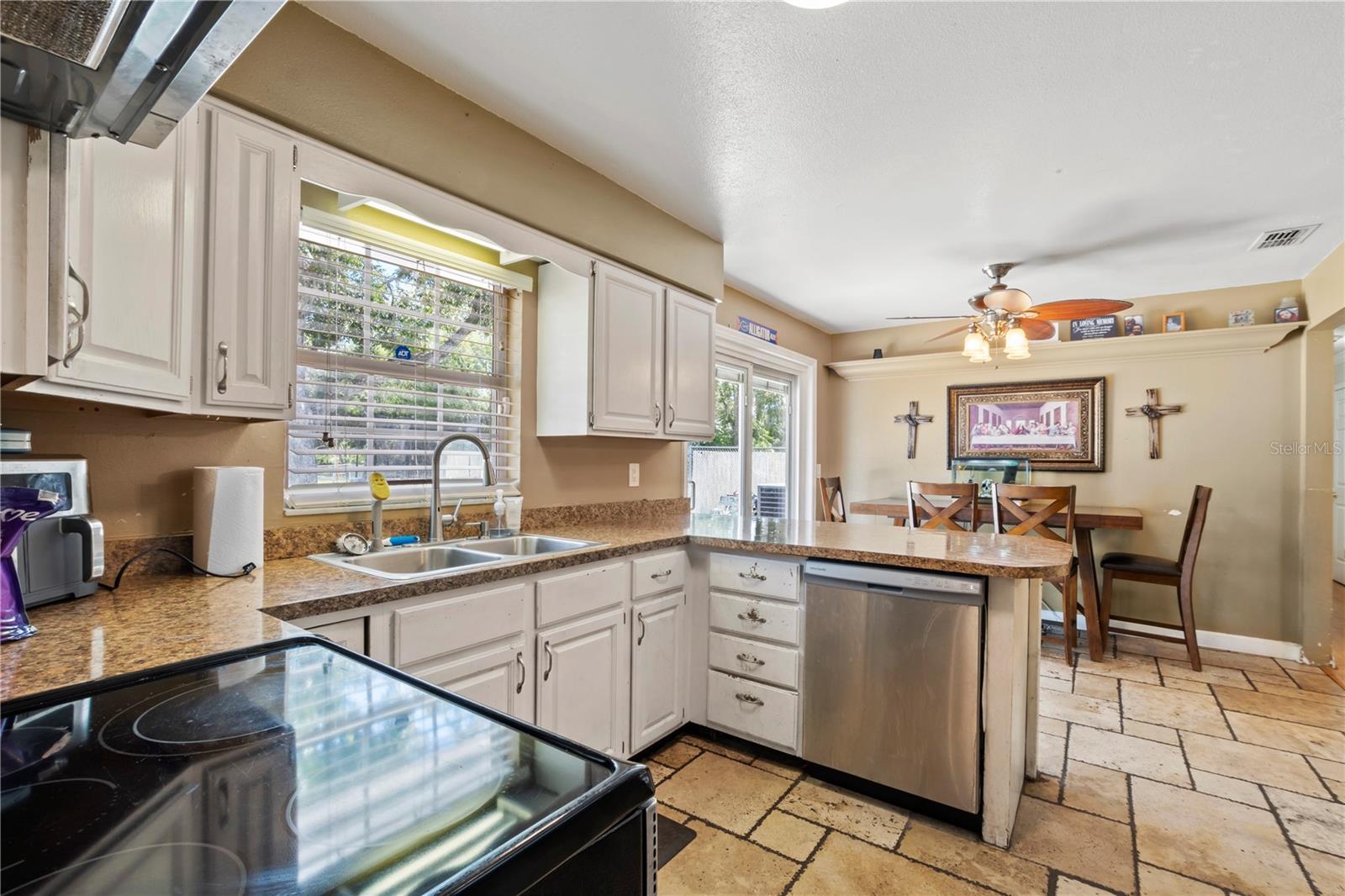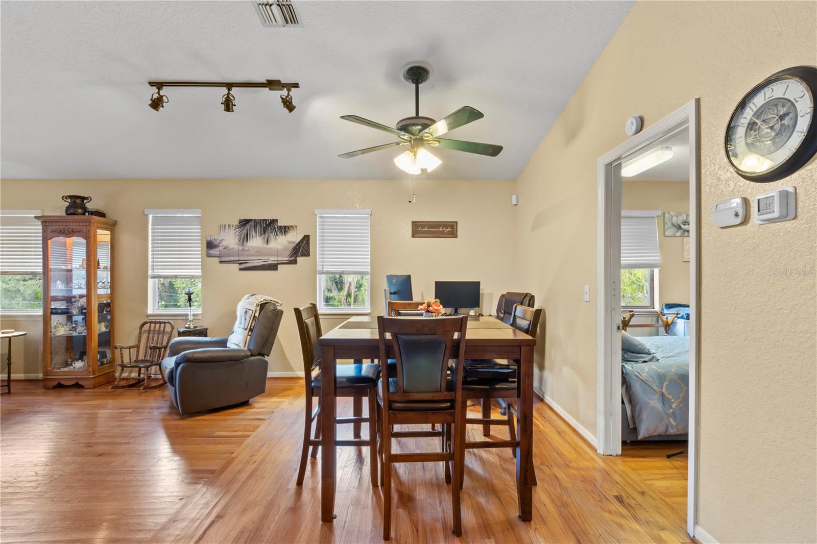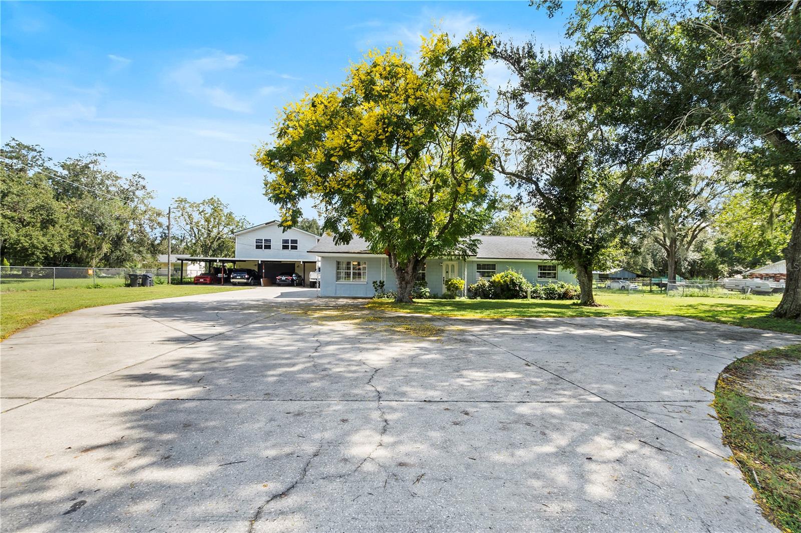 Discover the charm of this expansive property set on 2.22 acres, featuring a generous 5-bedroom, 3-bathroom layout with 2,412 sq. ft. of versatile living space. Built in 1972, this home combines classic appeal with modern convenience. The well-equipped kitchen is perfect for culinary enthusiasts, while the fantastic in-law suite—complete with its own kitchen—makes it an ideal setting for multigenerational living. The main home boasts 3 bedrooms and 2 bathrooms, while the in-law suite offers an additional 2 bedrooms and 1 bathroom, providing ample space for family or guests. With a harmonious blend of tile and wood flooring throughout, the interior exudes warmth and inviting charm. Outside, enjoy a covered garage that features an integrated workshop, perfect for hobbyists or extra storage. With public water, two septic systems, and no HOA, this private retreat is an ideal haven for families or business owners seeking space and convenience. Don't miss this opportunity to make it your own!