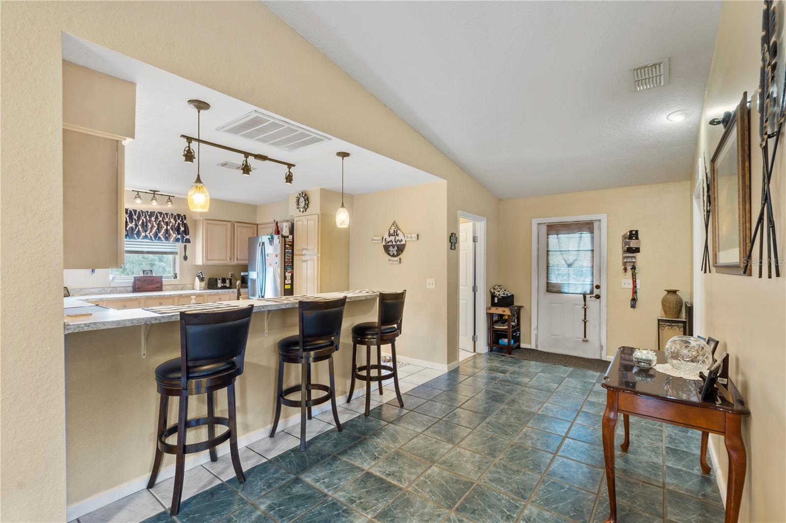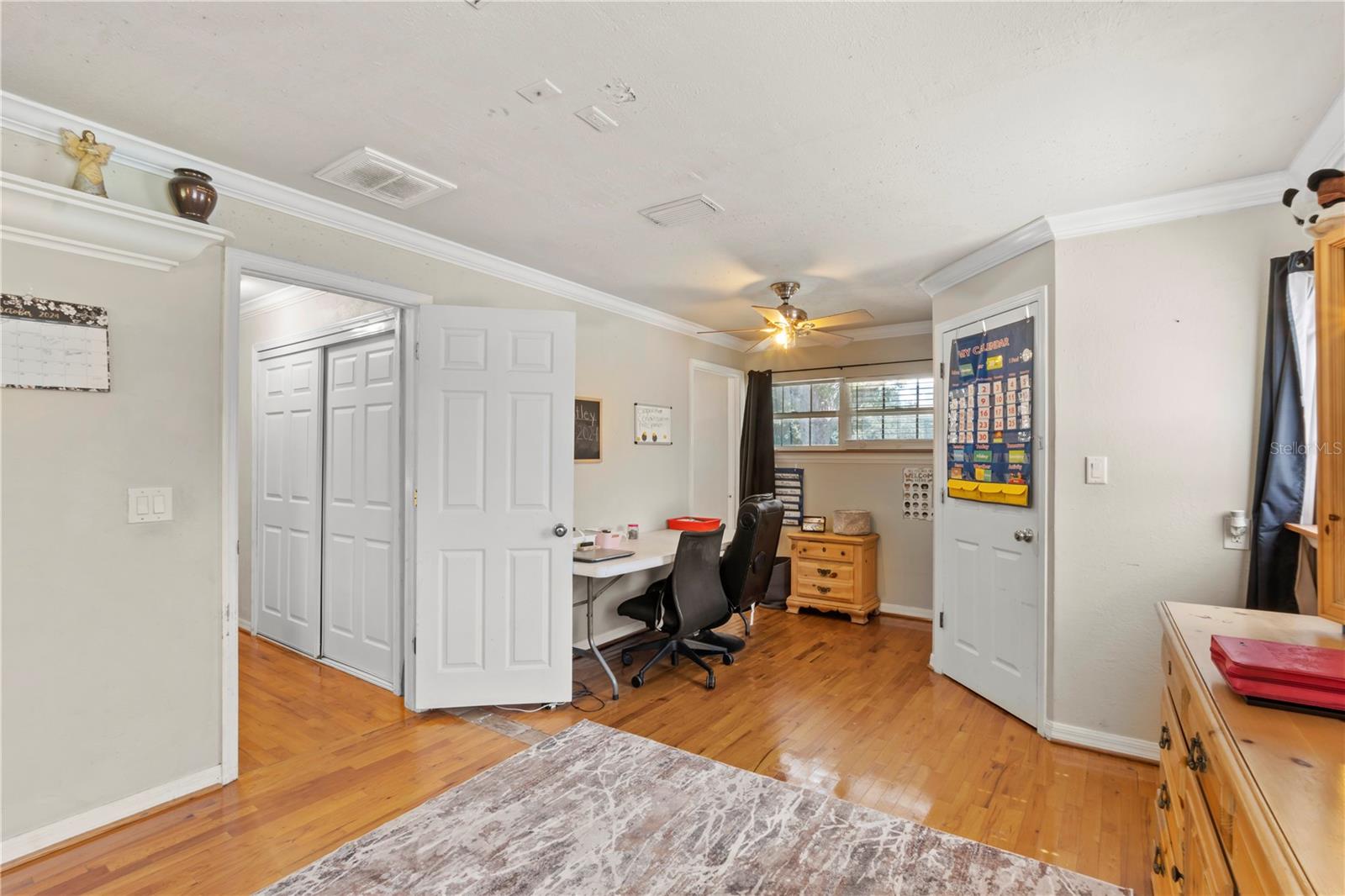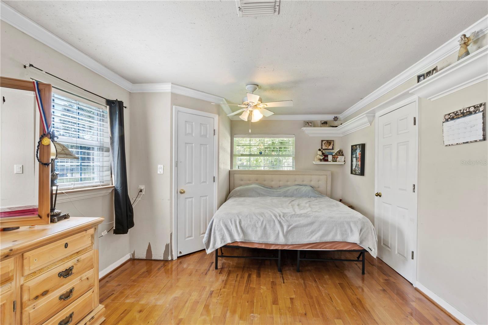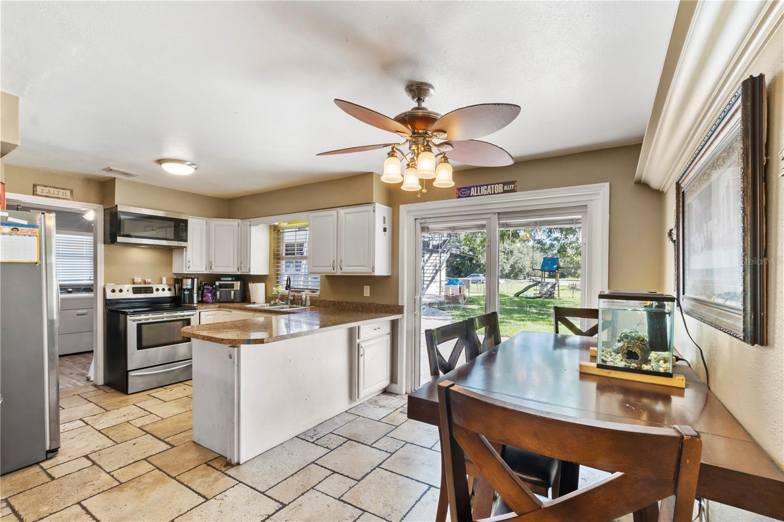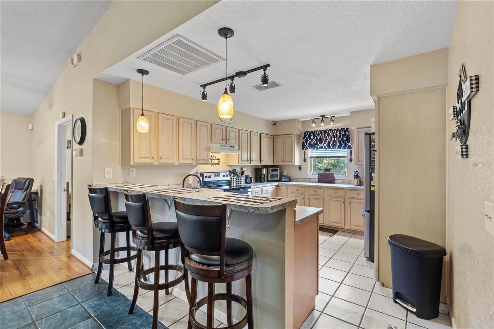 Discover the charm of this expansive property set on 2.22 acres, featuring a generous 5-bedroom, 3-bathroom layout with 2,412 sq. ft. of versatile living space. Built in 1972, this home combines classic appeal with modern convenience. The well-equipped kitchen is perfect for culinary enthusiasts, while the fantastic in-law suite—complete with its own kitchen—makes it an ideal setting for multigenerational living. The main home boasts 3 bedrooms and 2 bathrooms, while the in-law suite offers an additional 2 bedrooms and 1 bathroom, providing ample space for family or guests. With a harmonious blend of tile and wood flooring throughout, the interior exudes warmth and inviting charm. Outside, enjoy a covered garage that features an integrated workshop, perfect for hobbyists or extra storage. With public water, two septic systems, and no HOA, this private retreat is an ideal haven for families or business owners seeking space and convenience. Don't miss this opportunity to make it your own!