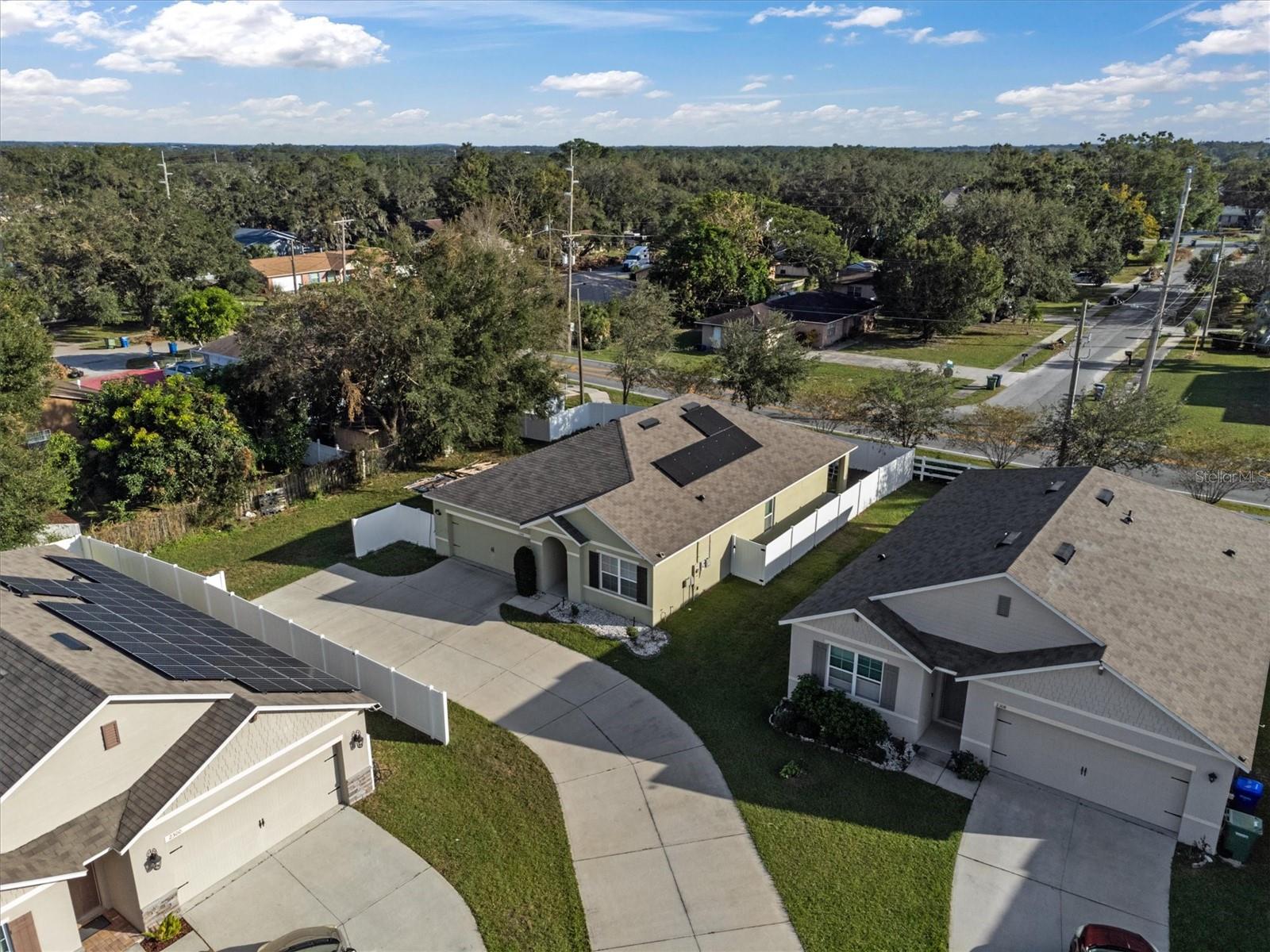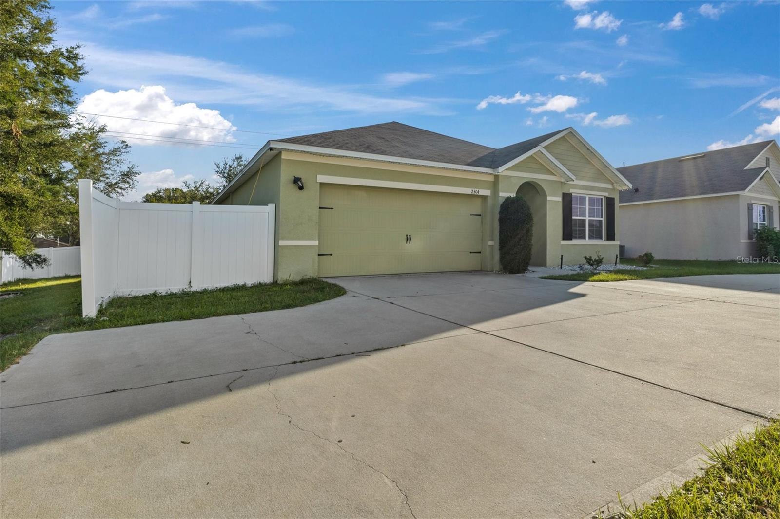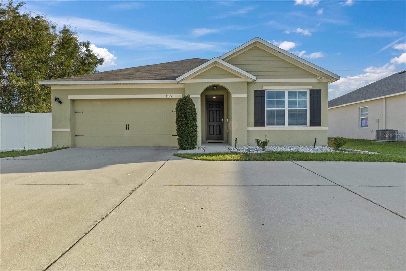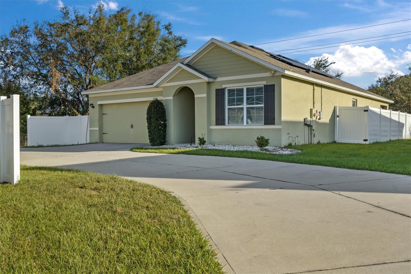 Welcome to 2304 Rose Blvd, Winter Haven, Florida! This charming 3-bedroom, 2-bathroom home, built in 2019, is a wonderful blend of modern design and comfort. Perfectly situated just a few minutes from Polk State College, Winter Haven Hospital, and all the attractions, dining, and shopping Winter Haven has to offer, this home provides the convenience of city living in a peaceful community setting. Sitting on an oversized corner lot, there is plenty of room to spread out and enjoy outdoor activities. The backyard is fully fenced with a durable white vinyl fence, offering not only privacy but also a safe space for pets or children to play. The extra-large concrete driveway provides ample parking for multiple vehicles, making it perfect for families or those who love to host guests. Inside, you’ll find a welcoming open floor plan that combines the kitchen, dining, and family rooms—ideal for entertaining and daily family life. The high ceilings add an airy and spacious feel, while the split floor plan ensures privacy between the main bedroom and secondary bedrooms. The inside laundry room offers added convenience, with easy access to the main living spaces. The spacious kitchen is a chef's delight, featuring a large island, sleek quartz countertops, plentiful cabinet storage, and a roomy pantry to keep everything organized. It’s fully equipped with modern appliances, making it easy to prepare meals while still being part of the conversation in the family room. The two comfortable secondary bedrooms are well-sized, each with built-in closets that offer plenty of storage space. The main bedroom is truly a retreat, offering tranquility and ample space to unwind after a long day. It boasts a large walk-in closet, providing abundant storage space, and an en-suite bathroom featuring a spacious shower (no tub), a private water closet, dual vanity sinks, and elegant tile flooring. Step outside and you’ll find a lovely 6’x10’ covered porch—perfect for sipping your morning coffee or enjoying an evening breeze. The expansive backyard is a blank canvas, ready for a play area, garden, or even a pool if you desire. This community does not have a CDD, which means your property taxes will be more affordable. Additionally, the low-cost HOA is only $300 per year. For added savings, the home comes with an assumable solar panel system, offering substantial reductions on your monthly electricity bill—a great bonus for those looking to live more sustainably. This home offers the perfect combination of space, comfort, and energy efficiency in a fantastic location. Don’t miss your chance to make this wonderful property your own—schedule your showing today before it’s gone!