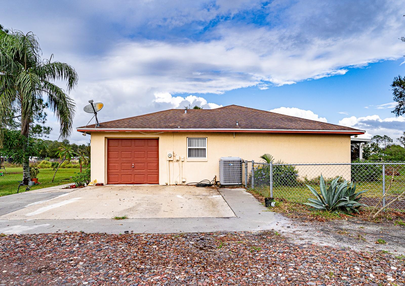 Nestled on more than 1.5 acres of lush land, this beautiful home offers a peaceful retreat with the convenience of being just minutes from downtown Winter Haven. The property is accessed via a picturesque, tree-lined driveway that leads to a spacious three-bedroom, two-bathroom home featuring a thoughtfully designed split floor plan and soaring vaulted ceilings. With an abundance of natural light, the open-concept living area creates a welcoming atmosphere, perfect for both relaxing and entertaining. The large, screened-in back lanai provides an ideal spot to enjoy the serene surroundings, while the fenced-in backyard offers privacy and security for family gatherings or pets. The master suite is a true highlight, featuring a generous walk-in closet and a luxurious attached bathroom with double vanities, a walk-in shower, and a walk-in tub—perfect for relaxing after a long day. The other two bedrooms are spacious and share a well-appointed second bathroom. Additional features include an attached garage, extra storage shed, and the freedom of no homeowners association. Whether you're looking for space to spread out or a home that blends comfort and tranquility, this property is a rare find. Conveniently located near all the amenities of Winter Haven, this home offers the perfect combination of peaceful country living and easy access to city conveniences.