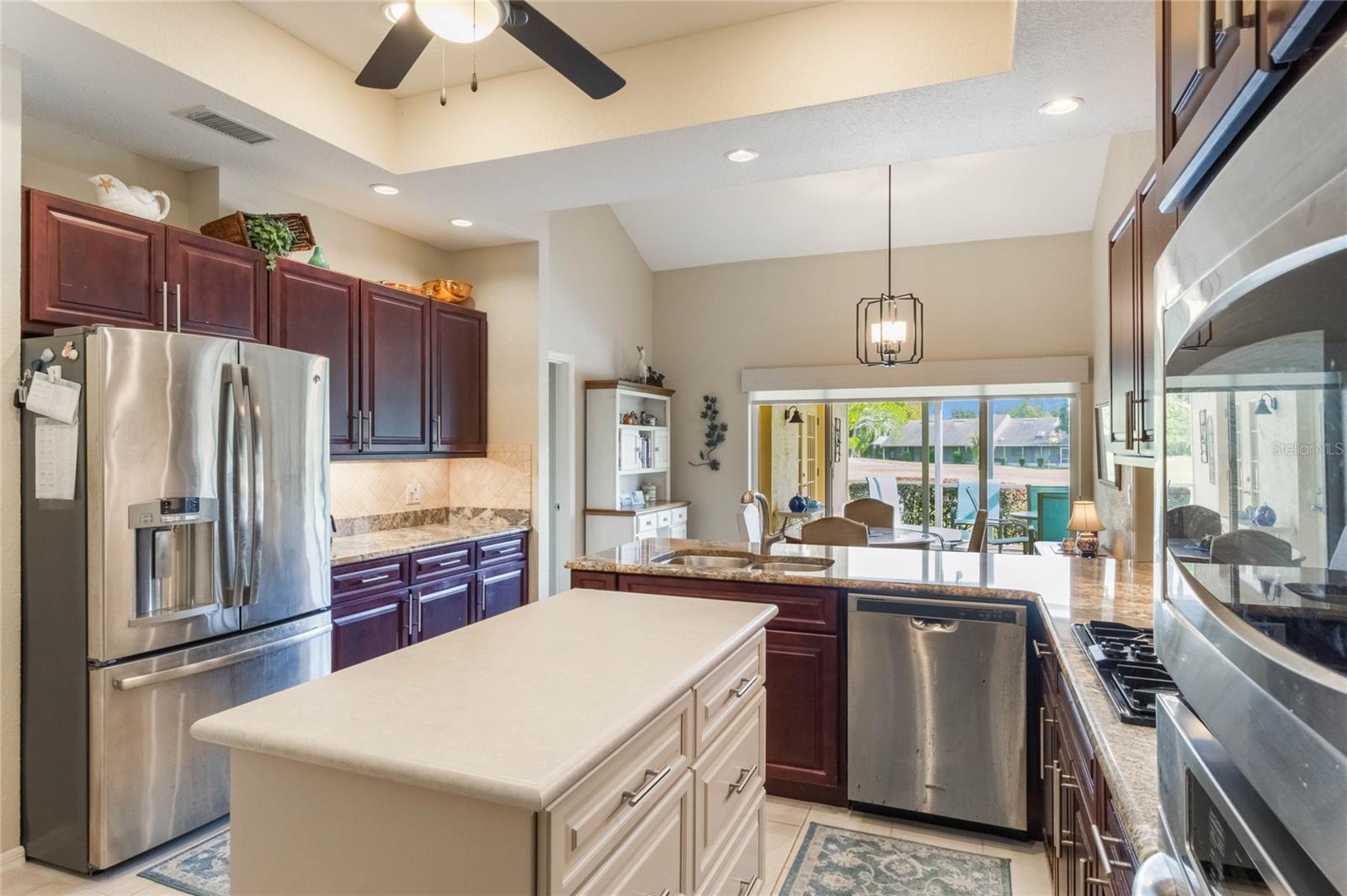 Welcome to this meticulously maintained 4-bedroom, 3-bathroom home that combines modern elegance and functional design. Situated in the sought after Cypresswood Golf and Country Club community with a 24-hour guarded entrance gate, 18-hole championship golf course, Jr. Olympic sized swimming pool, tennis/pickleball, and clubhouse with a proshop and restaurant, this gem is a must-see. This property boasts a spacious open floorplan with split bedrooms, perfect for both privacy and shared living. The great room features soaring cathedral ceilings, built-in shelving, and a cozy natural gas fireplace — creating the ideal space for relaxing or entertaining. Flowing seamlessly into the kitchen, you'll find high-level granite countertops, a convenient breakfast bar, and a charming breakfast nook. The chef's kitchen is equipped with stainless steel appliances, including a natural gas cooktop range, offering the perfect blend of style and practicality with extra storage beneath. The oversized primary suite is a true retreat, with tiered drop ceilings and a spa-like en suite bathroom featuring a large soaking tub, dual vanities, a separate shower, and a private water closet. Three additional bedrooms offer versatile spaces for family, guests, or home offices — with plenty of room to accommodate everyones' needs. Step outside to your fully-screened and extended rear deck, accessible from four rooms throughout the home. This expansive outdoor space is perfect for dining, lounging, and entertaining, with an outdoor cooktop and sink for al fresco meals and gatherings. The Cypresswood community is minutes from Highway 27 and the I-4 corridor, Winter Haven's very own Legoland Florida Resort, the Polk Parkway, and in the center of a thriving community with many convenient grocery, restaurant, shopping, and commuting options for travel in less than an hour from Disney World and other Orlando attractions, the Orlando International Airport, and the gulf-side beaches of Tampa/St. Pete! With its thoughtful design, high-end finishes, and ample outdoor living space, this home is truly a must-see. Schedule your private tour today and imagine yourself living in this exceptional home!