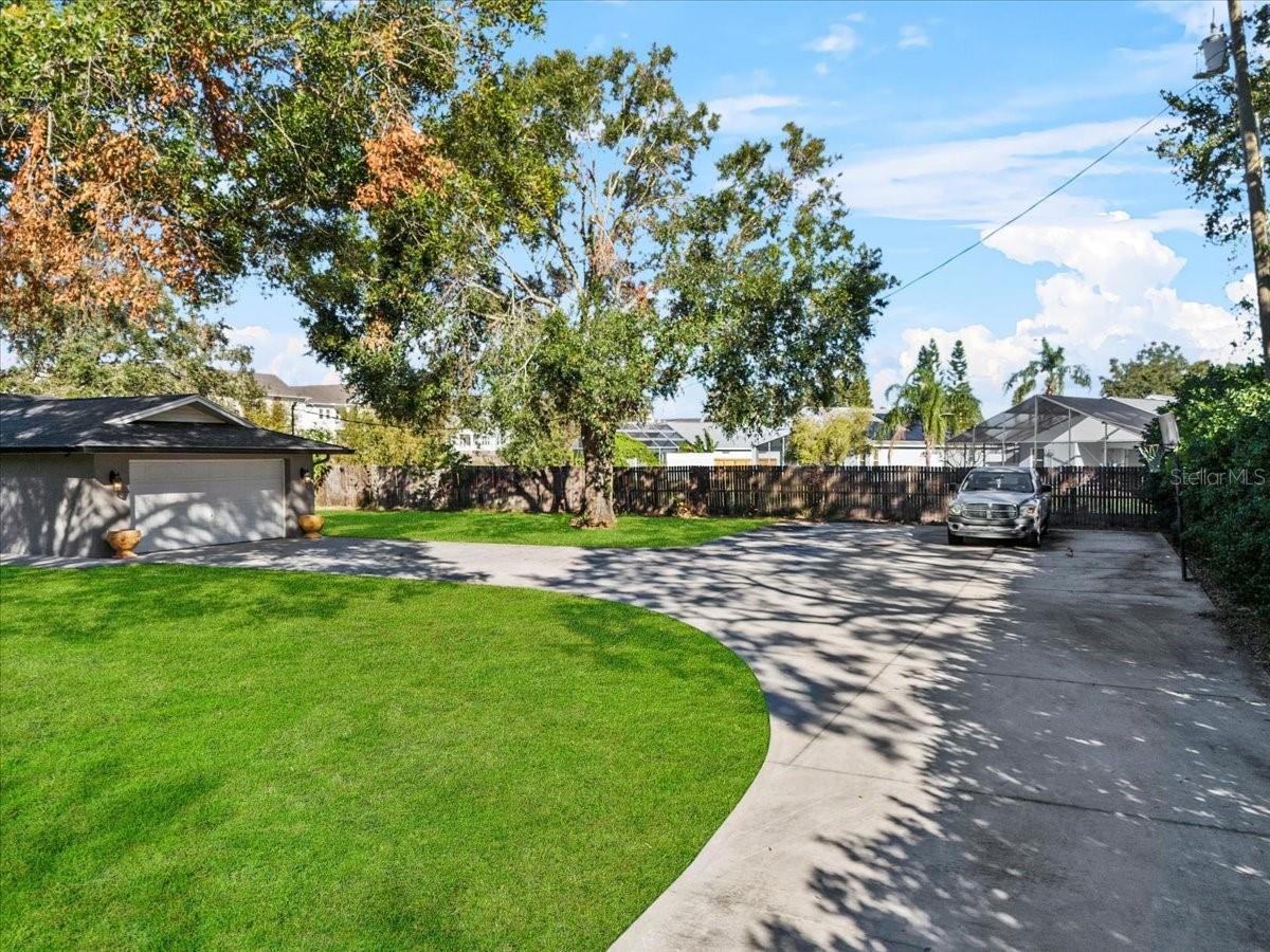 **1.26 ACRES IN S.E. WINTER HAVEN FLORIDA** - 3 Bedroom, 2.5 Bath, 2 CAR GARAGE AND 24' X 36' DETACHED GARAGE AND ADDITIONAL CARPORT SPACES ON 1.26 ACRES. Looking for land and privacy, here is a rare find waiting for you. Plenty of room for gardening, chickens and the animals. Beautiful leaded glass entry door opens into an open floor plan. Custom kitchen with Stainless steel appliances, Corian counter tops, breakfast island, pantry cabinet, window seat, built in desk and plenty of cabinetry with some having leaded glass doors. The living room includes a fireplace with custom surround. Master bedroom has private bathroom, walk in closet. Nice trees, landscaping, curb appeal and open yard are great for entertaining, parties and more. Detached Garage (with water and electric) with attached covered carport and additional aluminum covered carport provide room for storage, big boy toys, workshop etc. NO HOA! Well and septic so no water and sewer bills. Appointment only -Private Road & Private Gated Entry - Call today before its gone!