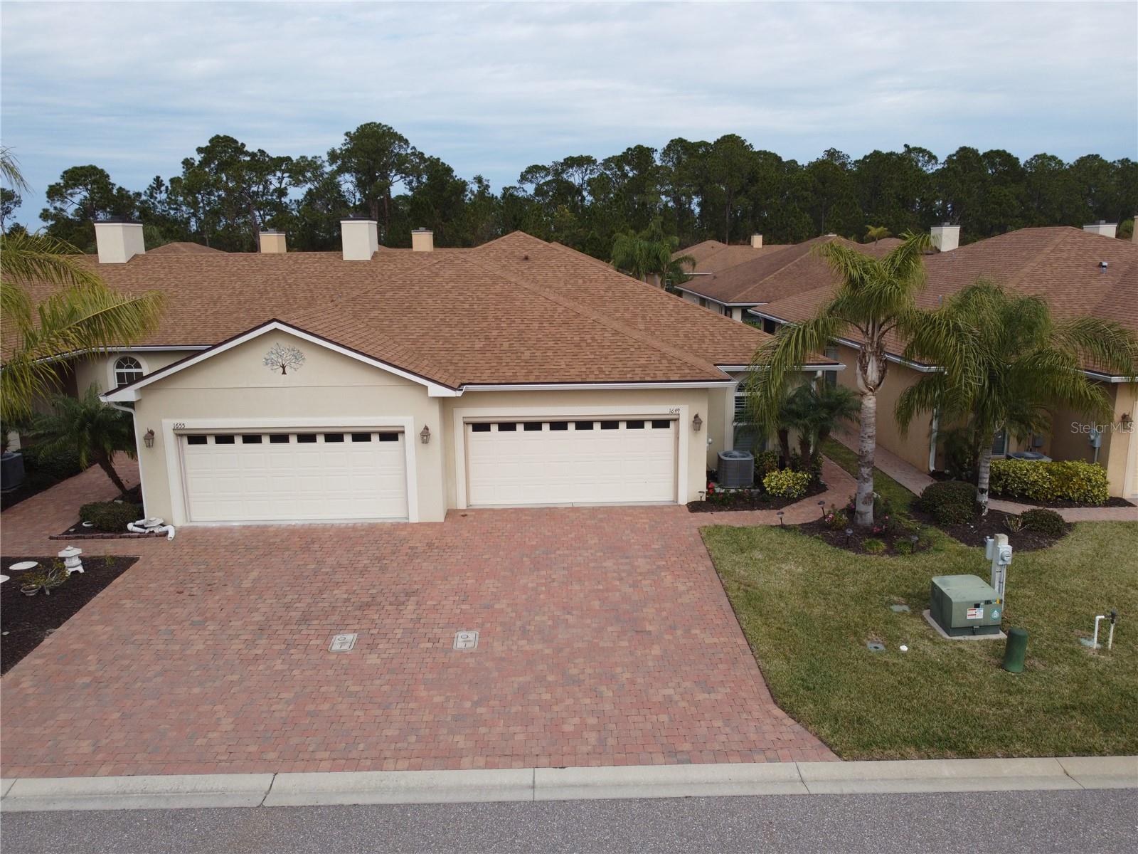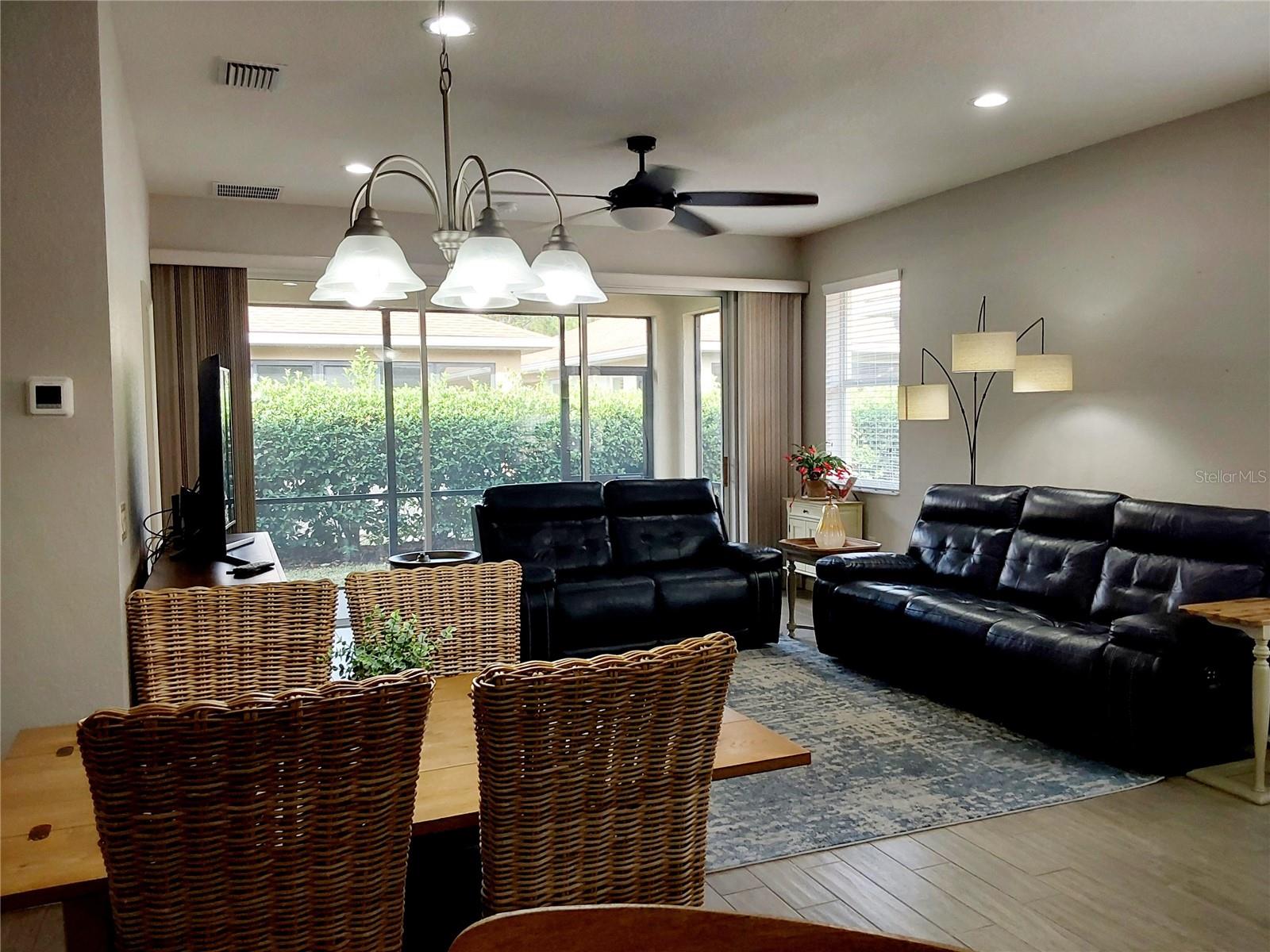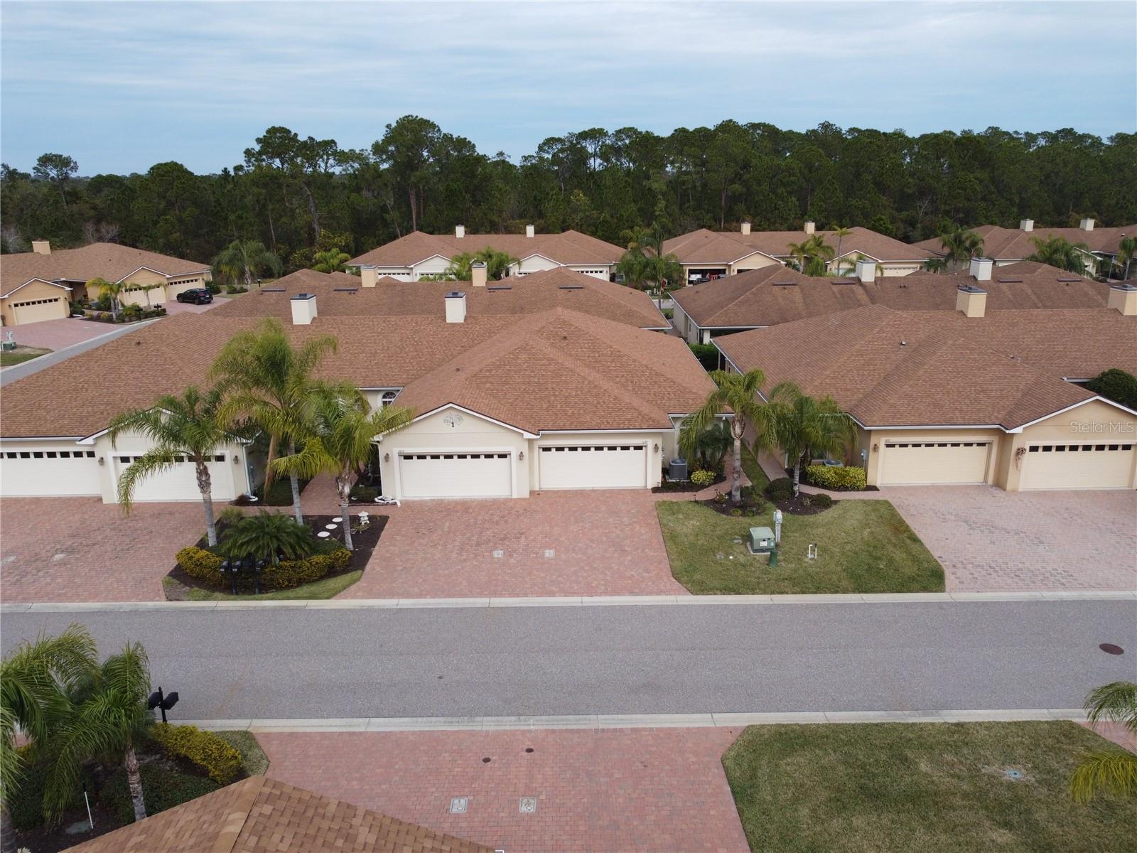 Back on the market at no fault of the Seller! This 55+ end unit villa boasts an impressive list of upgrades and luxurious features, perfect for a comfortable Florida lifestyle! The spacious interior includes a large kitchen with high-end appliances and banker cabinets, two full bathrooms and a master bedroom with its own walk-in custom built closet, walk in tile shower with built-in bench seating. The beautifully designed space is further enhanced by porcelain tile throughout featuring an ADA-compliant design. The screened in porch with retractable stacking sliding glass doors, offers seamless transition between indoor and outdoor living. The oversized 2-car garage is also equipped with a custom privacy screen! There is whole home water softner system and rain gutters were installed as well. The gated community offers residents a community pool, hot tub, fitness center, tennis courts, social events and more! Maintenance of exterior paint and roof replacement is included in the monthly HOA dues. Also included in the monthly fee is a Spectrum TV and Internet package as well as yard maintenance and irrigation. You don't want to miss the opportunity to call this home! Call today for a private showing!