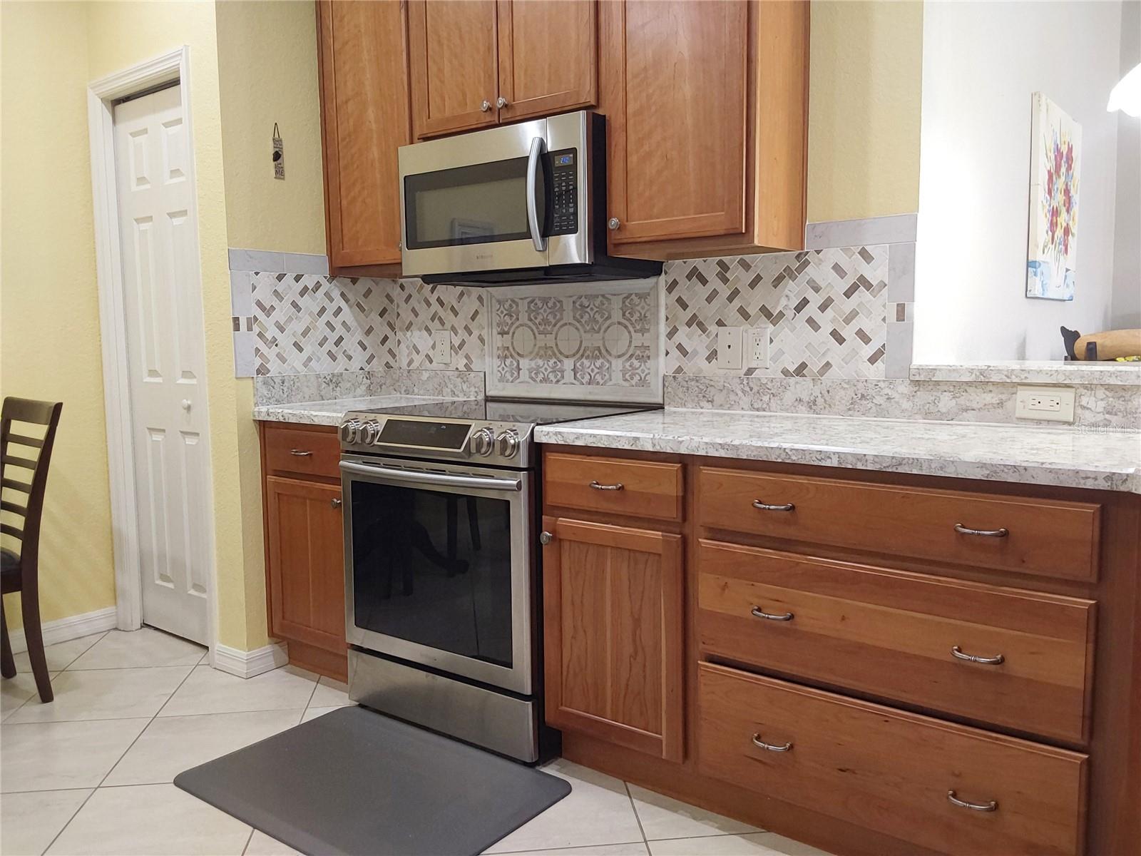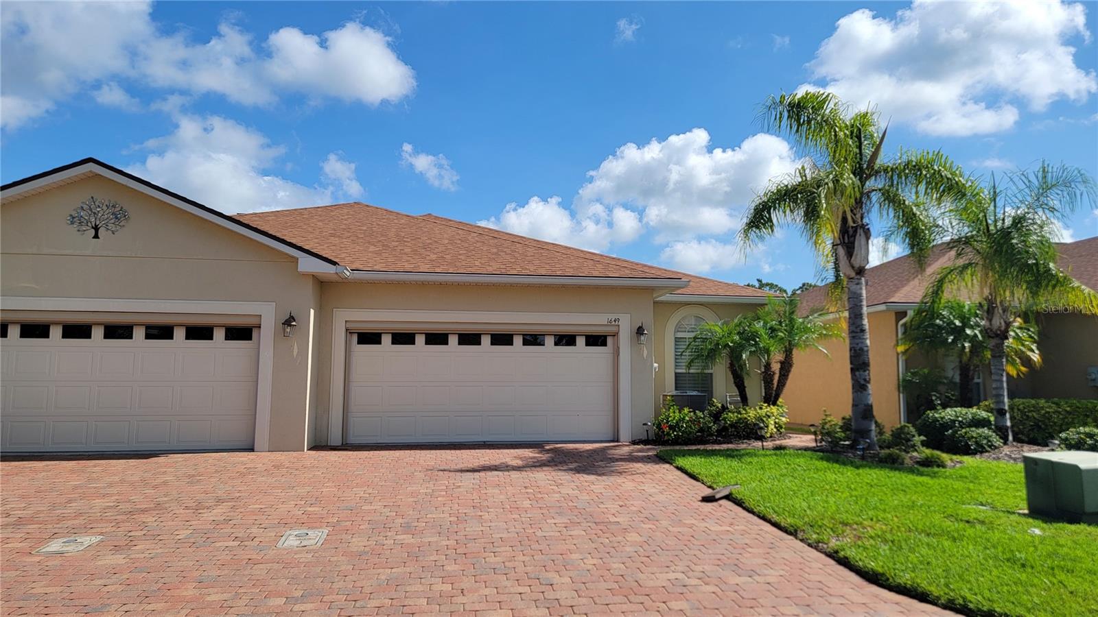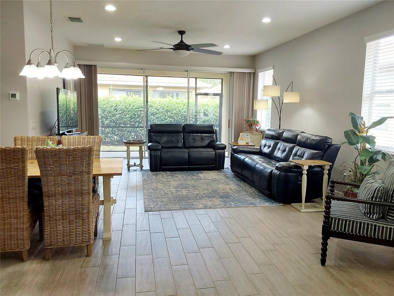 Back on the market at no fault of the Seller! This 55+ end unit villa boasts an impressive list of upgrades and luxurious features, perfect for a comfortable Florida lifestyle! The spacious interior includes a large kitchen with high-end appliances and banker cabinets, two full bathrooms and a master bedroom with its own walk-in custom built closet, walk in tile shower with built-in bench seating. The beautifully designed space is further enhanced by porcelain tile throughout featuring an ADA-compliant design. The screened in porch with retractable stacking sliding glass doors, offers seamless transition between indoor and outdoor living. The oversized 2-car garage is also equipped with a custom privacy screen! There is whole home water softner system and rain gutters were installed as well. The gated community offers residents a community pool, hot tub, fitness center, tennis courts, social events and more! Maintenance of exterior paint and roof replacement is included in the monthly HOA dues. Also included in the monthly fee is a Spectrum TV and Internet package as well as yard maintenance and irrigation. You don't want to miss the opportunity to call this home! Call today for a private showing!