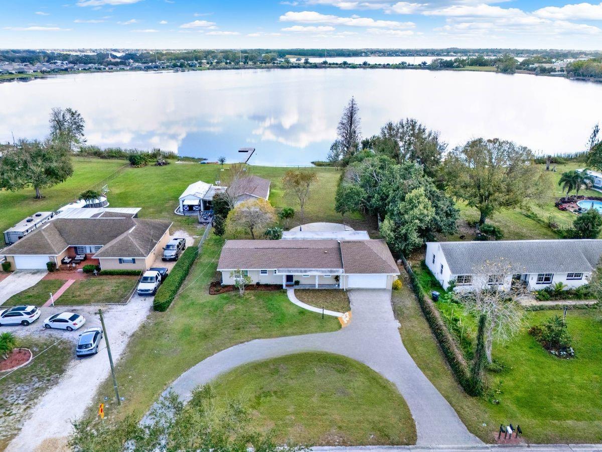 ***$25,000 PRICE REDUCTION FOR A QUICK SALE*** Welcome to your own piece of paradise at this stunning lakefront home featuring 3 bedrooms, 2 baths, a 20x20 bonus room, and a 960 square foot workshop with 2 bay doors. Enjoy breathtaking views of the tranquil lake with NO HOA, perfect for water activities such as skiing, tubing and fishing right from your backyard! This retreat is perfect for those who appreciate lakefront living! The open layout seamlessly connects indoor and outdoor living, maximizing the beauty of the surroundings. The charming kitchen offers wood cabinetry and ample storage space. The primary en suite features a clean and bright design, offering a peaceful retreat for relaxation. Two guest bedrooms offer cozy lakefront views. Step into the stunning Florida room, where you are greeted with an abundance of natural light streaming through the windows, creating a bright and inviting atmosphere. This spacious sitting area is perfect for unwinding or entertaining guests while enjoying the beautiful scenery. Whether you are sipping your morning coffee or watching the sunset, this Florida room offers a peaceful escape where you can fully immerse yourself in nature's beauty. Step outside to enjoy the picturesque lake views and explore the 24x40 detached workshop with ample storage space and an upgraded concrete slab to accommodate extra weight of heavy items being stored. The oversized patio pad offers a perfect spot to sunbathe, while soaking in views of the lake. There is an 8' double gate leading into the backyard. A/C replaced June 2025 (with a 10 year warranty), main electrical panel replaced 2024, roof replaced 2020. This lakefront retreat is a true gem for those seeking serenity and nature's beauty. Conveniently located near the Polk Parkway, shopping, and restaurants.