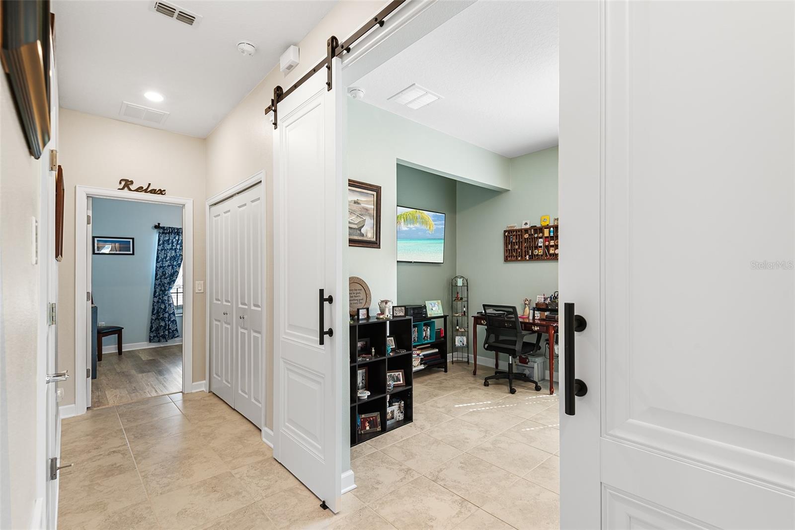 SELLER IS PAYING YOUR FIRST 6 MONTHS OF HOA FEES!!! Stunning Corner Villa with Den! Move-In Ready & Model Perfect! Welcome to this immaculate 2-bedroom, 2-bathroom corner villa with a versatile den/office, designed for modern living. Located in the sought after maintenance free living community of Traditions! Built in 2019, this home showcases quartz countertops, designer paint, and a combination of sleek tile and luxury vinyl plank flooring throughout. The open, split floor plan creates a bright and airy feel, the kitchen at the heart of the home, features stainless steel appliances and ample prep space. The primary suite is a true retreat, complete with a huge walk-in closet and a spa-like ensuite bath. A stylish barn door adds character to the den, perfect for a home office or flex space. Enjoy peaceful mornings or relaxing evenings in the screened-in lanai, offering a private outdoor escape. Additional highlights include a 1-car garage with extra storage. Seller recently widened the driveway for golf cart parking. This is the ONLY villa offering this feature! Worry free living while the HOA takes care of your lawn, mulch, irrigation, exterior paint, and roof!! Don’t miss this exceptional villa—schedule your private showing today!
