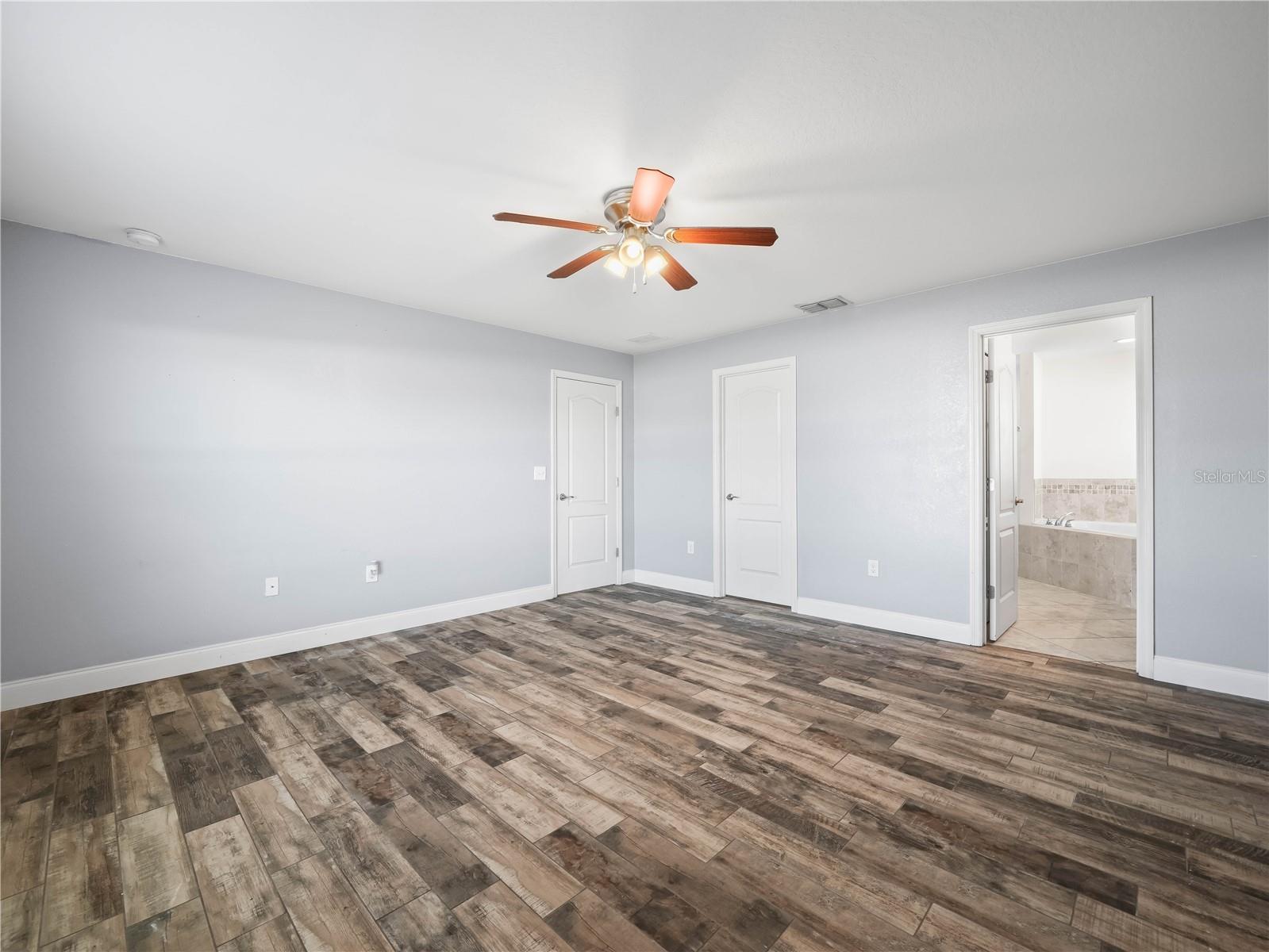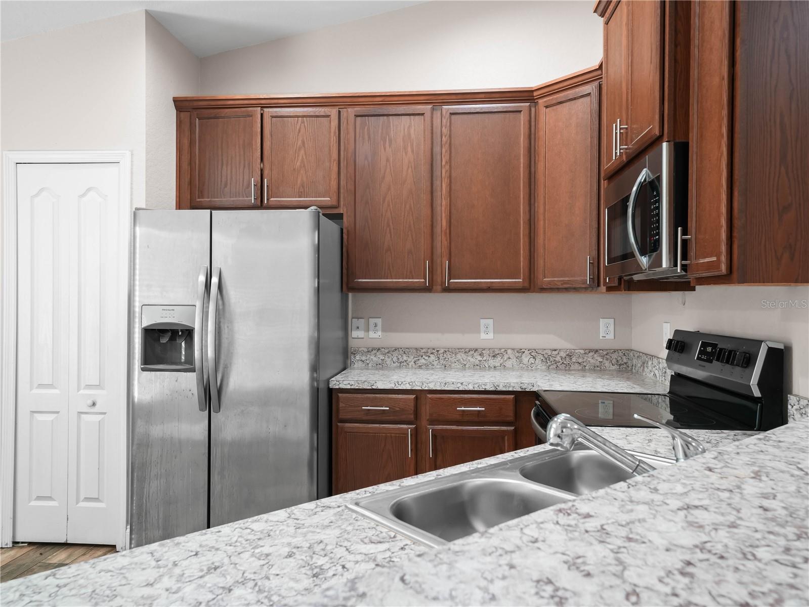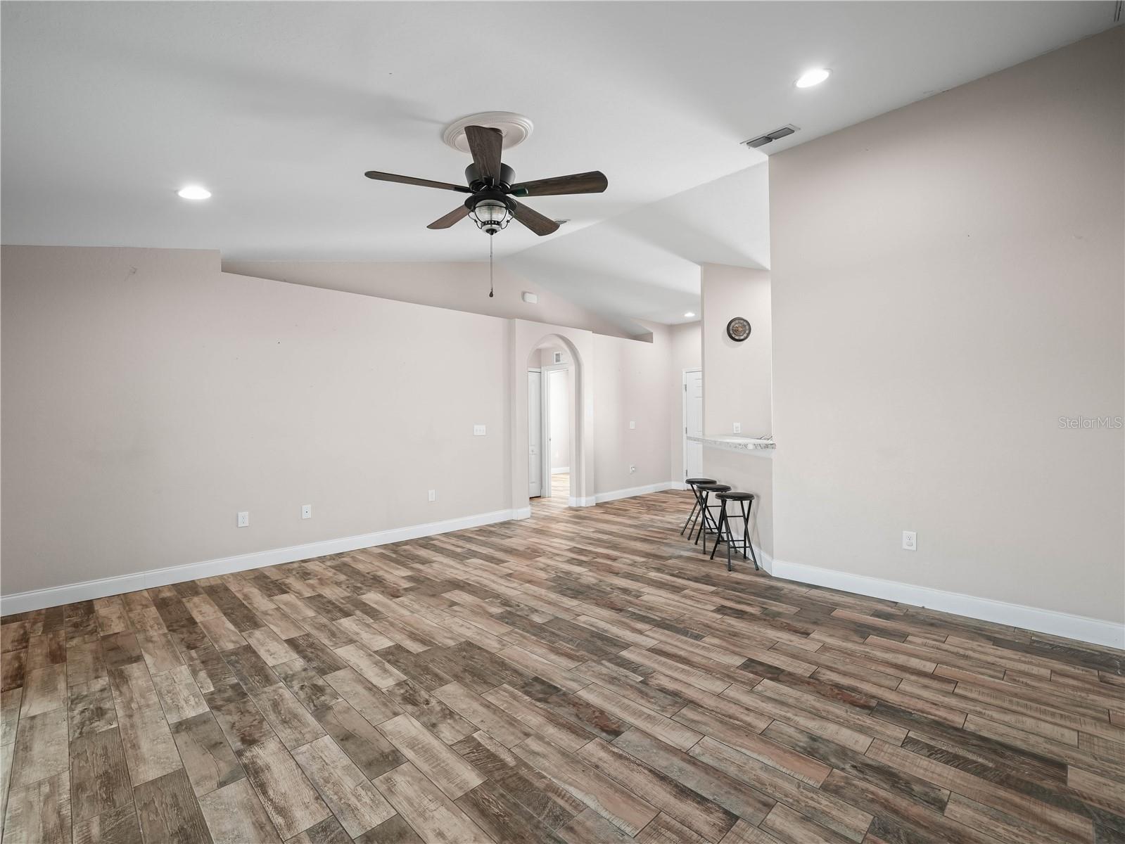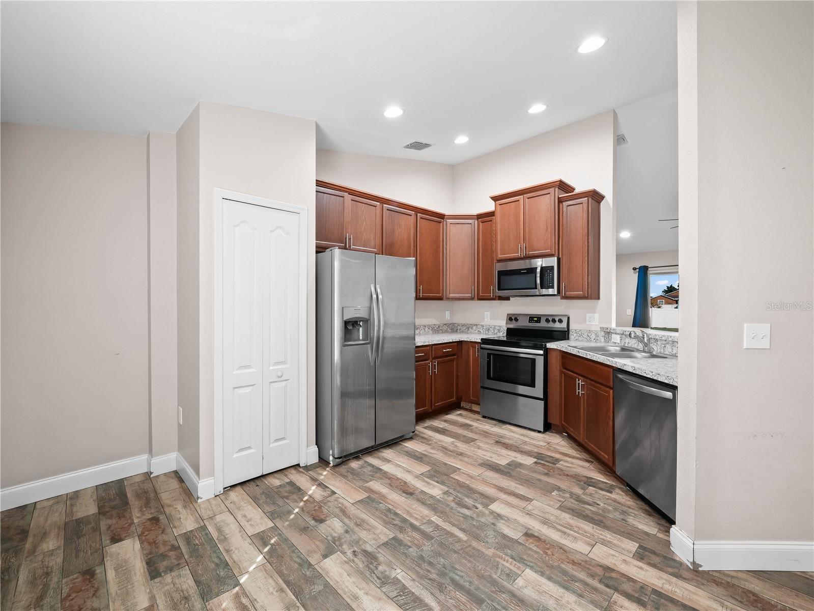 Charming 3-Bedroom Home with Open Floor Plan & Modern Upgrades! Step into this beautifully designed home featuring an open-concept layout with elegant wood-look tile flooring throughout. The spacious living area is bright and airy, with large sliding glass doors leading to the backyard, perfect for indoor-outdoor living. A stylish ceiling fan adds comfort and charm to the space. The kitchen is a chef’s dream, boasting rich wood cabinetry, sleek stainless steel appliances, granite countertops, and a breakfast bar with seating—ideal for casual dining and entertaining. The adjacent dining and living areas create a seamless flow for family gatherings. Retreat to the generously sized bedrooms, each offering ample natural light and ceiling fans for year-round comfort. The primary bedroom is a private oasis, with a soothing color palette and large windows overlooking the backyard. This home is a perfect blend of style and functionality, offering modern upgrades in a warm and inviting setting. Don’t miss this opportunity—schedule a showing today!