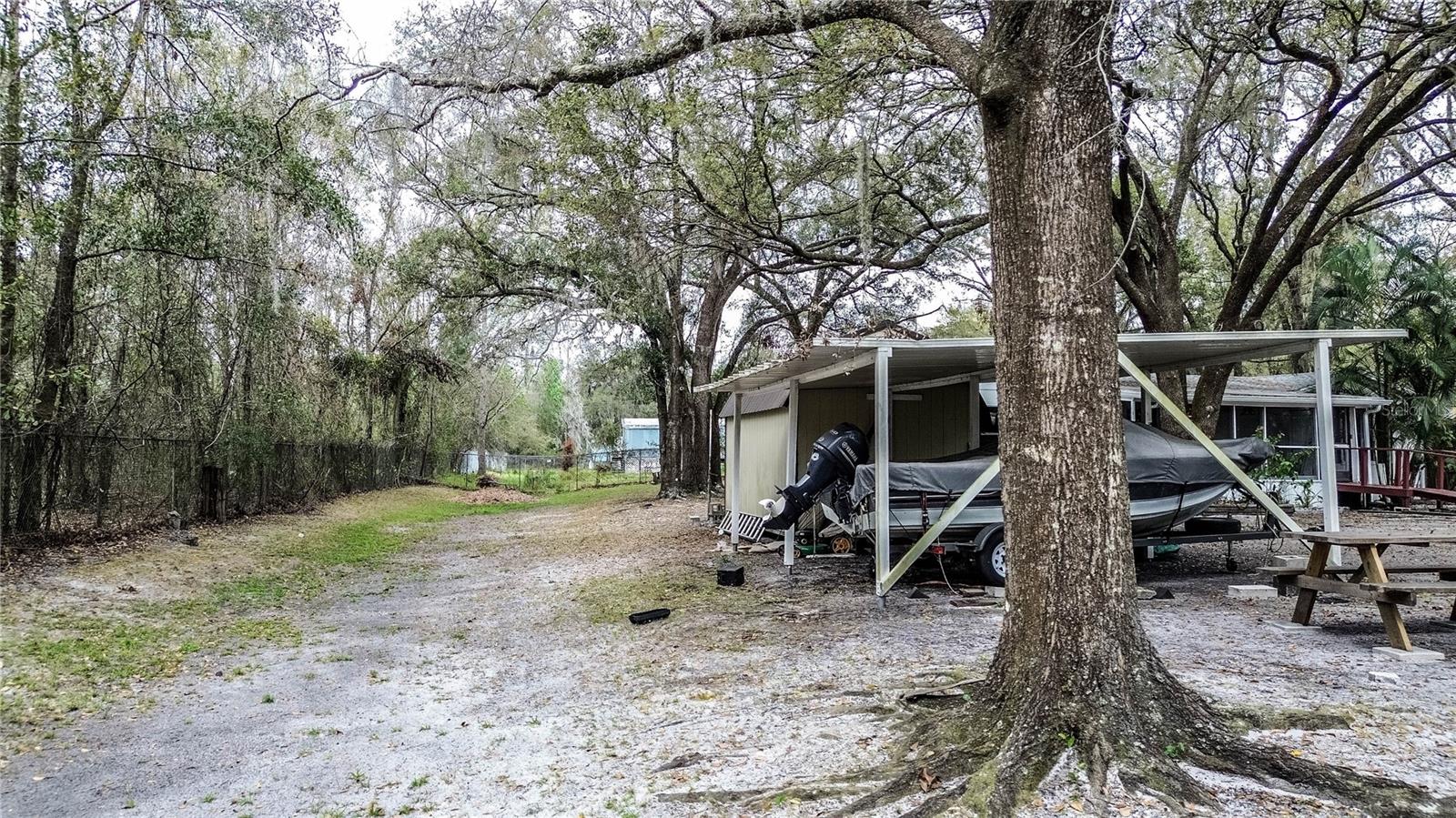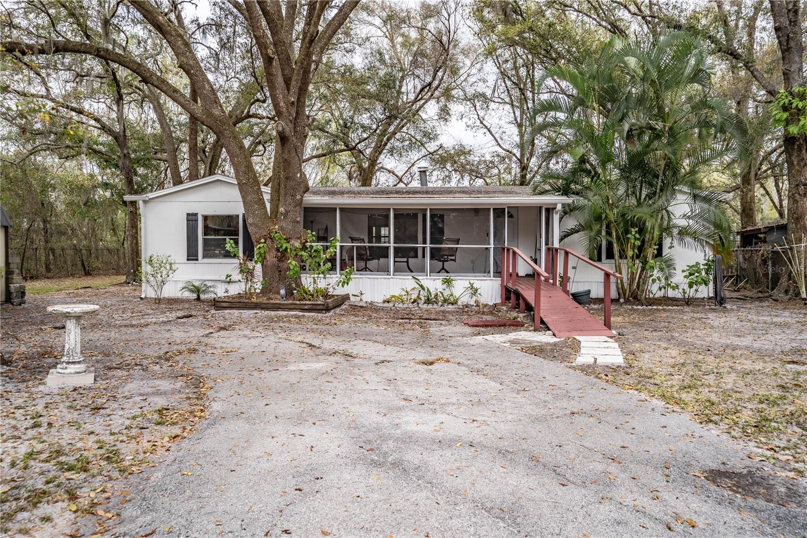 Welcome to this charming 3-bedroom, 2-bathroom home nestled on a secluded oversized lot, offering both privacy and space. Recent updates throughout make this home move-in ready, including a newer roof and stylish new flooring. The property features a convenient circular driveway, a 2-car carport, and an accessibility ramp, providing easy access for all. Enjoy peaceful mornings or evenings on the screened-in front porch, or cozy up by the inviting fireplace in the spacious living room. The fenced-in yard provides a secure space for pets or outdoor activities, and the mature landscaping adds to the tranquil setting. Additionally, a shed is perfect for extra storage or hobbies. This home offers a blend of comfort and functionality, all while being surrounded by nature. Don't miss the opportunity to make this peaceful retreat yours!