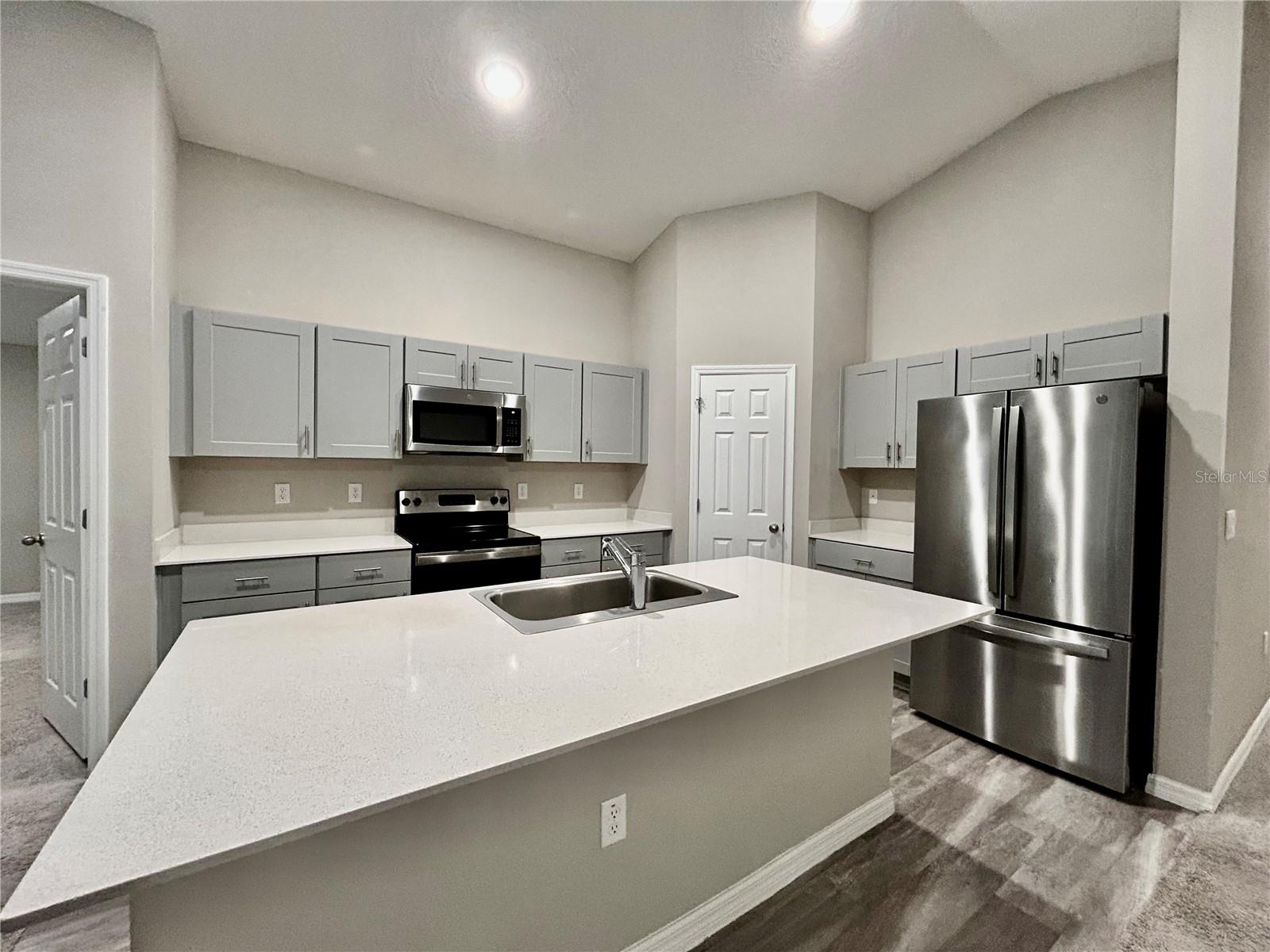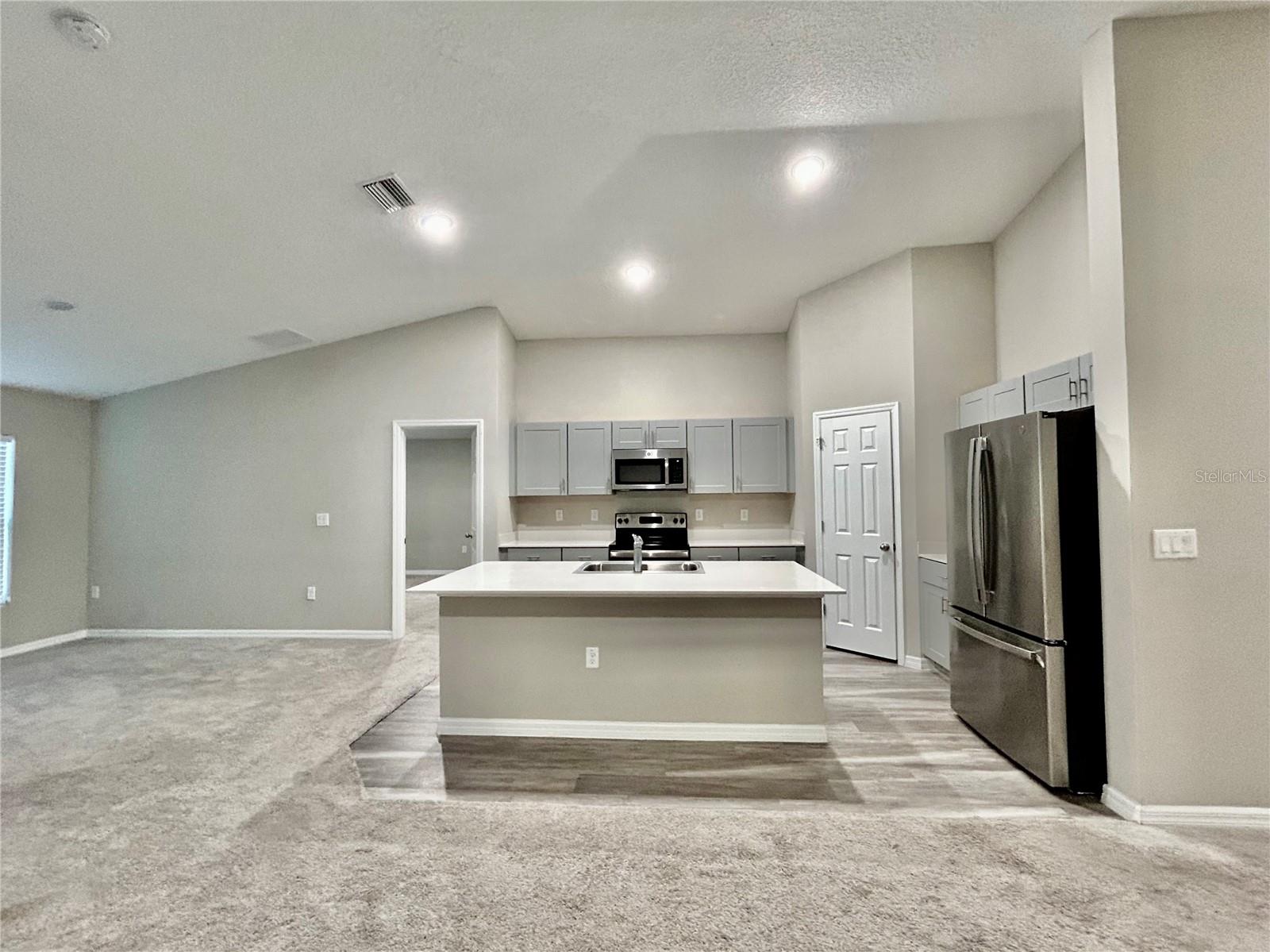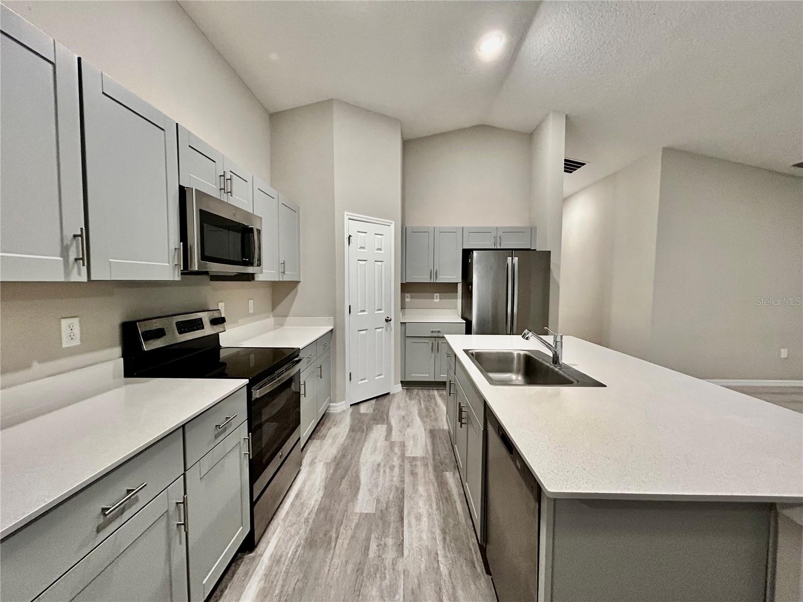 Step into this beautifully designed 4/2 home, where a welcoming foyer leads into a bright and airy living space, perfect for relaxing or gathering with loved ones. The open-concept design flows effortlessly into the stylish kitchen, which boasts sleek stainless steel appliances, ample cabinetry, a spacious island, and a generous walk-in pantry—ideal for both culinary adventures and everyday convenience. Whether you’re hosting lively get-togethers or enjoying a quiet weekend breakfast, this thoughtfully designed space caters to every occasion. Just off the kitchen, the dining area extends to a charming patio, offering the perfect spot to savor your morning coffee while overlooking the meticulously landscaped backyard. This outdoor retreat is an ideal setting for summer barbecues, gardening, or unwinding in the fresh air. The serene primary suite is a private sanctuary, featuring a spacious layout, a walk-in closet, and an elegant ensuite bath with dual sinks. Nestled in a sought-after community, this home is just minutes from scenic parks, and a variety of local shops and dining options. With convenient access to major highways, commuting is effortless and offers easy access to Tampa and Orlando. Don’t miss your chance to make this stunning property your own—schedule a showing today and start envisioning life in your new home!