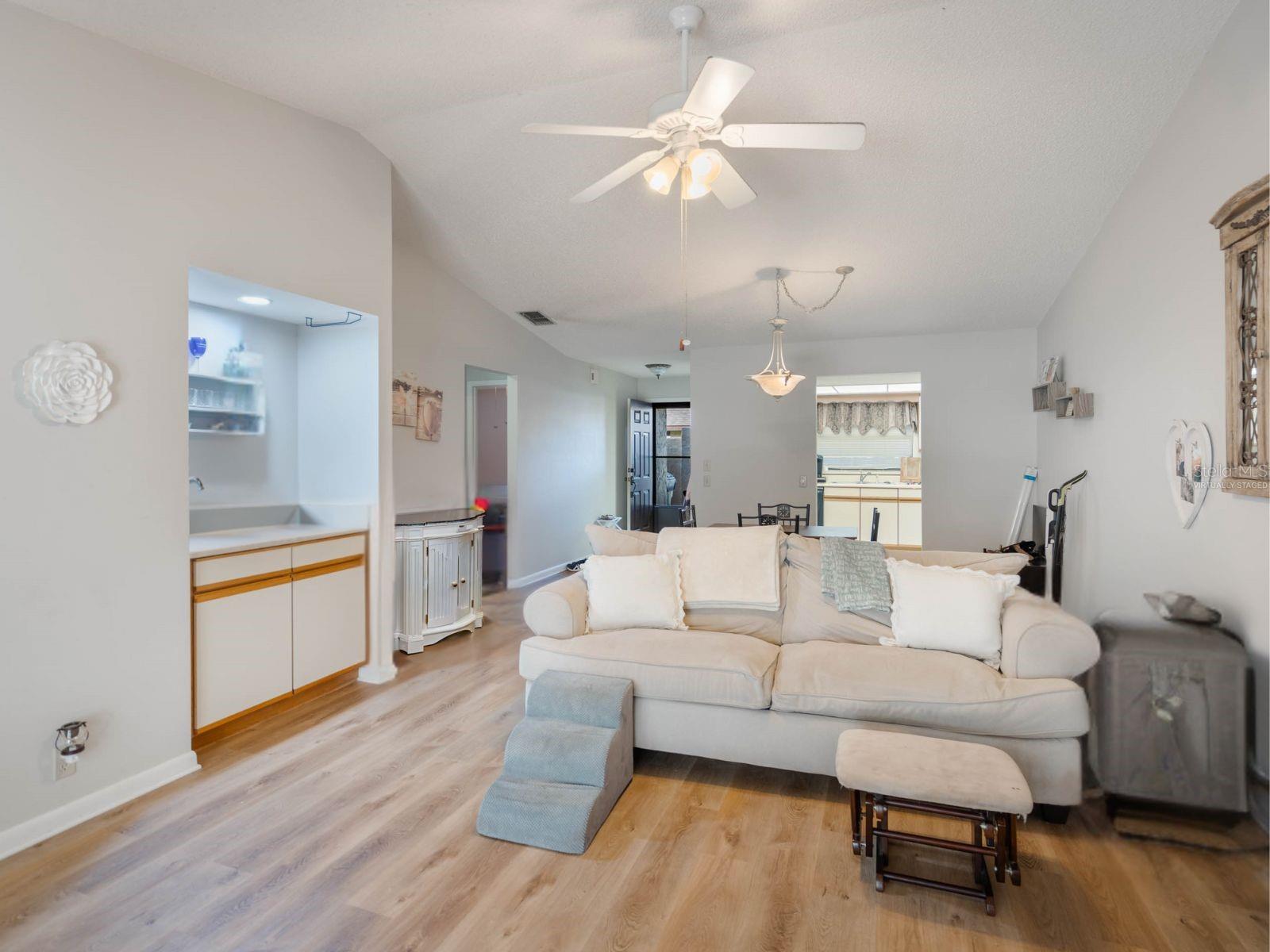 One or more photo(s) has been virtually staged. Welcome home to this spacious 2-bedroom/2-bathroom Golf Villa located in the highly-sought-after Cypresswood community of Winter Haven and enjoy nearly maintenance-free living. Renovations completed in recent years include newer luxury vinyl flooring, kitchen appliances, and a freshly painted interior. This single-story villa offers TWO outdoor spaces in both the front and the rear, covered parking (golf carts allowed, too!), a huge heated/cooled lanai overlooking the 8th fairway, and your very own WET BAR in the living room. The low monthly HOA dues include all exterior building and grounds maintenance, including a new roof that was replaced within the last five years. The Cypresswood community features an 18-hole championship golf course designed by Ron Garl, junior Olympic-sized community pool, lighted tennis courts, clubhouse, event space, and so much more. Meet friends for a card game or dinner at the clubhouse, or host your next event in one of many recreational spaces. This home is minutes from Highway 27 and the I-4 corridor, Winter Haven's very own Legoland Florida Resort, the Polk Parkway, and in the center of a thriving community with many convenient grocery, restaurant, shopping, and commuting options. Schedule your private showing today, this property is truly a must-see!
