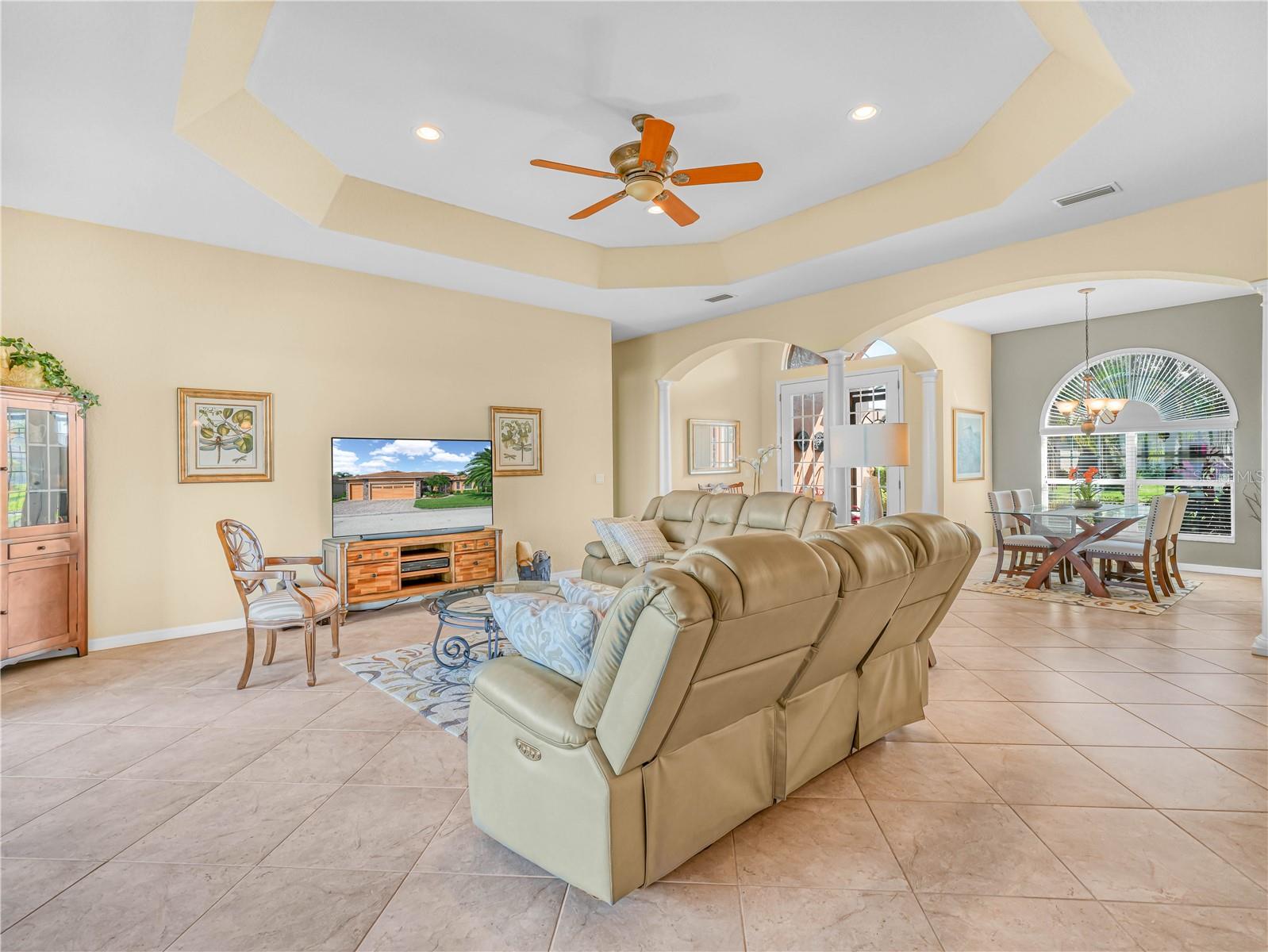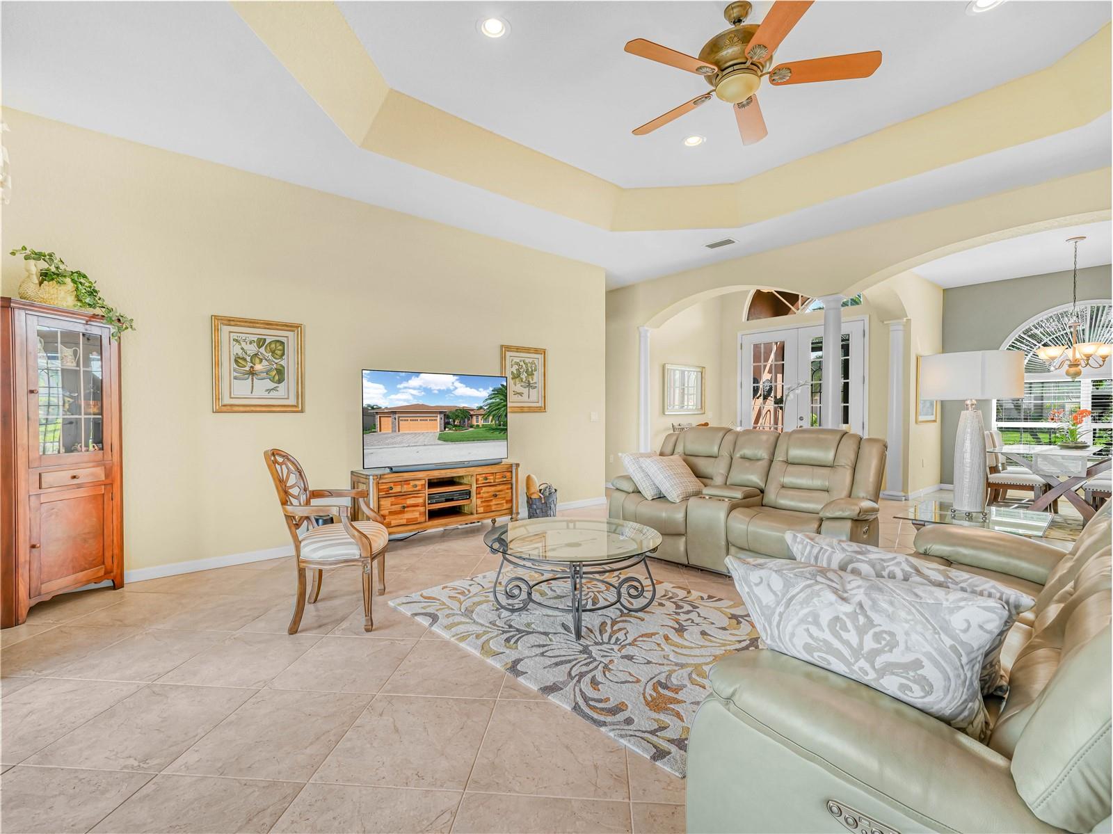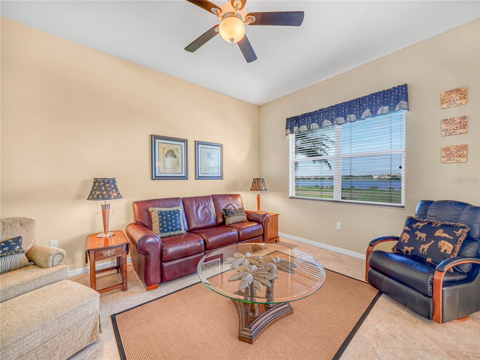 CDD DEBT PAID IN FULL! Golf Course Frontage and Amazing Water Views! Welcome to luxury living at its finest in the sought-after Lake Ashton 55+ community! Located on the 2nd Green of the West Golf Course, this spacious and meticulously maintained St. John home offers 3 bedrooms plus a EXPANDED Den (11X14) and 2 full bathrooms, providing an ideal blend of elegance and comfort. The inviting open floor plan sets the stage for a seamless living experience. This residence is move-in ready, boasting a range of luxurious features, including tray ceilings in the Living Room and Primary Bedroom, Window treatments, Diagonal tile flooring in Main Living Areas, Upgraded light fixtures, Motorized screen on the insulated garage door, Additional Golf Cart Entry, Accent Stone on the Exterior of the Home, Gutters on front, sides and rear of the home, Extended screened lanai (14X34), Screened front entry, Window tinting, Vertical cellular blinds at the Kitchen and Living Room Sliders, Exterior of Home was painted in March 2025 and MORE. The heart of the home is the modern and bright chef's kitchen, featuring 42" Cherry cabinets with paneled doors, crown molding, bump up and out cabinets, tile backsplash, walk in pantry, pendant lights over the breakfast bar, new range (2022) and dishwasher (2023). The generously sized primary bedroom and bathroom are a private sanctuary within the home, complete with double walk-in closets, a large walk-in shower, soaking tub and dual comfort height vanities for a spa-like experience. Step outside to the serene extended screened patio off the living, dinette and Primary Bedroom, providing the perfect setting for entertainment and relaxation while watching Golfers and nature wildlife around the lake. In the evening you'll enjoy the beautiful sunsets amidst the quiet surroundings from your lanai. ASK FOR A COMPLETE LIST OF UPGRADES!!! ROOF SCHEDULED TO BE REPLACED BY END OF JULY 2025. Residents of Lake Ashton enjoy access to an impressive 26,000 sq.ft. Clubhouse offering resort-style amenities, including an outdoor grand pool, hot tub, restaurant, tennis courts, a fitness center, bocce courts, move theater, bowling lanes, card, craft and billiards rooms, shuffleboard, basket ball courts and a wide array of activities and events. Residents also enjoy a Health and Fitness Center with grand indoor lap pool, indoor 1/2 court basketball, indoor full court racquetball, card, craft and billiards, fitness center, pickle ball, tennis and multi-purpose room. Golf memberships are available, with a Pro-Shop on-site. Conveniently located to medical facilities, entertainment, restaurants and shopping. Don't miss this exceptional opportunity to experience the epitome of luxury living in Lake Ashton.