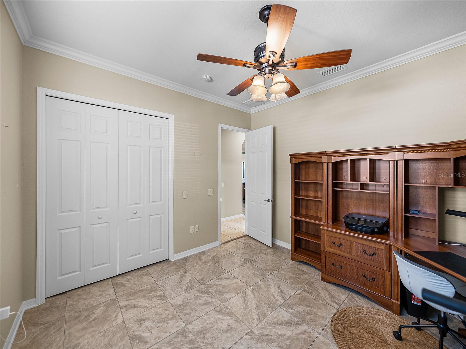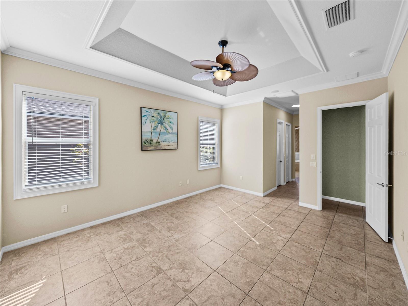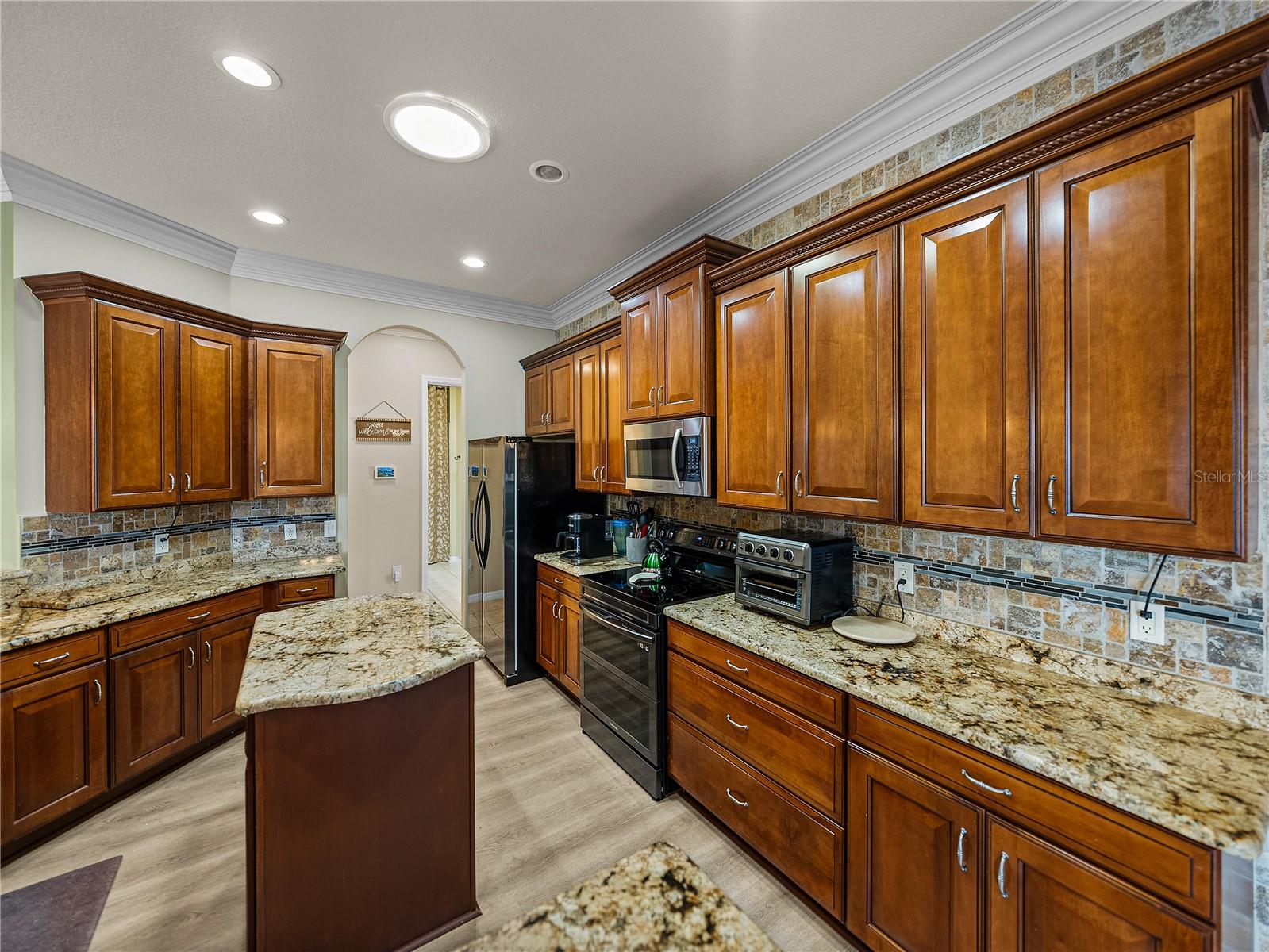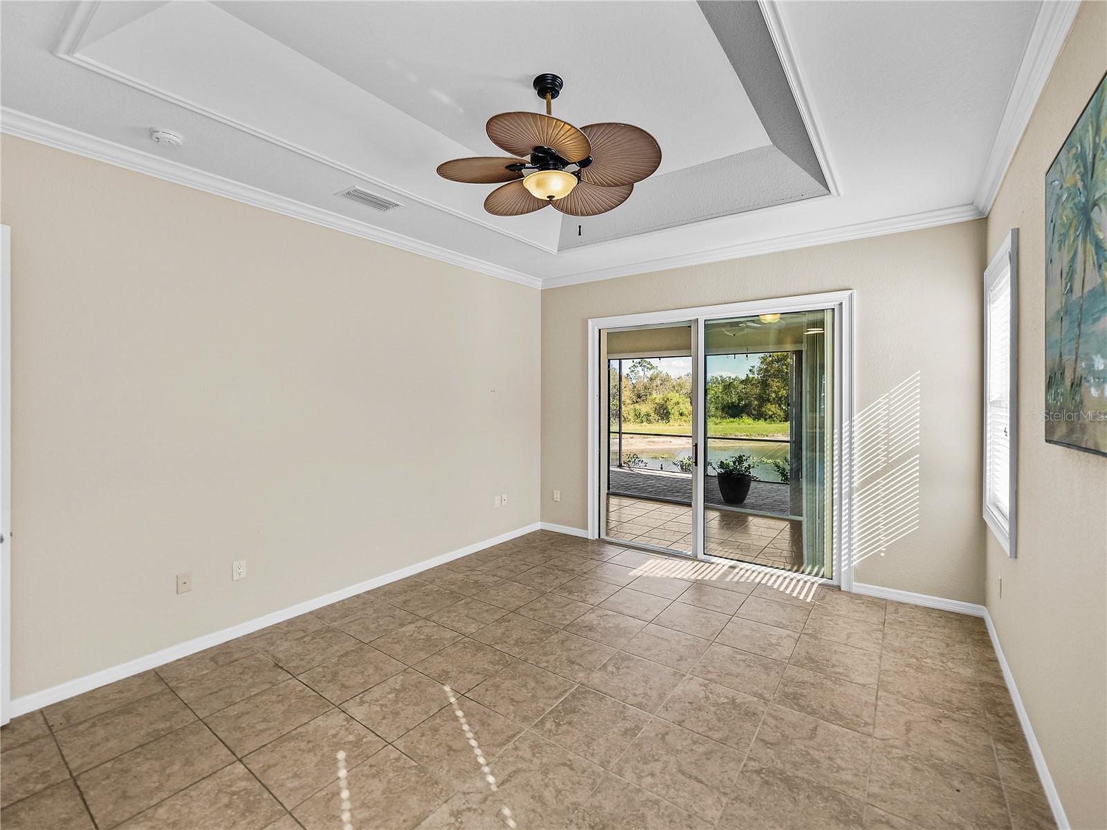 PRICE REDUCTION on this Stunning St John Floor Plan with Water and Nature views, featuring 3 bedrooms PLUS a den and 2 bathrooms with an enclosed Florida room and extended screened in Lanai. This Custom-built floor plan has so many upgrades you must see to appreciate. To Start, the front of the house has custom stacked stone, power screen on garage door, lush landscaping, front paver patio, enclosed screen entrance and beautiful beveled double glass doors. When you enter there are round columns that set off the dining room area from the Great room and raised stone archways that lead you to the kitchen and breakfast nook area. Coffered ceilings with recessed lighting and ceiling fan will also be found in the Great room and double crown molding is throughout the entire home. This custom built chefs kitchen has bank of drawers, beautiful raised panel 42" custom cabinets with crown molding, stainless steel appliances, large island for prepping with additional storage, pendant lighting over breakfast bar and Granite countertops. In the primary bedroom you have sliding doors leading to the enclosed lanai and a wonderful view to wake up to. The en-suite bathroom has two walk in closets, a walk in shower, double vanities, linen closet and a large soaking tub. The guest bedrooms are on the opposite side of the home giving guests privacy with a guest bathroom between them both. You will find a large walk in pantry, a large laundry room with washer and dryer that convey with the home. UPGRADES ALSO INCLUDE; New roof 2024, New AC 2022, New Kinetico whole house water softener, New refrigerator 2025, New Dishwasher and Stove 2022, New additional screened room with pavers 2022, & upgraded landscaping 2022. CDD BOND DEBT PAID IN FULL. Don’t miss out on this amazing home with views of the pond, woods, and Lake. The community offers tons of amenities with two clubhouses, two 18 hole golf courses, bowling alley, movie theatre, craft rooms, card rooms, billiards, pickleball, tennis, bocce and so much more you have to visit to appreciate it.