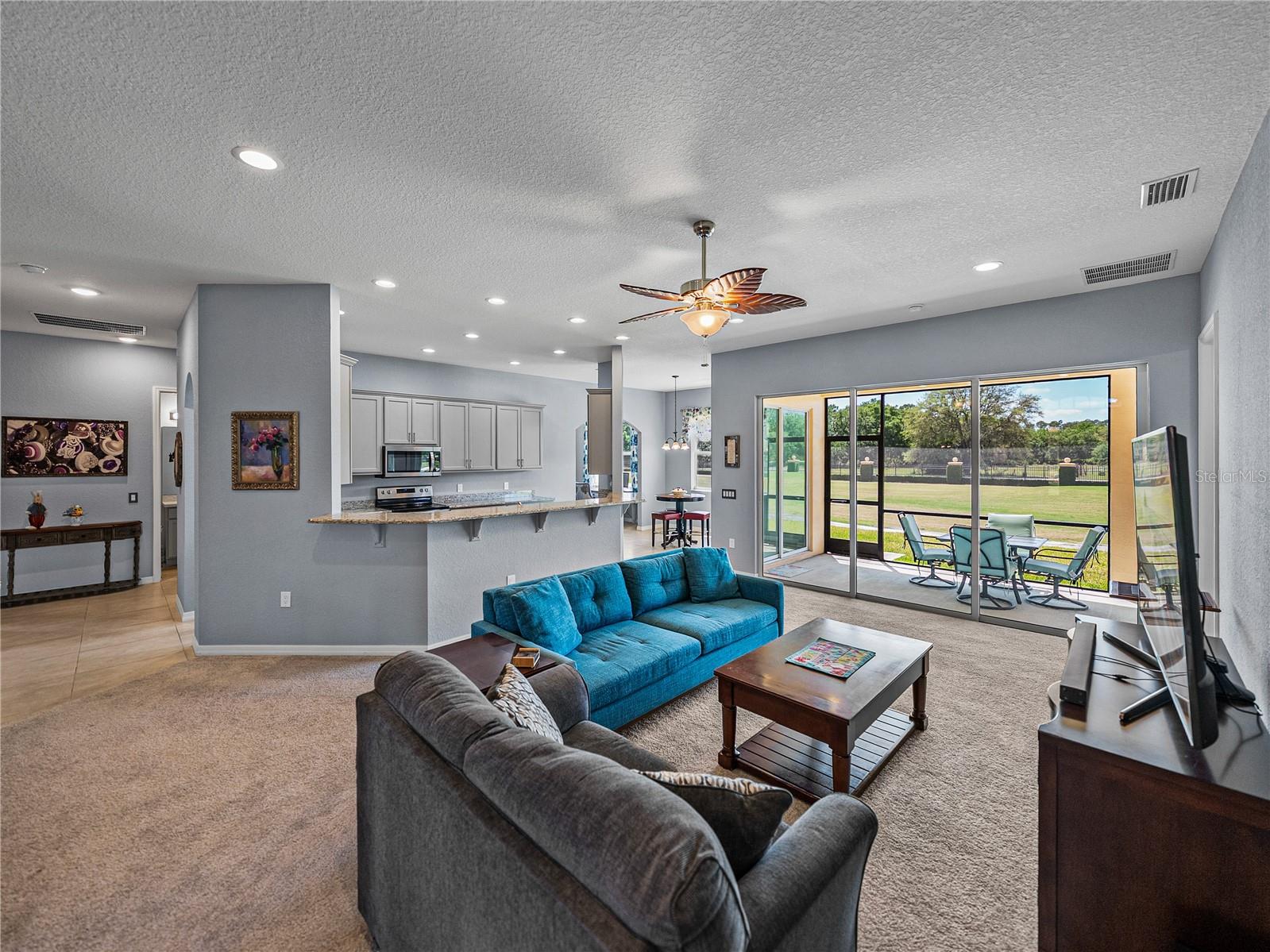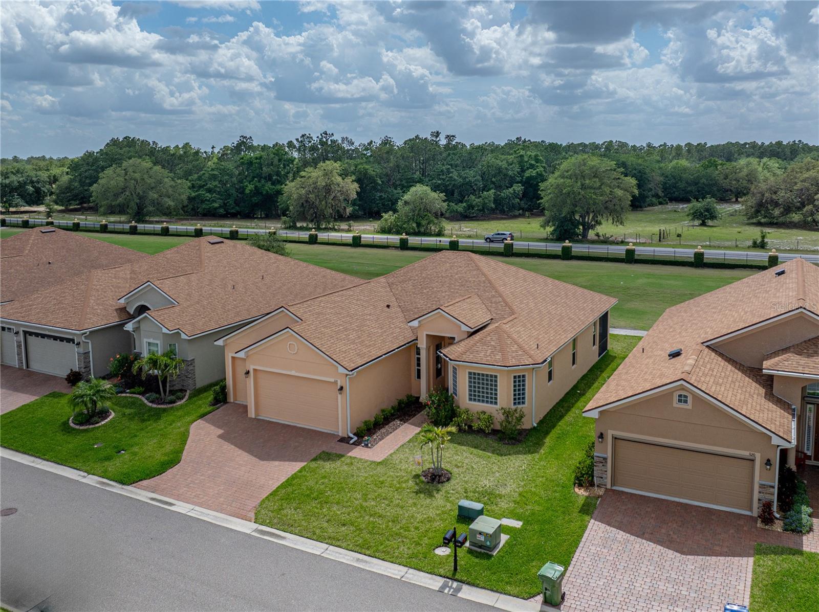 Welcome to your next chapter in beautiful Lake Ashton—Central Florida’s premier 55+ active adult community. This immaculate, nearly new home (just 3 years young!) offers a perfect blend of comfort, style, and Florida charm. With 3 spacious bedrooms, 2 full baths, and a flexible den/office that enjoys tranquil views of the tee box on the 10th fairway of Lake Ashton’s West Golf Course, this home is ideal for both relaxed living and entertaining. Certified as a Green Home by Environments for Living, it also comes with a like-new Onward model Club Car golf cart—featuring lithium batteries—which conveys with the purchase! As you arrive, you’ll be welcomed by elegant architectural details including glass block windows in the master bath, a transom window, sidelight by the front door, and a lovely dining room window, all contributing to the home’s bright, sunlit ambiance. Triple sliding glass doors open up to the veranda, blending indoor and outdoor living with ease. The heart of the home—the kitchen—is a chef’s delight, showcasing Skylar maple cabinetry in a rich Shale finish, beautifully complemented by Silver Frost granite countertops with a beveled edge and fingerprint-resistant stainless-steel appliances. The primary suite is a serene retreat with his-and-hers walk-in closets, while the ensuite bath features handicap-height fixtures and a spacious soaking tub for unwinding at the end of the day. A generous 2-car garage plus a separate golf cart bay adds convenience and storage. This thoughtfully designed home offers a gracious and tasteful setting for everyday enjoyment and entertaining alike. Lake Ashton is more than a neighborhood—it’s a lifestyle. Residents enjoy two 18-hole championship golf courses, a 26,000 sq ft clubhouse, a state-of-the-art Health & Fitness Center, pickleball courts, bowling alley, on-site restaurant, and a vibrant calendar of social events and clubs. Don’t miss this exceptional opportunity to own a home that truly has it all. Call today to schedule your private showing—your Florida dream awaits!