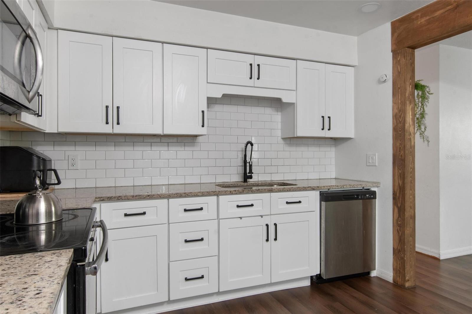 Nestled in a peaceful neighborhood, this beautifully updated four-bedroom, three-bath residence is a true gem that perfectly blends comfort and style. As you step inside, you’ll be greeted by an open concept floor plan that seamlessly connects the living, dining, and kitchen areas, creating a warm and inviting atmosphere perfect for entertaining and family gatherings. Elegant laminate wood flooring flows throughout the main living areas, while the bedrooms offer cozy carpeted spaces, providing a plush retreat for relaxation. The heart of this home is undeniably the stunning kitchen, where culinary dreams come alive! Featuring luxurious granite countertops, a chic subway tile backsplash, and a built-in hutch, this space is not only functional but also exudes modern charm. The cozy eating area invites family gatherings and casual meals alike. A unique highlight of this property is the mother-in-law suite, complete with a full kitchen, bathroom, private entrance and it's own privately fenced backyard. This versatile space is perfect for guests, extended family, or even as a potential rental opportunity, offering the perfect blend of independence and comfort. In addition, peace of mind comes from knowing that a brand new electrical panel has been installed, ensuring safety and efficiency throughout the home. Step outside to your private backyard oasis, fully fenced and adorned with mature trees that provide both shade and serenity. The expansive screened porch is the ideal spot to enjoy morning coffee or evening sunsets, while the spacious storage shed offers ample space for all your outdoor essentials. Don’t miss your chance to own this captivating home that promises comfort, convenience, and a touch of luxury. Schedule your private showing today and envision your life in this exceptional property!