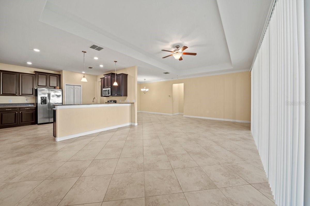 Welcome to this stunning Bonita-II home located in the highly desirable Traditions at Lake Ruby, a gated and maintenance-free 55+ community! From the moment you arrive, you’ll be greeted by a charming front entryway that leads into a spacious living room with soaring ceilings with crown molding. This 3-bedroom, 2-bathroom home sits on a premium lot with no rear neighbors, offering added privacy. Built in 2016, the home boasts over 1,800 sq. ft. of thoughtfully designed living space. The kitchen is a true highlight, featuring recessed lighting, 42" upper cabinets with pull-out drawers, beautiful stone countertops, stainless steel appliances, a breakfast bar, and a cozy sit-in dining area. Elegant tile flooring extends throughout the kitchen, dining room, hall bedroom, living room, bathrooms, foyer, and laundry room, while carpeting adds comfort to the front and master bedrooms. The oversized master suite includes sliding glass doors leading to the enclosed lanai, two walk-in closets, and a luxurious bathroom with dual vanities, granite countertops, a garden tub, and a tiled walk-in shower. The expansive 31' x 9' screened veranda is accessed through sliding glass doors in the living room, flooding the living room with natural light—perfect for an afternoon nap or enjoying your favorite book with a cup of coffee. Additional features include a 2020 roof, stone-accented exterior, paver driveway, irrigation system, gutters, and a 2-car garage with an overhead storage rack. The monthly HOA fee of $486 covers lawn care (including bush and tree trimming and mulch replacement), exterior painting (due to be painted in 2026 with owner’s choice of color), cable, and internet—offering exceptional value and convenience. Traditions at Lake Ruby offers an array of resort-style amenities, including a clubhouse, planned social activities, boat ramp and dock, heated outdoor pool and spa, ballroom, billiards room, meeting room, library, computer room, craft room, dog park, tennis and bocce ball courts, shuffleboard, a fitness center, and an aerobics studio. All of this is conveniently located near shopping, dining, medical facilities, hospitals, and Legoland!