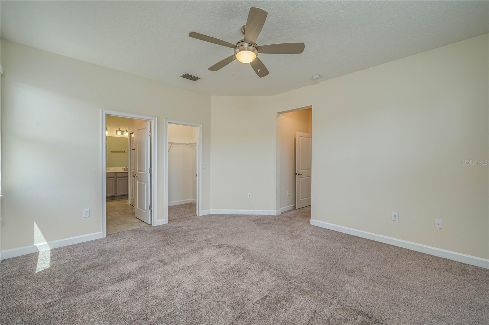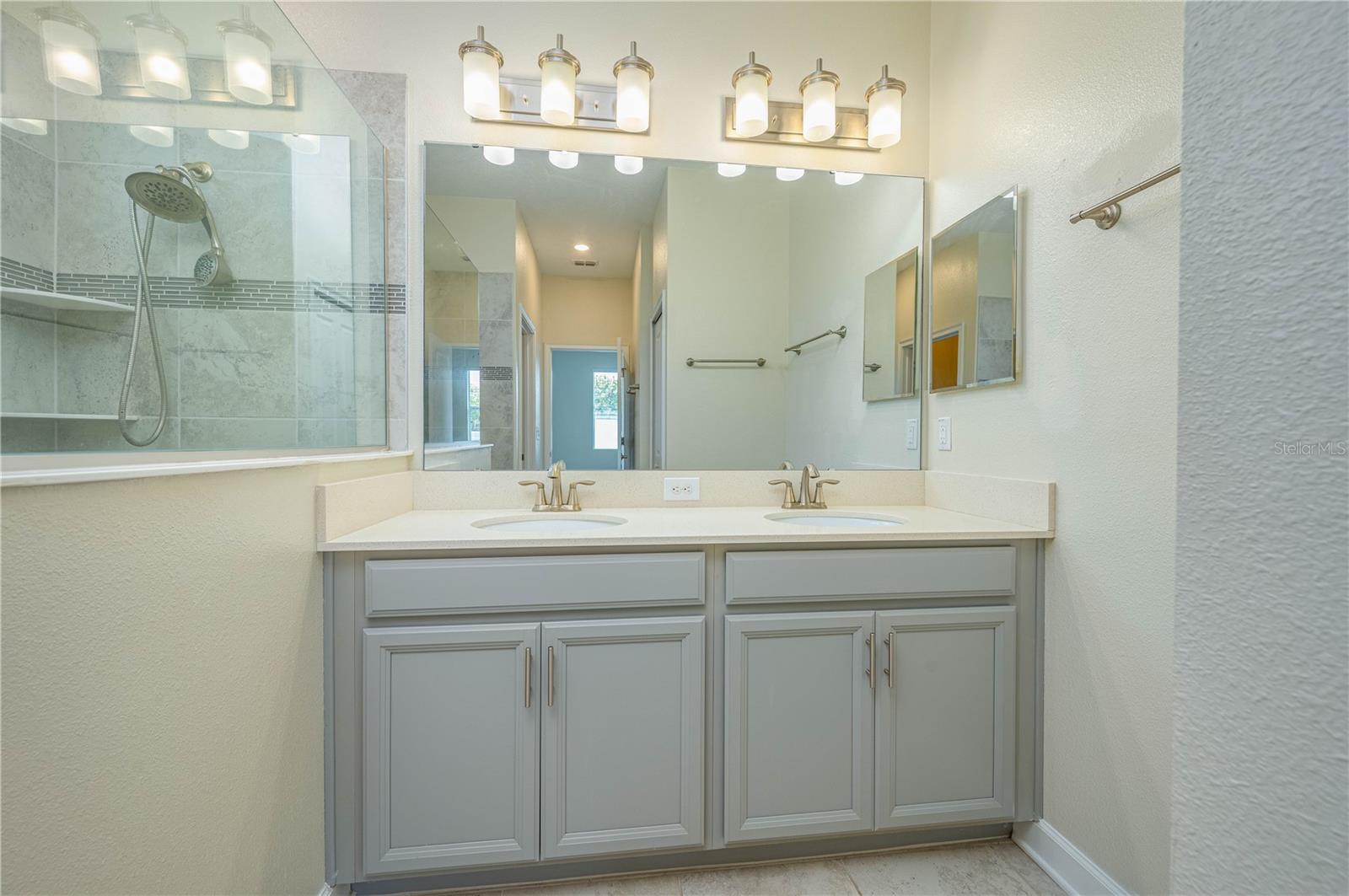 DON'T MISS THIS HOME!!! This stunning split 3-bedroom, 3-bathroom home offers a spacious and thoughtful layout, complete with a versatile den/bonus room perfect for an office, craft space, or quiet retreat. HOA covers Lawn Care among other benefits! TWO OF THE BEDROOMS FEATURE EN-SUITE BATHROOMS ensuring privacy and luxury for guests or family. The primary suite is a true haven, boasting TWO walk-in closets, an extra-large easy-access walk in shower, double vanity, and a linen closet combining elegance and practicality. Step through the triple sliders onto the impressive 18x16 lanai where half is covered so you can enjoy fresh air rain or shine. The epoxy-finished 2-car garage connects seamlessly to the home via the laundry room making daily routines effortless. A larger driveway (33x16) ensures plenty of parking for visitors and added convenience. The heart of the home must be the kitchen with its masterpiece of style and function! Kitchen has gleaming quartz countertops, taller cabinets, a walk-in pantry providing ample storage and workspace. This design allows room for bar stools making it a perfect spot for morning coffee, casual meals, or entertaining! The open floor plan effortlessly connects the kitchen, dining, and living areas creating a welcoming atmosphere for gatherings. Outside your front door, Traditions offers the lifestyle you've been looking for. This gated, active 55+ community features first-class amenities and beautifully landscaped grounds. The monthly HOA fee INCLUDES exterior house painting, cable, internet, lawn maintenance, and access to the clubhouse all providing a hassle-free lifestyle so you can focus on enjoying life without much of the maintenance. Here, every day is an opportunity to relax, explore, and enjoy all in a beautifully crafted home that offers space, style, and serenity. This home is a blank canvas, featuring neutral colors throughout, allowing you to effortlessly add your personal touch. Whether you envision warm inviting hues or sleek modern accents, this home is ready to be transformed into your perfect space! Move in and make it truly yours!