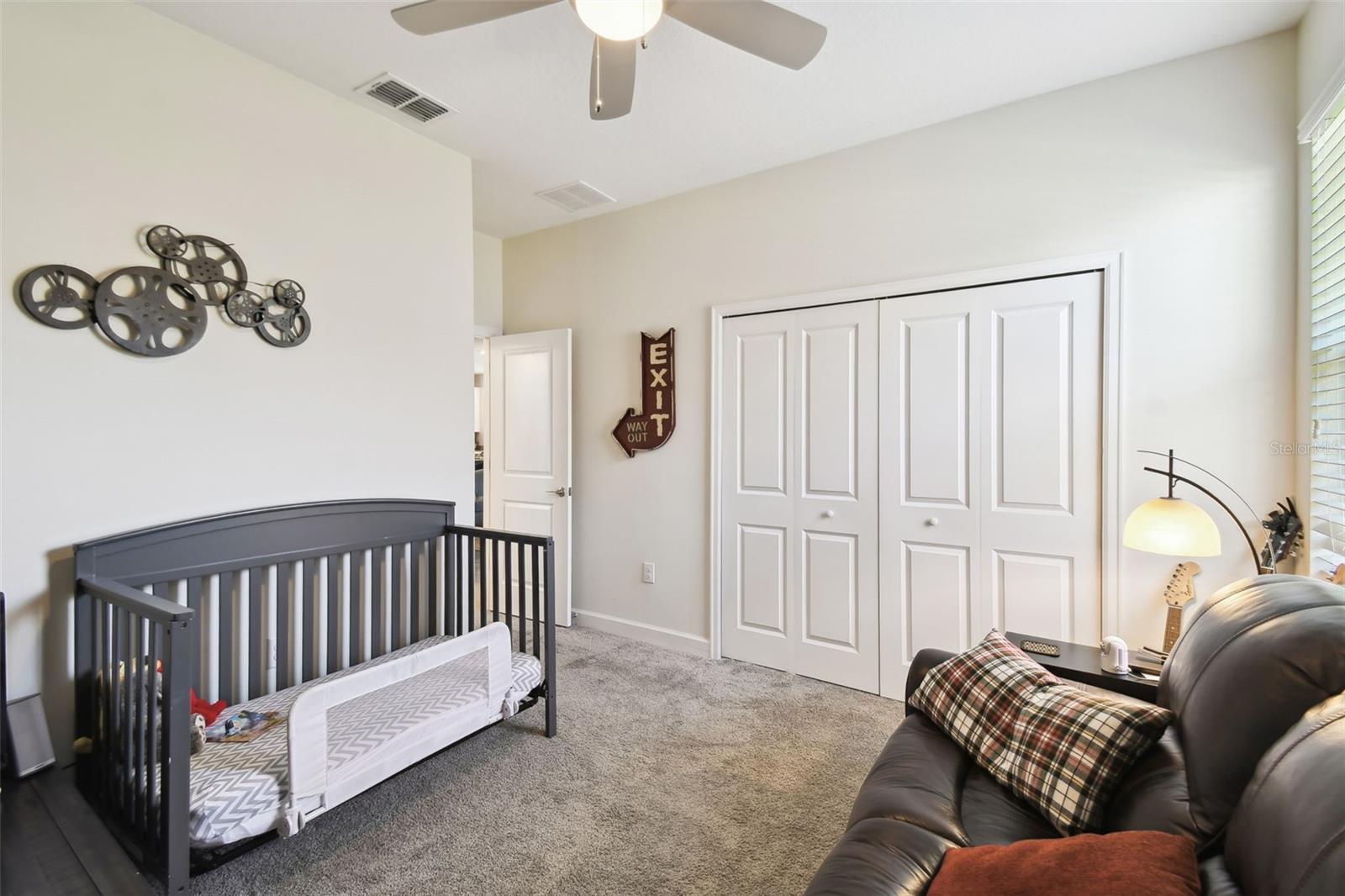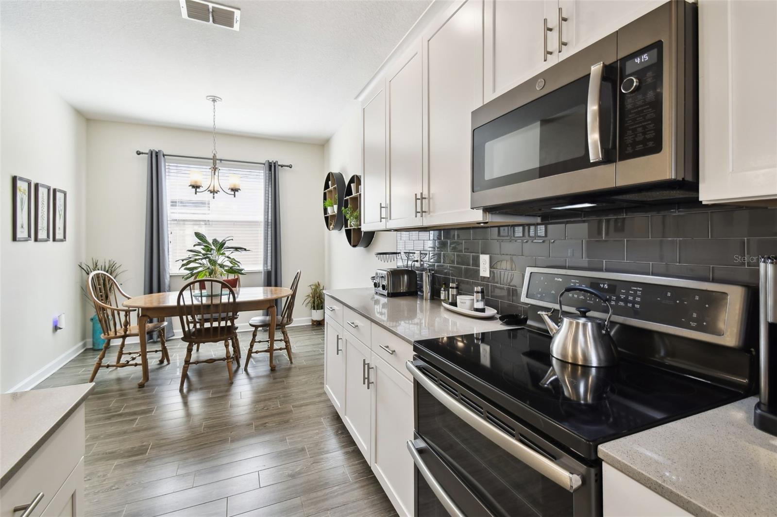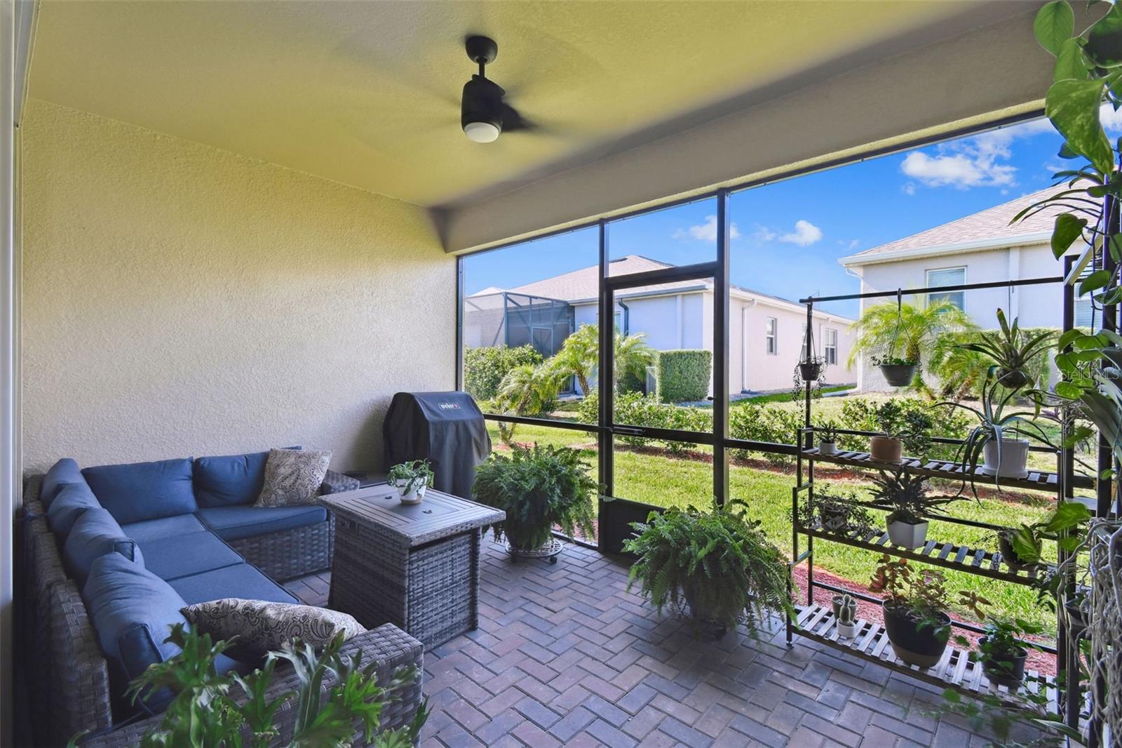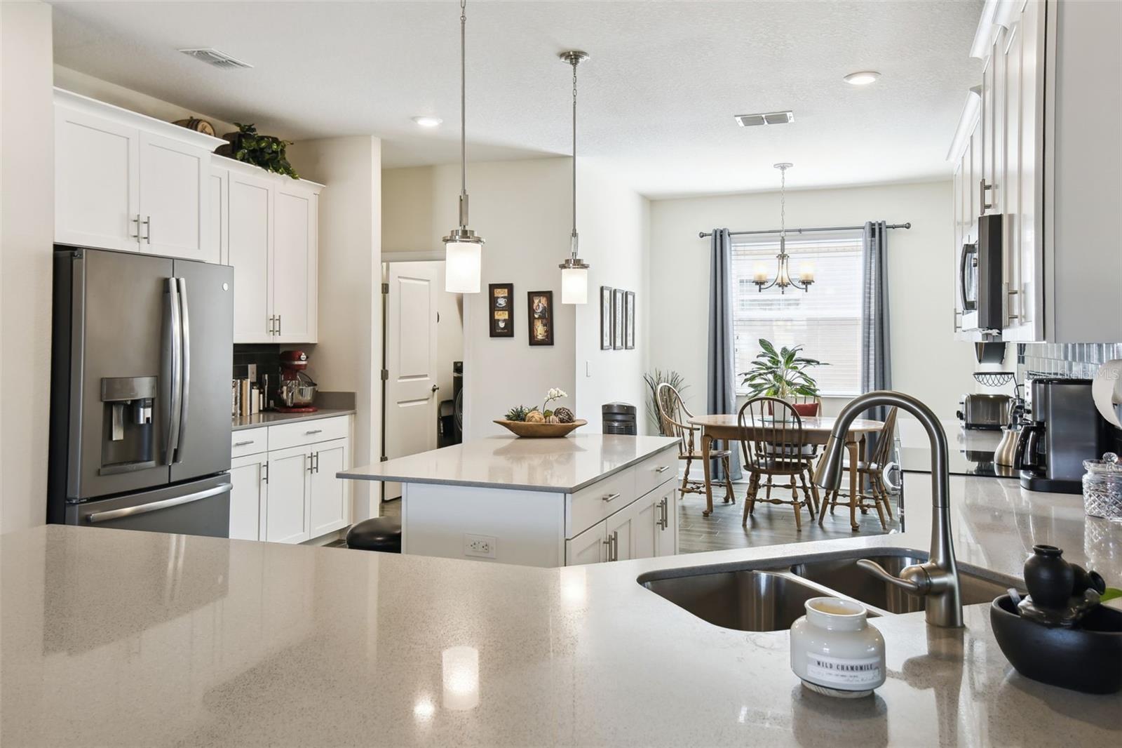Welcome to maintenance-free living in Traditions at Lake Ruby, one of Central Florida’s premier 55+ communities. Enjoy private lake access, a 19,000 square-foot clubhouse, heated pool and spa, tennis and pickleball, fitness center, dog park, boat slips, and a full calendar of events, all just minutes from shopping, dining, and medical care. Set on a prime corner lot, this four-bedroom, three-bath home offers over 2,300 square feet of bright, open living space and is impeccably maintained. High ceilings, tile flooring, crown molding, and hurricane-rated windows create a comfortable and secure interior. The gourmet kitchen features quartz countertops, 42-inch solid wood cabinets, stainless steel appliances, and a cheerful breakfast nook all flowing into the spacious great room and formal dining area. The split floor plan includes a generous primary suite with spa-style bath and walk-in closet, a front guest suite with private bath, and two additional guest rooms with a shared full bath. The screened lanai offers a peaceful place to relax outdoors, and the oversized three-car garage provides plenty of room for vehicles, storage, or hobbies. Smart home features and optional furnishings make this an easy, move-in-ready choice for year-round or seasonal living. HOA dues include lawn care, annual mulch replacement, exterior painting every 5 years, cable, internet, and full access to community amenities.