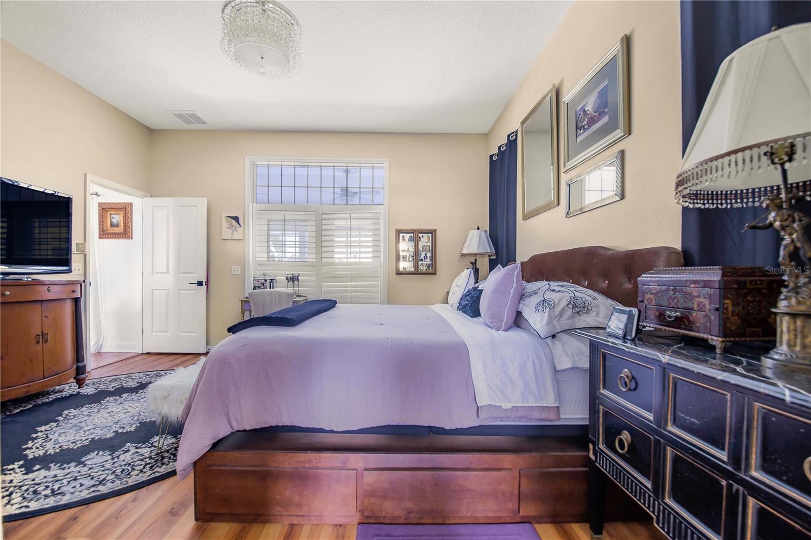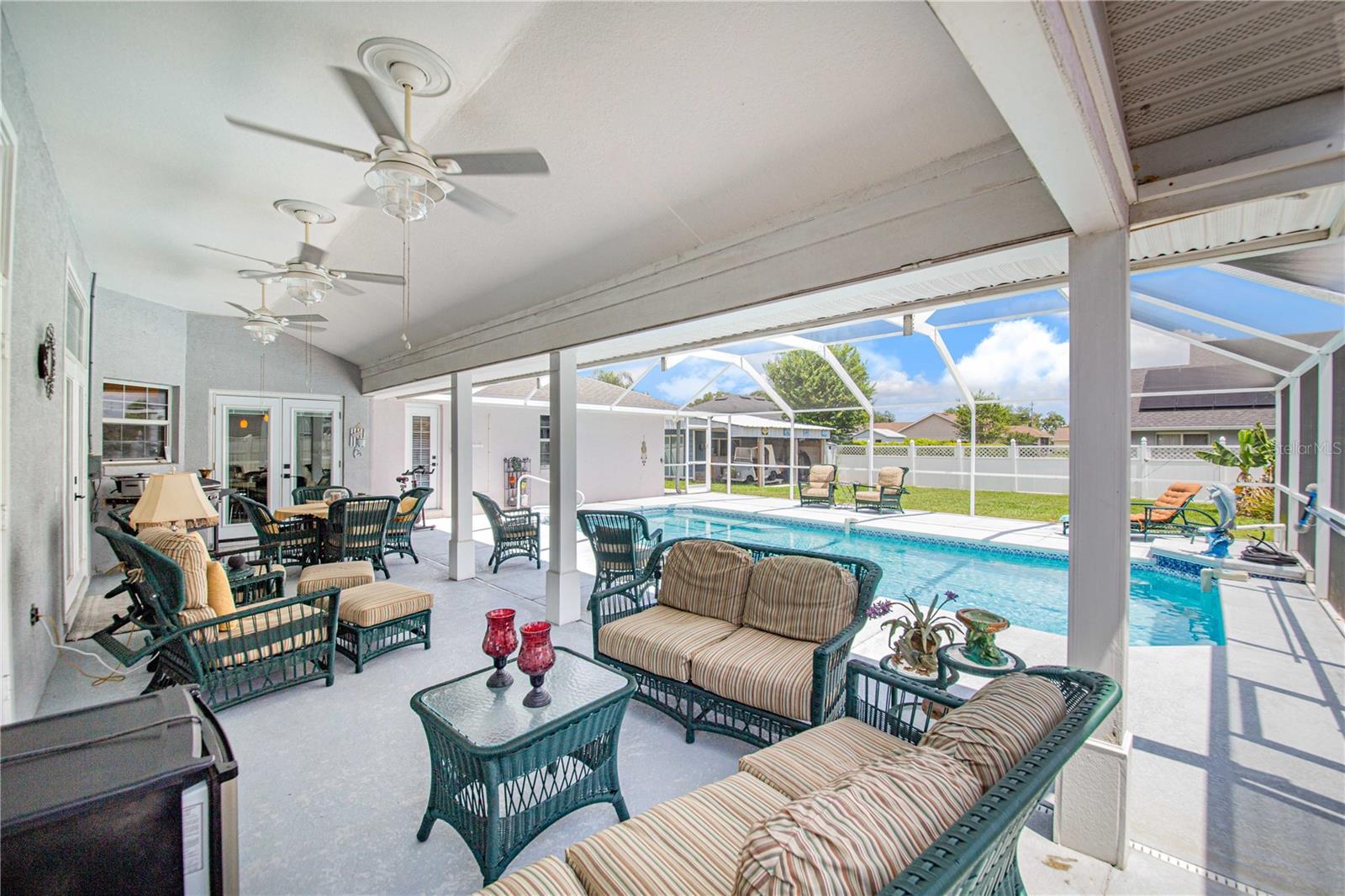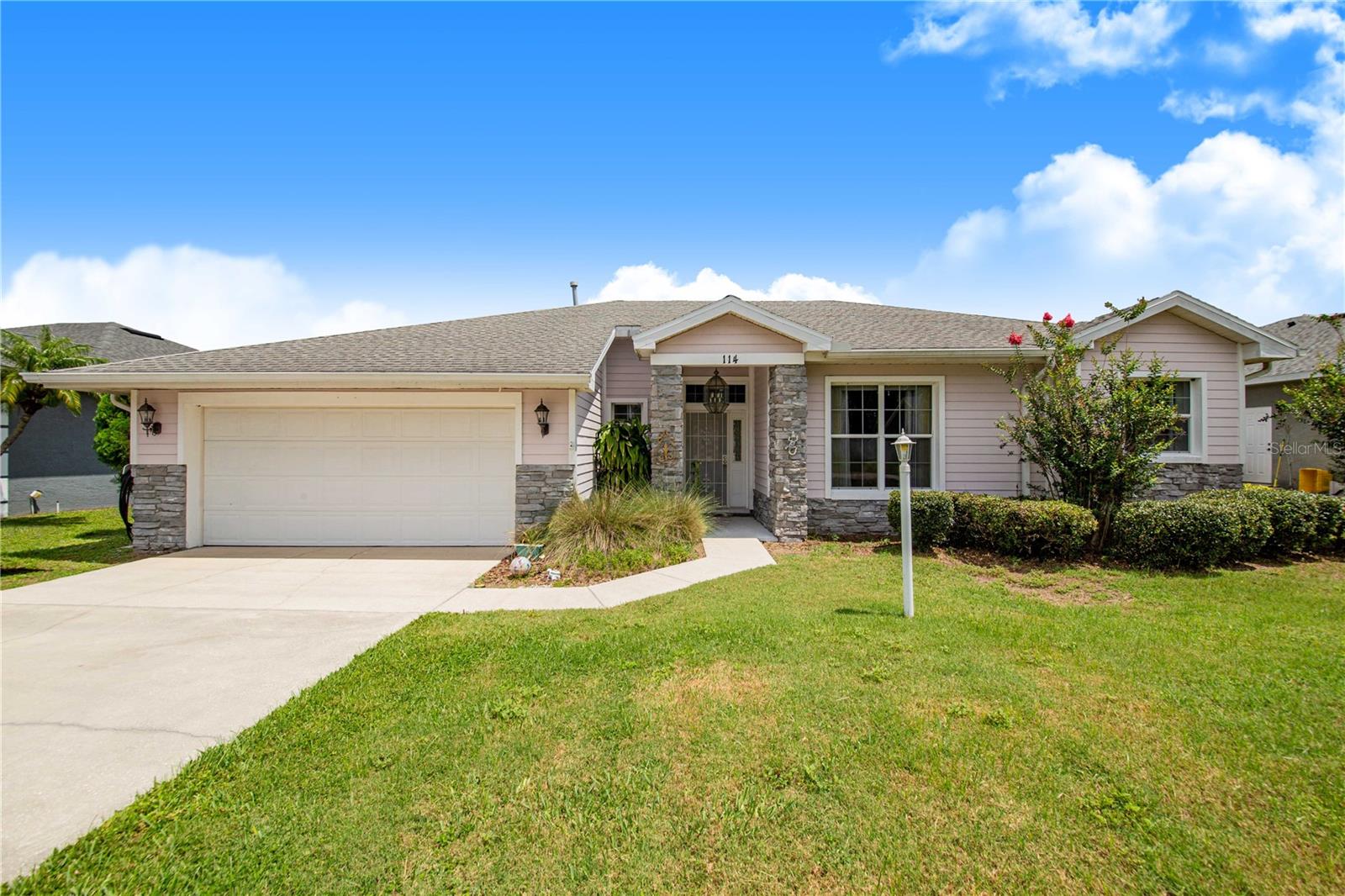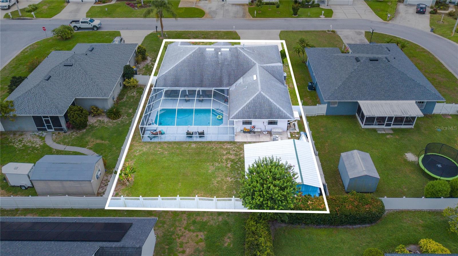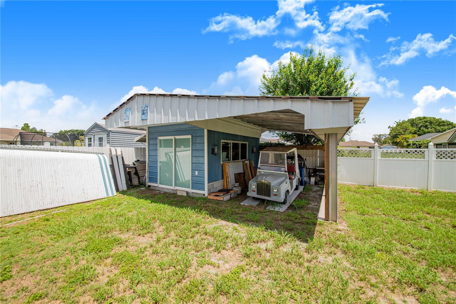 Welcome to this spacious and beautifully designed pool home, perfect for entertaining and family living! As you step through the front door, you’re welcomed by a tiled foyer leading to a formal dining room with elegant wood laminate flooring and a cozy den that overlooks the pool area. The kitchen features tile flooring, a gas stove, abundant cabinetry, and a farmhouse sink with views of the pool and backyard. A charming breakfast nook also looks out onto the lanai, making mornings bright and relaxing. The indoor laundry room includes built-in cabinetry for added convenience. The home boasts a split floor plan with three bedrooms located on one side, offering privacy and space for a growing family. The master suite features wood flooring, a walk-in closet, and a luxurious en-suite bath with tile flooring, a garden tub, walk-in shower, dual sinks, a linen closet, and decorative barn door-style shutters on a picturesque window above the tub. The spacious living room with wood flooring is ideal for relaxing or entertaining. A guest bathroom offers direct access to the pool area for added convenience. Outside, enjoy the screened chlorine pool, covered lanai with ceiling fans, and a dedicated cooking area—an entertainer’s dream! The backyard is fully enclosed with vinyl fencing for added privacy.C Additional highlights include a detached workshop—perfect for hobbies or extra storage—and a prime Central Florida location just minutes from major highways and theme parks.