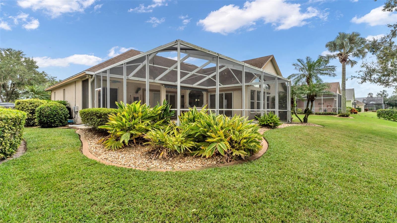 Welcome to this stunning 3 bedroom, 3 bathroom lake front pool home offering gorgeous views of Lake Ruby. Set on a prime waterfront lot, the property includes an oversized 3-car garage and a private boat dock complete with an automated boat lift, making it ideal for boating and lakefront living. Designed with entertaining in mind, the open layout seamlessly blends indoor and outdoor spaces. Sliding glass pocket doors open to a spacious lanai with a screened-in pool and spa, while a remote-controlled awning provides extra shade for relaxing afternoons or gatherings with friends and family. The master suite is a true retreat, featuring a luxurious bathroom with dual sinks, stone countertops, a garden tub, and a walk-in shower. The kitchen is equally impressive with granite countertops, a breakfast bar, and newer appliances. Additional features throughout the home include vaulted ceilings, crown molding, custom window treatments, and blinds that add style and sophistication. This home combines comfort, elegance, and waterfront living all in one.