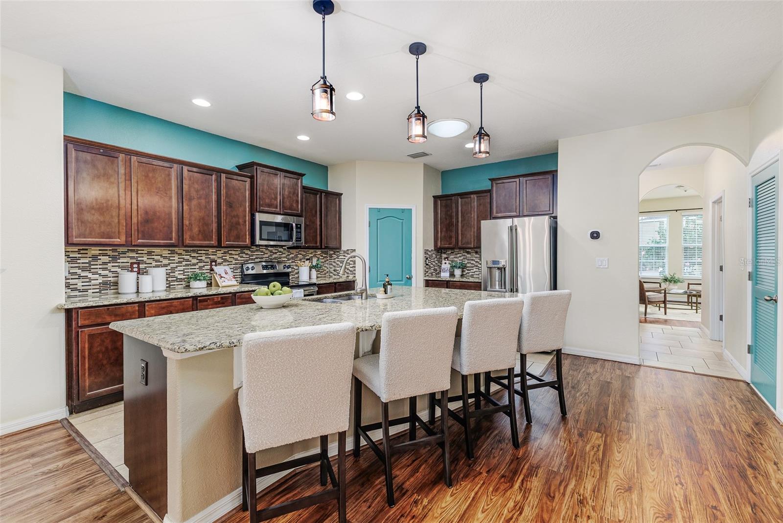COME SEE THIS BEAUTIFUL POOL HOME IN THE HEART OF CENTRAL FLORIDA! Gently meander through the charming gated community of Hampton Cove to this residence that offers a well-designed floorplan with a perfect blend of open-concept living areas and defined spaces. This spacious 4-bedroom, 3-bathroom home presents an inviting screened lanai entrance into the 2,720 SqFt of modern luxury living. The impressive foyer leads into the great room that truly has it all, with the living room, dining area, kitchen and sliding glass doors to the lanai and pool, all working in harmony for everyday living and when entertaining. A kitchen island links the areas and provides seating for casual meals or for serving space. Gorgeous granite counters, pendant lighting and smart backsplash compliment the beautiful cabinetry. A bonus room stands by the foyer and is perfect for a formal living room, office or den, allowing for a dedicated workspace or flex space to suit your needs. The home's split floorplan ensures privacy for the luxurious master suite, complete with extra space for seating, a large walk-in closet and an en-suite bathroom featuring a soaking tub, dual vanities and a walk-in shower. Three additional bedrooms plus two more bathrooms provide ample space for a growing family or house guests. All bedrooms have brand new neutral tone carpeted floors, while the living areas have attractive wood-look laminate flooring and the wet areas all have tile floors. Paver bricks cover the lanai, pool deck, the driveway and sidewalk. The screened lanai overlooks the privacy fenced backyard for relaxing in your outdoor space in peace; it's the ideal spot for barbecues, gatherings and enjoying a dip in the pool. This location is convenient to US Hwy 27, all of Winter Haven for shopping, schools, restaurants, medical and churches. It’s a short drive to I-4 for Orlando, Tampa, Gulf or Ocean Beaches; a great Central Florida location! Call today, schedule your private viewing of this fabulous pool home!