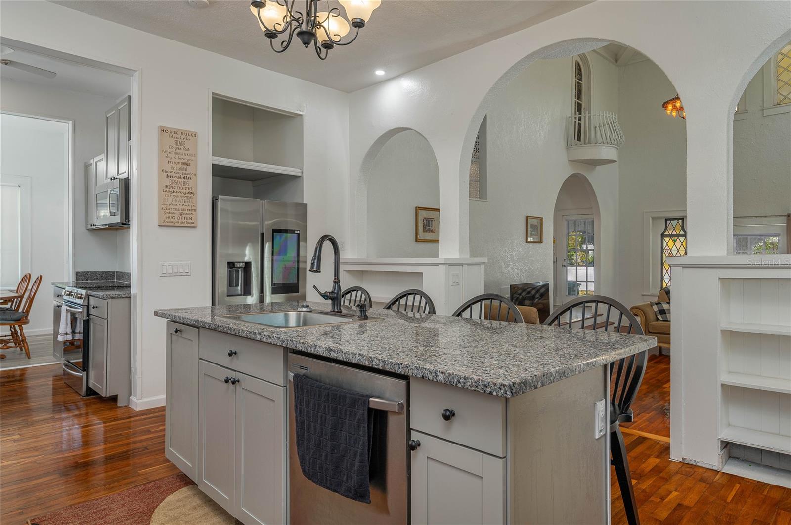 Stunning 2 story 3 bath Spanish home with attention to details. This home has been completely renovated, roof was completed in 2019, painted inside and out in 2020, new A/C in 2023, electrical and plumbing in 2023 and the sprinkler system in 2023. When entering into the family room you will immediately notice the vaulted beam ceiling,along with the 20-foot high fireplace. There are built-ins and bookcases throughout the home. Walking up into the kitchen, there is granite thoughout and stainless steel appliances, along with a breakfast nook. There is beautiful flooring throughout the home. On the first floor, there is another sitting room, along with a bedroom and additional renovated full bath. On the second floor, it provides the laundry room and two more bedrooms and two full baths. Going outside, there is a covered area where you can relax, and the property is fenced in. Another great feature is a detached studio that has been completely updated as well with a full kitchen and full size bathroom. It would be perfect for a In-laws suite or additional income. Please make your appointment today to view this great property.