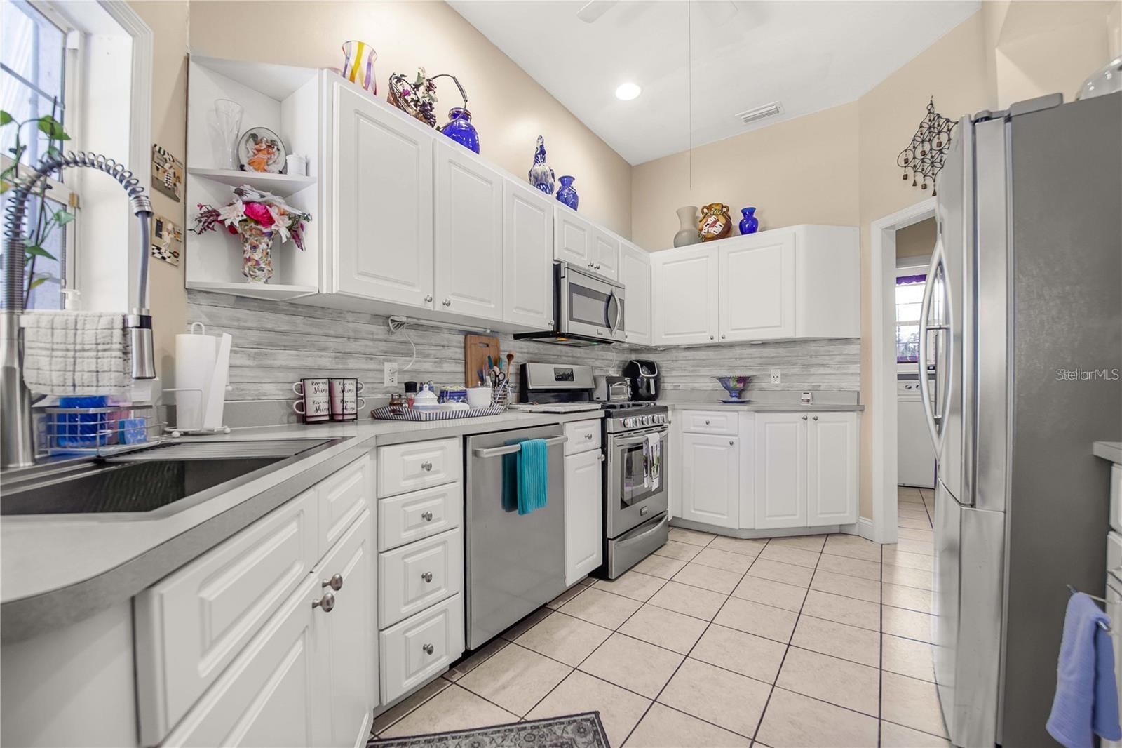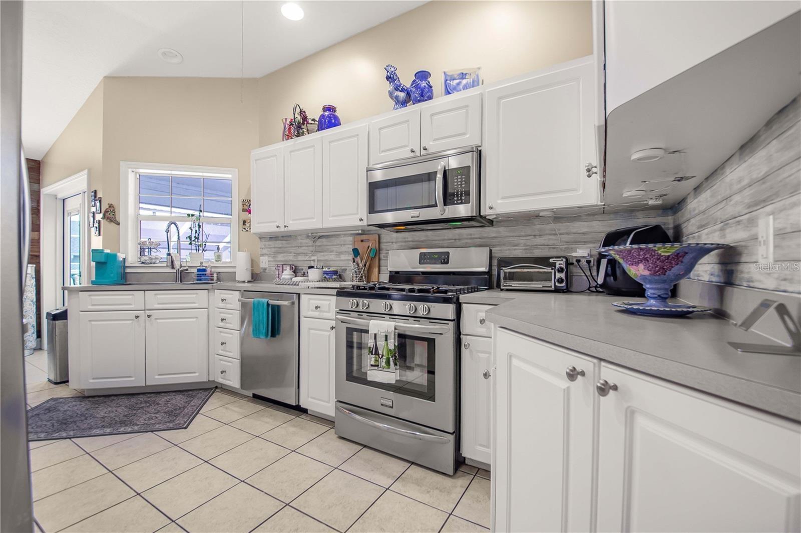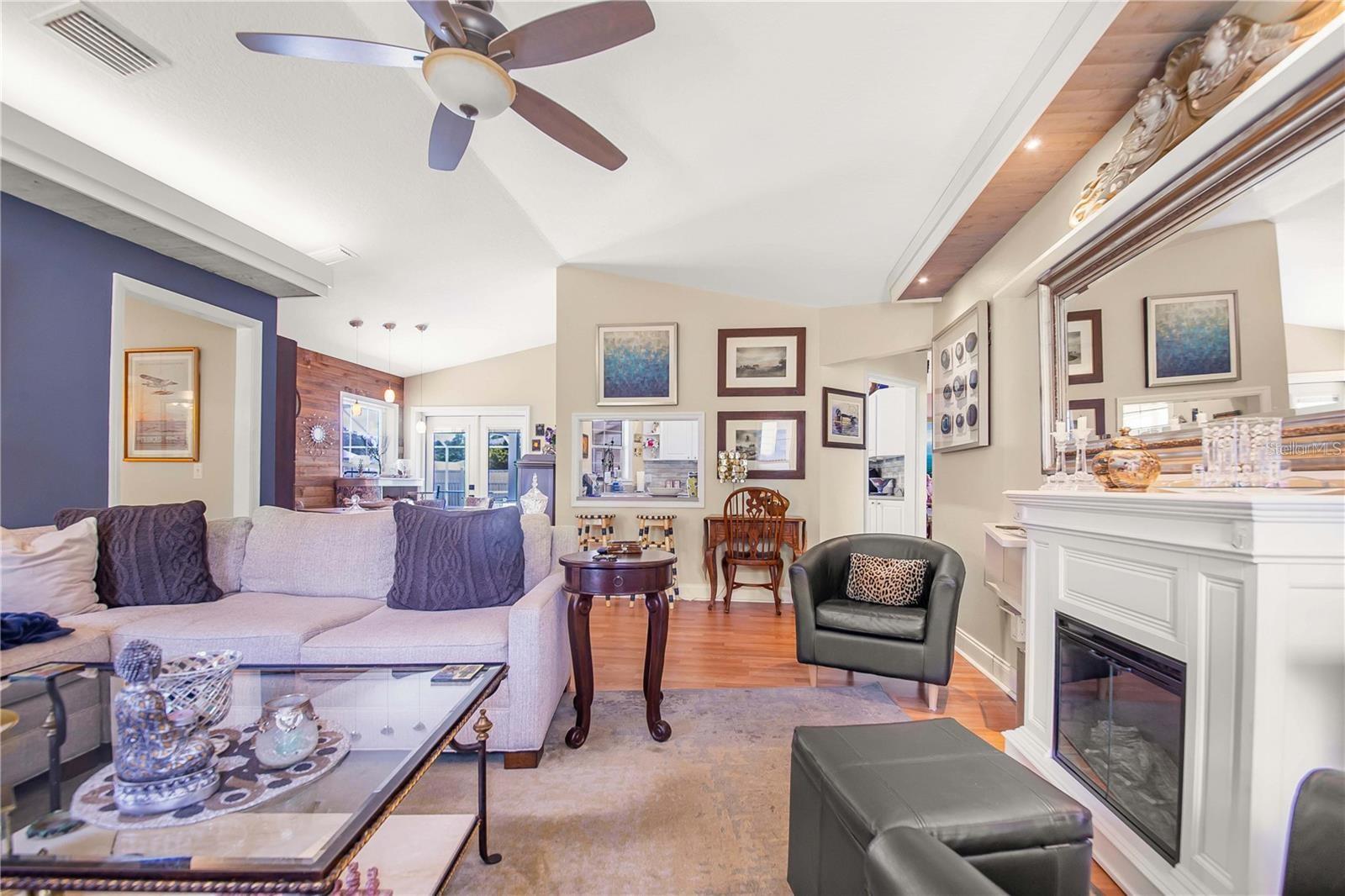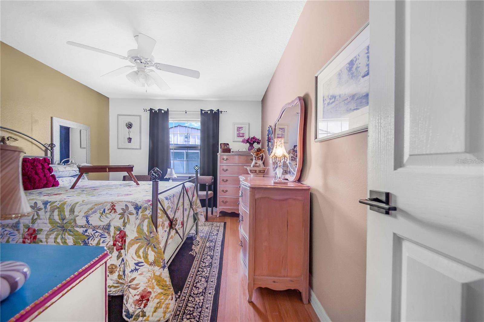 Welcome to this spacious and beautifully designed pool home, perfect for entertaining and family living! As you step through the front door, you’re welcomed by a tiled foyer leading to a formal dining room with elegant wood laminate flooring and a cozy den that overlooks the pool area. The kitchen features tile flooring, a gas stove, abundant cabinetry, and a farmhouse sink with views of the pool and backyard. A charming breakfast nook also looks out onto the lanai, making mornings bright and relaxing. The indoor laundry room includes built-in cabinetry for added convenience. The home boasts a split floor plan with three bedrooms located on one side, offering privacy and space for a growing family. The master suite features wood flooring, a walk-in closet, and a luxurious en-suite bath with tile flooring, a garden tub, walk-in shower, dual sinks, a linen closet, and decorative barn door-style shutters on a picturesque window above the tub. The spacious living room with wood flooring is ideal for relaxing or entertaining. A guest bathroom offers direct access to the pool area for added convenience. Outside, enjoy the screened chlorine pool, covered lanai with ceiling fans, and a dedicated cooking area—an entertainer’s dream! The backyard is fully enclosed with vinyl fencing for added privacy.C Additional highlights include a detached workshop—perfect for hobbies or extra storage—and a prime Central Florida location just minutes from major highways and theme parks.