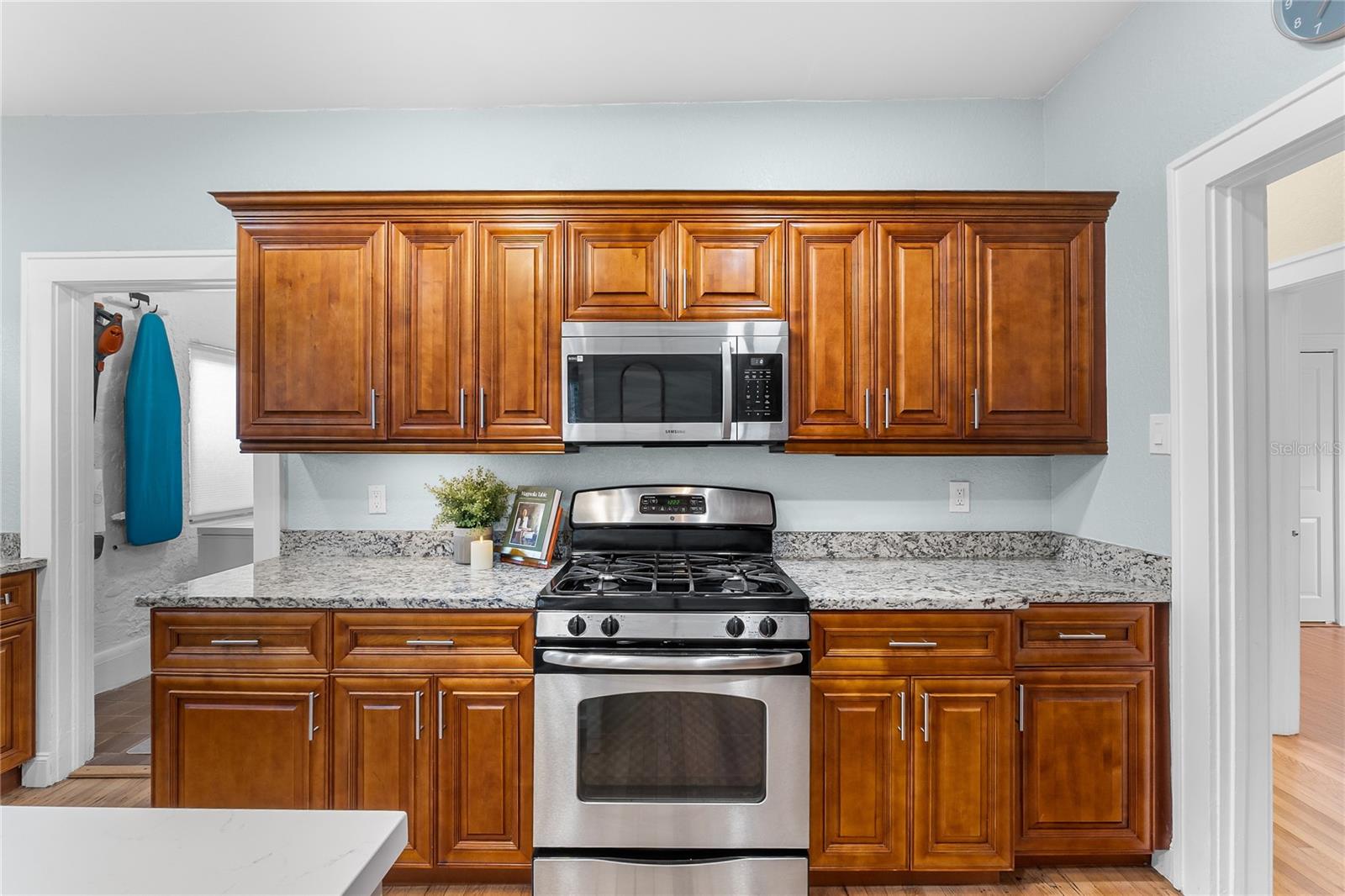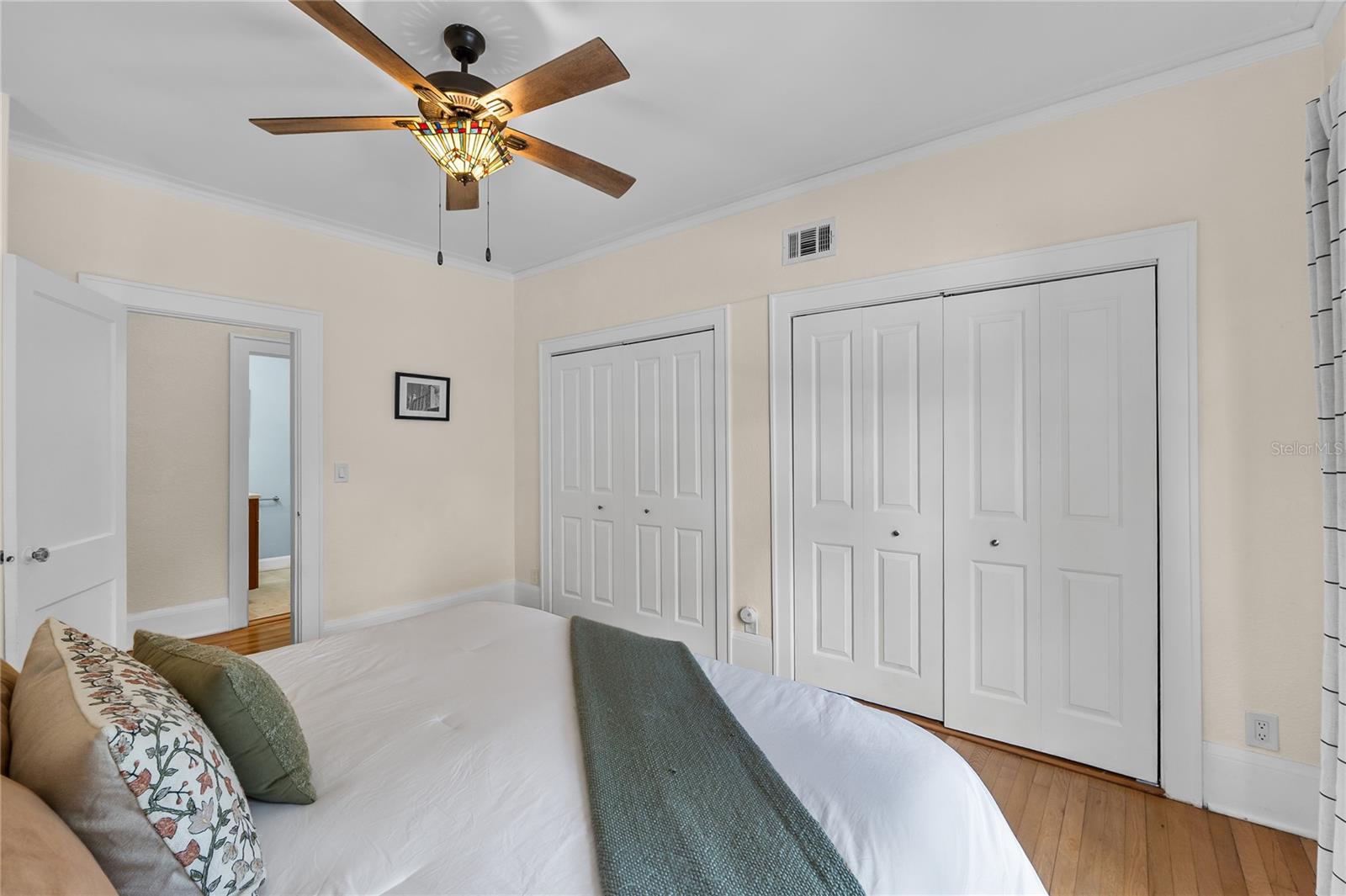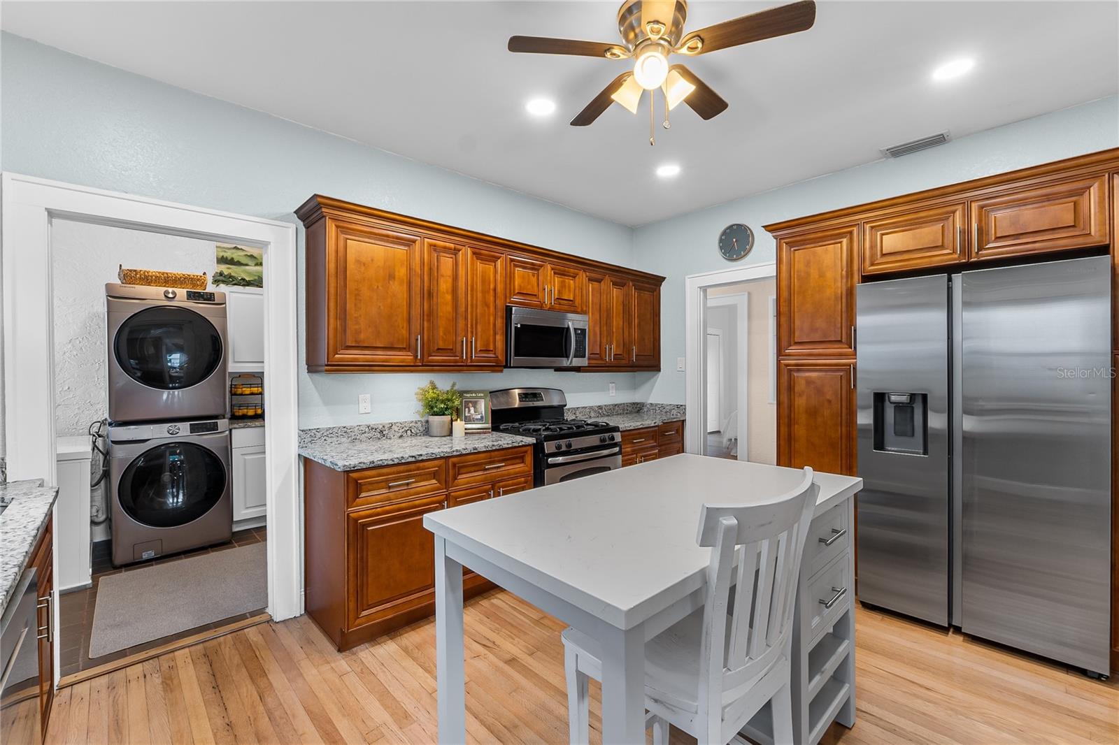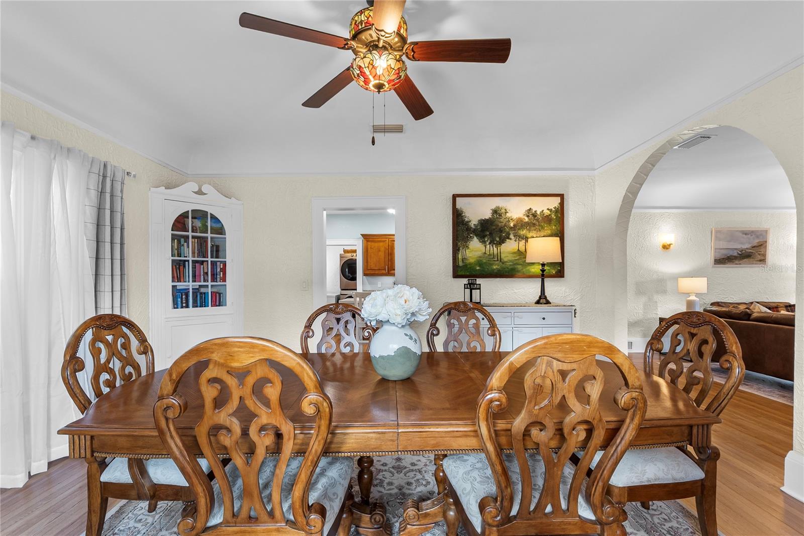 Beautifully restored and extensively renovated in 2021–2022, this Mediterranean Revival residence combines historic charm with modern comfort. Major system upgrades include a new roof, new electrical, new plumbing, new HVAC systems with new ductwork, and a well-fed sprinkler system—rare peace of mind for a historic home. Additional improvements include refinished hardwood floors, replastered and retextured walls, remodeled kitchen and baths, fresh interior/exterior paint, Tiffany-style fans, and period-inspired lighting. With city water and city sewer, this home lives effortlessly while retaining its timeless Spanish bungalow character. Ideally positioned across from Lake Cannon and near Lake Mirror on the scenic Winter Haven Chain of Lakes, the property is surrounded by tree-lined streets, beautifully preserved older homes, and refreshing lake breezes. Curb appeal shines with a textured stucco exterior, arched windows, mature palms, and an oversized double lot. A covered two-car carport, new concrete driveway, detached workshop, and professional landscaping complete the exterior. Inside, the home offers warm, inviting spaces filled with architectural detail. The formal living room features Saltillo tile floors, beadboard ceilings, and arched windows overlooking lush gardens. Nearby, the family room showcases original hardwood floors, a coved ceiling, and a gas-burning brick fireplace. A cozy computer nook provides a convenient work or study area. The formal dining room highlights softly curved ceilings, arched transitions, and charming glass-front corner built-ins. The updated kitchen blends vintage styling with modern function—wood cabinetry, soft-close drawers, granite counters, stainless steel appliances, and a walk-in pantry with laundry connections. Three bedrooms and two beautifully remodeled baths include a primary suite with French doors opening directly to the rear patio. Outdoor living is exceptional, with a private patio and a large backyard ideal for entertaining, gardening, or relaxing. The detached 18x19 workshop—complete with roll-up door, electricity, and concrete slab—offers space for woodworking, storage, or hobby use. Just minutes from downtown Winter Haven, shopping, dining, medical facilities, and major highways, this move-in-ready historic home provides quick access to public boat ramps and the full Chain of Lakes lifestyle. A rare opportunity to own a thoughtfully restored Spanish bungalow where character and modern updates blend seamlessly.