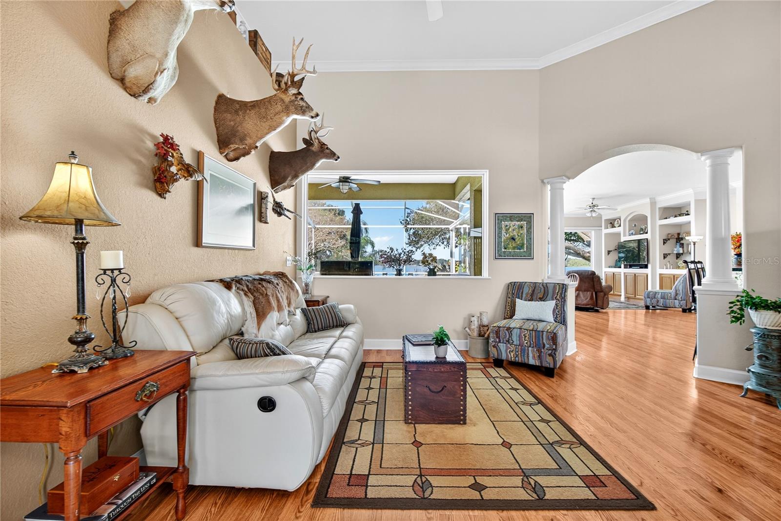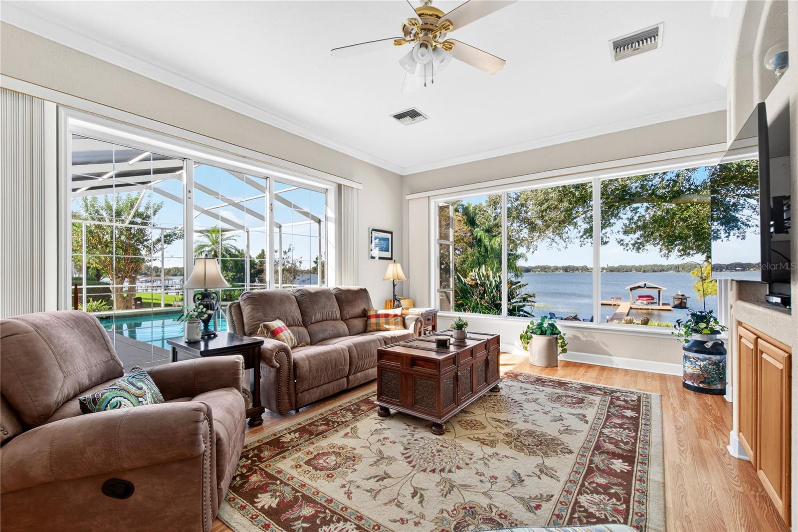 A truly wonderful lifestyle! Nestled in the charming, gated community of Ruby Lake, this beautiful 4-bedroom, 3-bath pool home provides the perfect blend of elegance and comfort. Known for being two of the most sought-after lakes for water skiing and fishing, Ruby Lake and Lake Bess are connected by a canal allowing for plenty of space for all water activities. Both feature slalom courses and jump ramps, delivering high excitement and endless entertainment! Perched on gentle elevation, this property boasts breathtaking sunsets and lush scenery, while also offering some of the best views in this quaint and walkable neighborhood. The elegant entryway leads to the formal living and dining area, with spectacular views of the pool and lake. High ceilings throughout the home, enter the open-concept kitchen, breakfast area, and family room that also showcase the incredible views through an abundance of windows. Savor the gentle breezes flowing through open windows and doors at the back of the home, as the calming sounds of the pool waterfall invite you to unwind. The spacious kitchen features plenty of cabinets, solid surface countertops, a generously sized closet pantry, and a welcoming layout, making it easy for everyone to participate in gatherings. The Main Bedroom serves as a private retreat offering the same stunning pool and lake views, featuring high ceilings, two walk-in closets, and a luxurious en-suite bath with a shower, tub, and dual vanities. A true split floor plan featuring spacious and inviting 2nd and 3rd bedrooms, with generously sized closets, wonderful views and a nicely appointed guest bath in between each. The 4th bedroom is currently being used as an office and is conveniently located near the full pool bath allowing privacy for the whole family and guests. The backyard is a true oasis, boasting a screened-in pool, an outdoor kitchen added in 2016, a relaxing sandy beach area, lush gardens, a dock with a boat lift built in 2020, and irrigation conveniently sourced from the lake. The dock also features a cozy sitting area, perfect for enjoying sunsets or catching the Legoland fireworks. Both the front and back yards create a tropical paradise, filled with majestic Palms, Oaks, Crepe Myrtles, and exotic plants that provide a park-like setting, reduce energy costs, and enhance the serene beauty. Park the car, step into the kitchen from the oversized two-car garage and enjoy the convenience of a spacious laundry room with storage just steps away. The large driveway offers plenty of space for family and guest parking. Relax with peace of mind knowing the roof was updated in 2022, the HVAC in 2020, and the water heater is newer. Enjoy this wonderful community and its proximity to all things Central Florida to include nearby theme parks, the Winter Haven Chain of Lakes, known as the "Water Ski Capital of the World", local shopping and restaurants and nearby beaches. Come home to this truly delightful and serene retreat—call today to schedule your private showing!