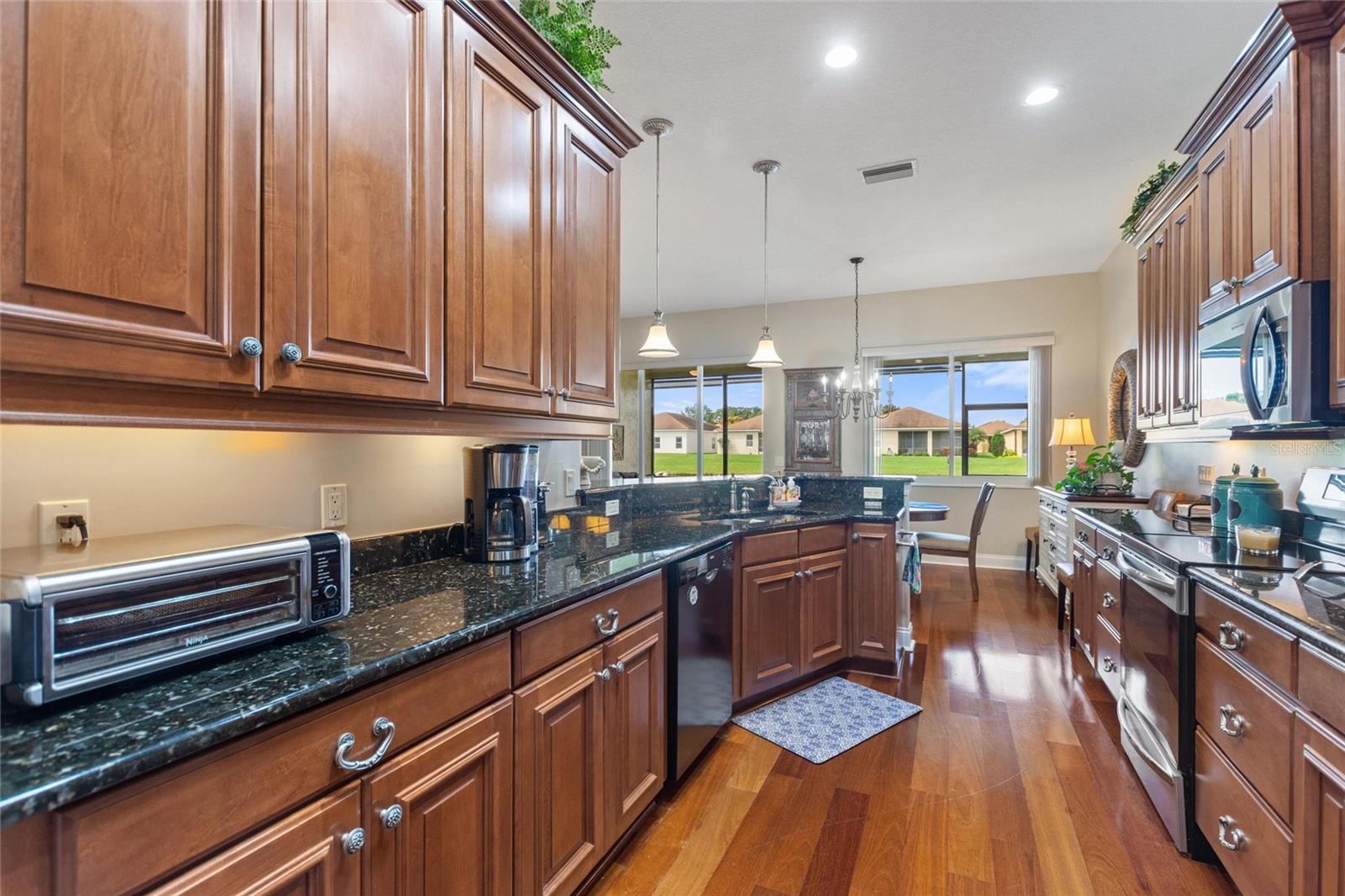THIS WELL-MAINTAINED HOME IS LOCATED IN A GREAT 55+ COMMUNITY CENTRALLY LOCATED IN WINTER HAVEN, FL. This home was the FIRST MODEL that features LOTS OF UPGRADES and is situated on a PREMIUM POND FRONT LOT that allows you to enjoy amazing sunsets from your (22x10) screened lanai. As you enter, you will be amazed by the BEAUTIFUL WOOD FLOORING, OPEN FLOORPLAN and SOARING 10+FT CEILINGS! The oversized kitchen is UPGRADED with an abundance of cabinetry including 42inch uppers with crown molding, plenty of pull-out drawers, GRANITE COUNTERTOPS and STAINLESS STEEL APPLIANCES. There is also plenty of built-in cabinetry in the laundry room for extra storage! The primary en-suite features a soaking garden tub, walk-in shower, dual vanity and walk-in closet with built in shelves. Some NOTABLE UPDATES include a NEW ROOF- 2022, NEW HOT WATER HEATER-2023, and NEW AIR HANDLER-2021. DOUBLE PANED WINDOWS add to the efficiency of this beautiful home. Don't forget about the clubhouse amenities and social activities including tennis/pickle ball, billiard room, craft room, movie room, gym, pool, hot tub, and meeting room with kitchen. Conveniently located just minutes from medical, shopping, dining and much more!