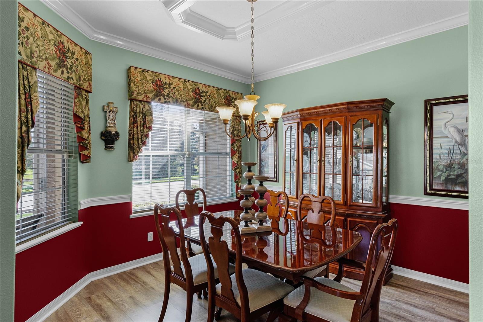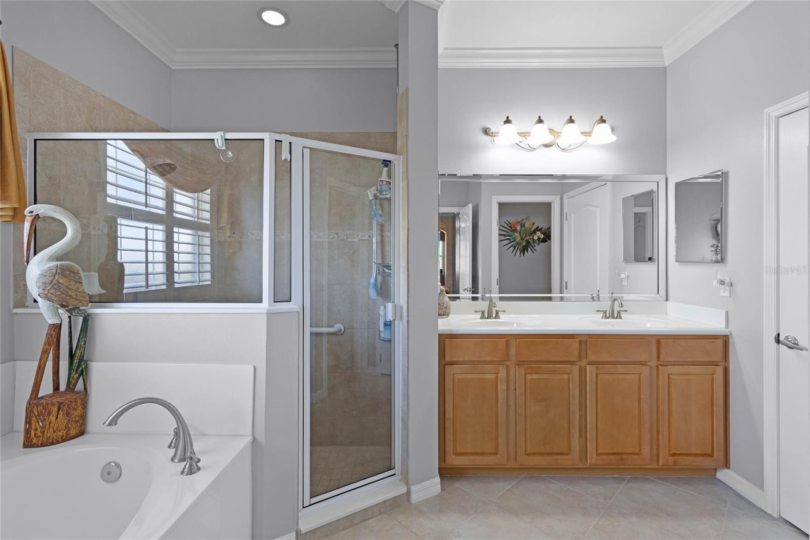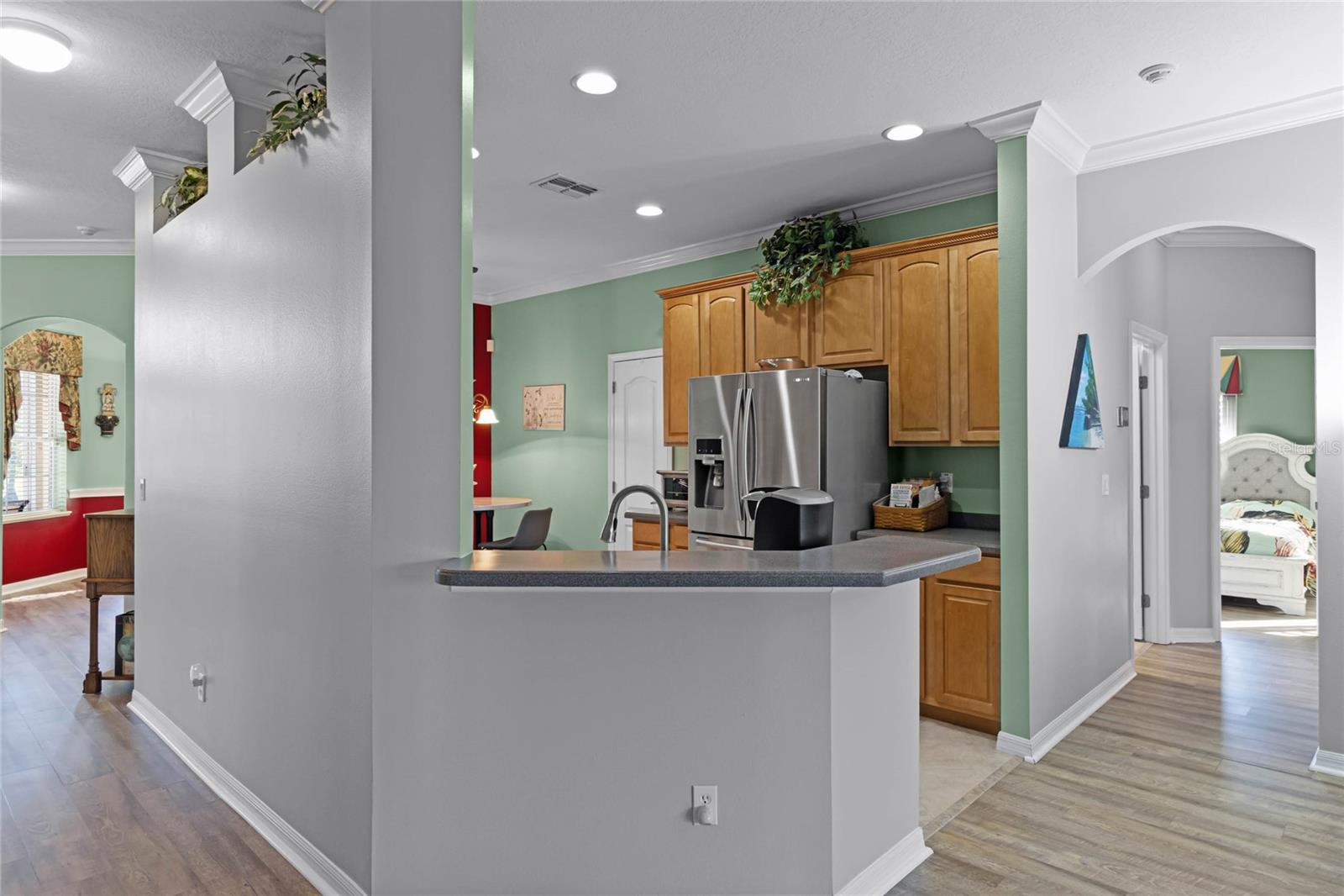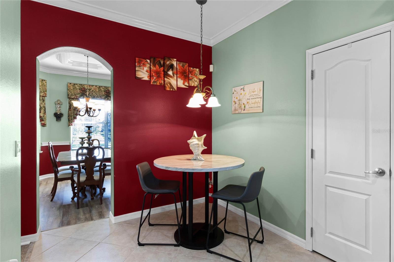 This stunning property is situated on a premium lot, offering picturesque views of the pond. Featuring a highly desirable split-bedroom floor plan, this partially furnished home includes three bedrooms and two baths. As you step inside, you're welcomed by a charming screened-in front porch with a leaded glass door and transom window. The kitchen boasts 42" upper maple wood cabinetry, accented with braided trim, crown molding, and convenient pull-out drawers. Recent updates include a new refrigerator and microwave, along with a closet pantry. Enjoy casual meals at the breakfast bar or in the cozy breakfast nook. The open-concept design seamlessly connects the formal dining room and living room, both of which showcase stunning pond views. The spacious great room is bright and inviting, featuring high ceilings and vinyl plank flooring. Architectural details like arched entryways, crown molding, and decorative niches enhance the home's elegant atmosphere. The four-seasons room, lined with large windows, allows you to enjoy the scenic views year-round. The generously sized primary bedroom suite serves as a private retreat, complete with plantation shutters and a cozy sitting area. Dual walk-in closets with overhead luggage shelves offer ample storage. The primary bathroom features a comfort-height vanity with double sinks, a linen closet, a seated walk-in shower, a water closet, and a luxurious garden tub. For outdoor enjoyment, the expansive screened-in lanai provides a peaceful space to relax. Additional features include a laundry room with a washer, dryer, utility sink, and extra cabinetry, solid surface flooring throughout, a water heater (installed in 2024), an upgraded HVAC system with an Aprilaire electronic filtration system, custom window treatments, an invisible dog fence, and a five-zone irrigation system with an irrigation meter. The home also boasts an architectural shingle roof (installed in 2019), professionally landscaped corner lot, pull-down attic stairs, alarm system, gutters, exterior lighting, paved walkway and driveway, and a two-car garage with shelving and a garage door opener. Residents of Traditions enjoy a wealth of amenities, including a lakefront clubhouse with a dock and boat ramp, heated swimming pool and spa, ballroom, billiards, meeting rooms, library, computer room, craft room, dog park, and courts for tennis, pickleball, basketball, bocce ball, and shuffleboard. The community also offers a fitness center, aerobics studio, and more. Conveniently located near shopping, dining, major routes, and Legoland, this home offers an exceptional lifestyle. The monthly HOA fee covers exterior house painting, cable, internet, lawn service, and clubhouse amenities, ensuring a maintenance-free living experience.