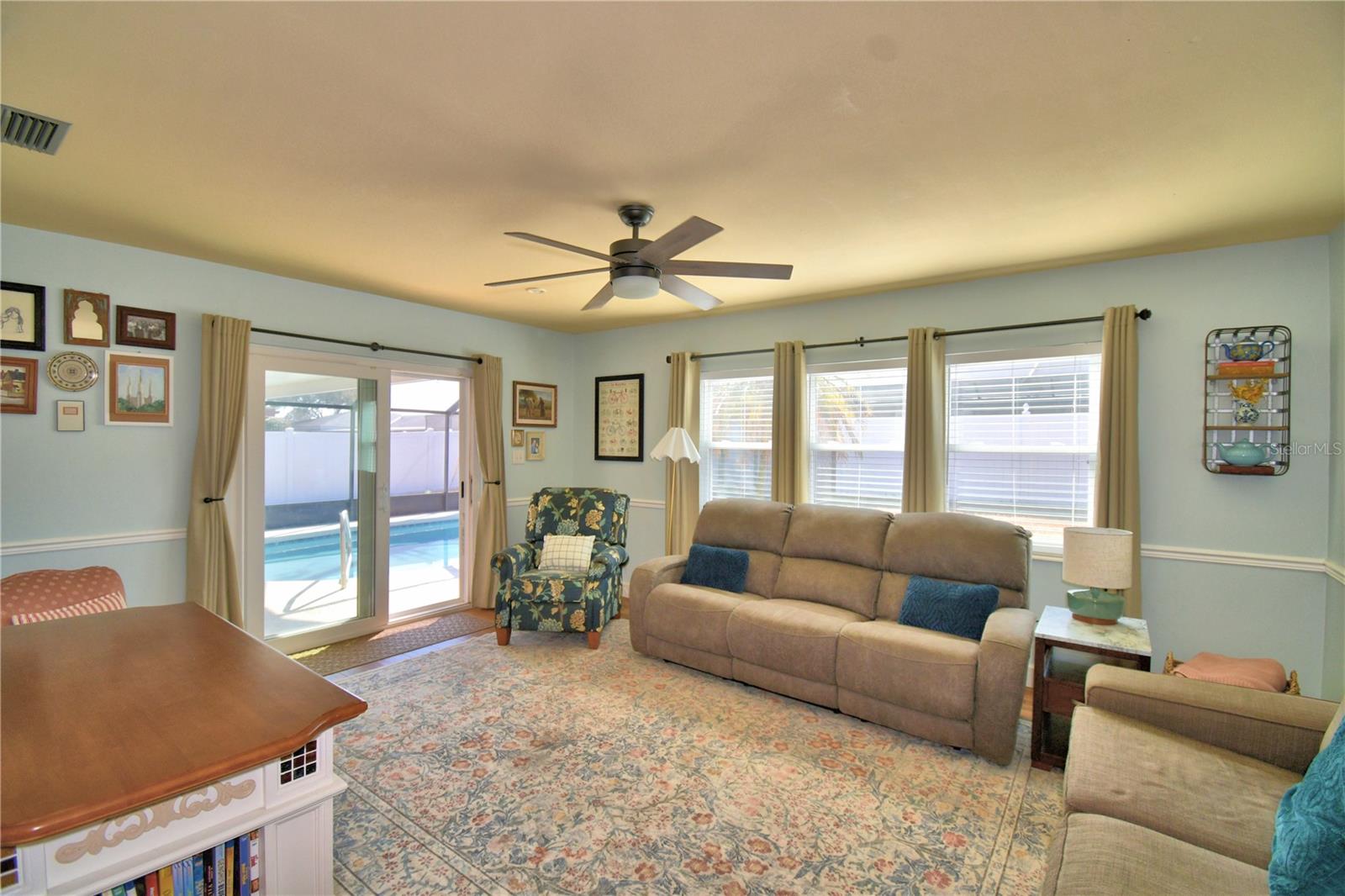 Private pool living starts here. Welcome to 141 Browning Circle, a well-maintained 2-bedroom, 2-bath home, tucked inside a charming, established neighborhood with no HOA. Designed for true Florida living, you step directly from the home onto a screened porch that opens to your private pool and fenced backyard—creating a seamless indoor-outdoor setting ideal for relaxing or entertaining. The outdoor space offers both privacy and comfort, making it a standout feature of the property. Inside, the layout provides both formal and casual living areas. A formal living room greets you as you enter, while the family room off the kitchen is filled with natural light from surrounding windows. The primary bedroom includes a flexible area with built-in shelving, perfect for a home office, reading nook, hobby room, or additional storage. Major updates include a roof approximately four years old, offering added peace of mind. The landscaped yard is maintained by an irrigation system, and the extended driveway provides ample parking. Conveniently located near Legoland, Publix, shopping, dining, and everyday conveniences, this home combines comfort, location, and the Florida lifestyle so many buyers are looking for.