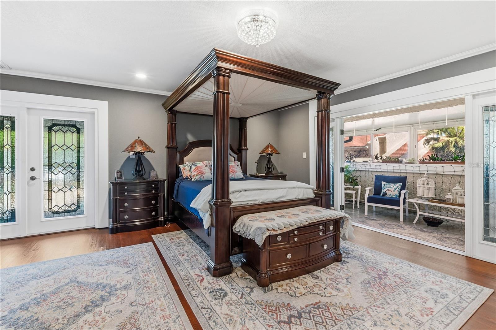 This dynamically unique home in Winter Haven offers waterfront living, with direct access to the renowned Chain of Lakes. Ideally situated on Lake Cannon, the property delivers stunning water views and a peaceful setting that’s hard to match. Located within a gated, low-maintenance community, this home allows you to enjoy all the perks of ownership without the added upkeep. The community pool and hot tub sits just steps away—offering the feel of a personal pool without the responsibility. Residents also enjoy access to a community dock with first-come, first-served boat slips, making it easy to embrace the lake lifestyle. The property itself features an extended lot, a fenced yard, and a beautiful pergola—perfect for relaxing, entertaining, or enjoying the serene lakefront setting. The garage is equipped with a 2021 split-unit AC system, creating a versatile space ideal for a workshop, gym, or even additional living area. For added peace of mind, the home includes a gas-powered generator that automatically kicks on when needed. Inside, the home is nothing short of impressive—boasting soaring cathedral ceilings, expansive balconies with breathtaking views, and a layout that is both majestic and thoughtfully designed. The primary suite is a true retreat, featuring a private balcony, dual vanities, and a luxurious soaking tub designed for relaxation. Additional office and bonus spaces offers flexibility and can easily be converted into extra bedrooms to fit your needs. Updates include two AC units installed in 2017, along with a durable metal roof added in 2021 and the roof tiles were sealed and coated for an extra long life. Whether you’re looking for a full-time residence, a seasonal getaway, or a place to gather with family and friends, this home delivers a warm, inviting atmosphere with unique architectural character throughout. Enjoy peaceful mornings overlooking the lake, afternoons gardening in your yard, or evenings unwinding on the balcony while taking in the surrounding wildlife. Conveniently located near shopping, grocery stores, and Home Depot, this is more than just a home—it’s a lifestyle. A property like this must be seen in person to truly appreciate the grandeur and exceptional living experience it offers.