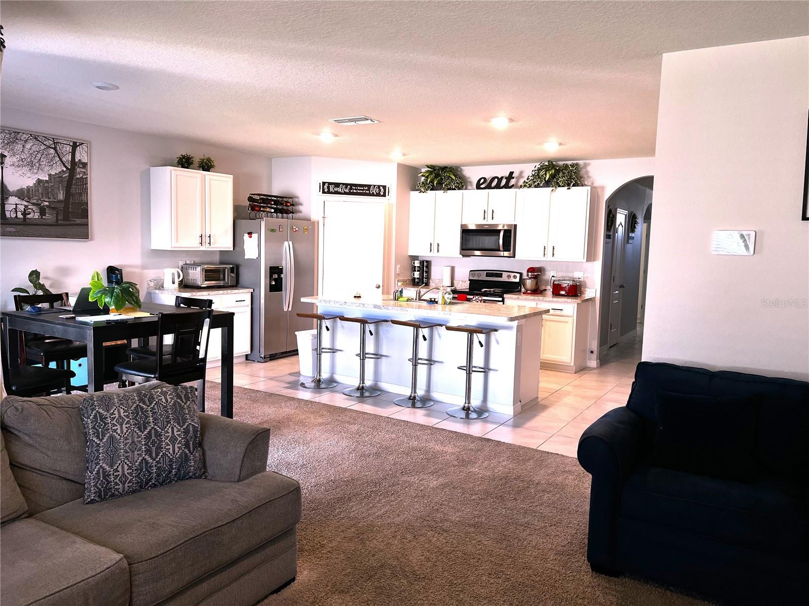 Nestled in a vibrant community near world-renowned attractions, this stunning four-bedroom, two-bath home offers a perfect blend of comfort and style. The open-concept design seamlessly integrates the spacious kitchen, dining, and family rooms, creating an inviting space for entertaining family and friends. large windows flood the area with natural light, highlighting modern finishes and thoughtful details throughout. Step outside to a fully fenced backyard, providing a private oasis for relaxation and play. The community boasts a fantastic pool perfect for cooling off on sunny days and offers easy access to Disney parks, Lego Land, premier shopping areas, and a variety of restaurants. This home is a dream come true for those seeking a harmonious blend of convenience, comfort, and entertainment.