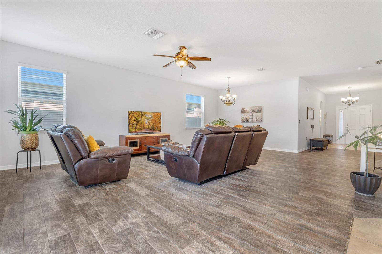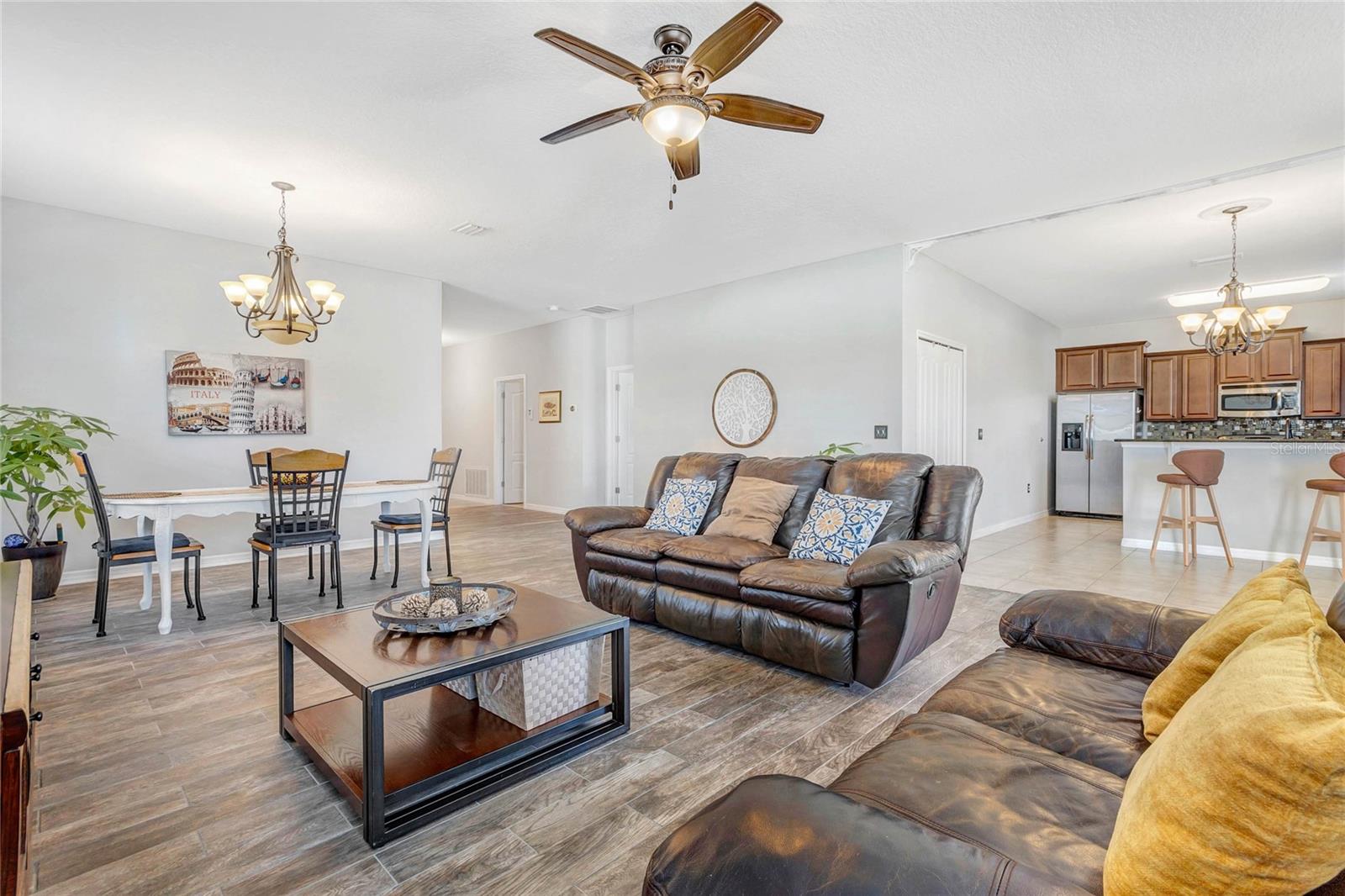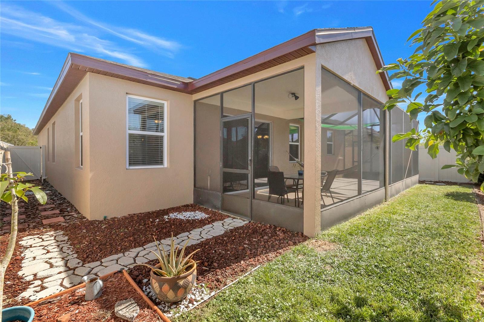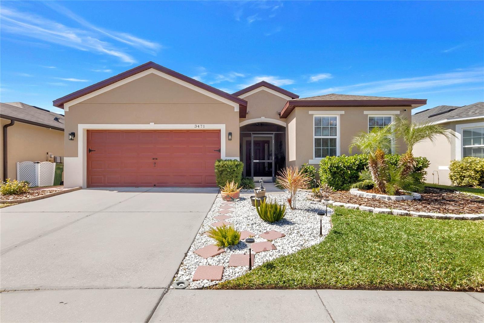 Fall in love and Indulge in perfection! Welcome to your breathtaking dream home featuring 3 bedrooms, 2 baths, and over 1895 SF of luxurious living space, meticulously crafted in 2013. More than just a home, this property embodies a lifestyle upgrade awaiting your presence. Nestled within a serene neighborhood adorned with pristine homes and lush surroundings, this address is your personal haven. Experience the epitome of lakeside living in this charming home nestled within the tranquil Lake Smart community. Enjoy access to a community pool, perfect for relaxation and sun-soaked days. Additionally, residents can take advantage of the community dock area, offering breathtaking views of Lake Smart. Don't miss the chance to reside in a peaceful lakeside setting with exceptional community amenities! This residence is not only visually stunning but also intelligently designed. With security cameras and an alarm system in place, your peace of mind is guaranteed. Step inside to discover a chef's kitchen adorned with custom granite countertops, 42” solid wood cabinets, stainless steel appliances, and more. One of the 3 bedrooms boasts plush new carpeting, creating a cozy retreat for relaxation. Step outside to uncover your private paradise. The lanai invites leisurely afternoons, complete with a hammock and captivating LED lights, creating a magical ambiance. The backyard features an avocado tree and a quick-connect for a generator, enhancing your convenience. Perfectly positioned near shops, restaurants, and parks, convenience and enjoyment are at your fingertips. Whether seeking a tranquil retreat or a vibrant community, this home promises an enchanting living experience. Don't let this opportunity slip away - seize the chance to make this your forever home!