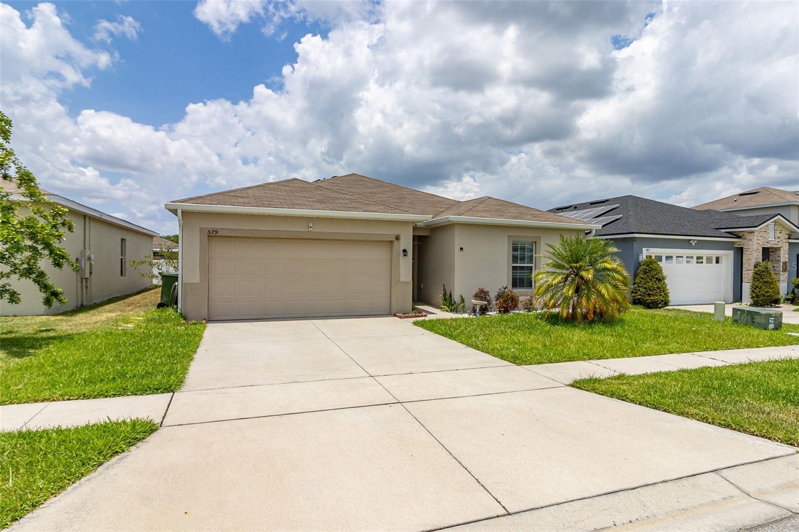 Do not miss the opportunity to own this charming home located in a LOW HOA and NO CDD community! This home has it all! SOLAR PANELS WILL BE PAID OFF AT CLOSING, meaning your electricity bill could be from $0-$30 a month. This floor plan makes this cozy residence a comfortable family home. Featuring 3 bedrooms, 2 bathrooms and an OPEN CONCEPT great for entertainment and family gatherings. CERAMIC TILE THROUGHOUT the entire house, NO CARPET! Enjoy cooking your favorite meals in this comfortable kitchen that features an ISLAND, STAINLESS STEEL APPLIANCES and a SPACIOUS PANTRY. The Master Suite is completely separate from the other two rooms offering the privacy that you deserve. LAUNDRY with WASHER and DRYER INCLUDED! RAIN GUTTERS in the front of the house. A WATER SOFTENER SYSTEM is also INCLUDED! Lakes at Lucern Park is conveniently located close to restaurants, shopping, grocery stores, US 27, Disney, I-4 and much more... CALL TODAY to schedule a showing!
