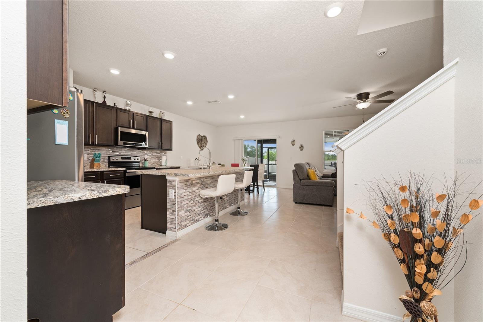 Beautiful 5 bedroom 3 Bathroom home with many upgrades!! PRICE TO SELL!! The huge Master Suite with a spacious walk in closet. The kitchen has beautiful backsplash, island with a beautiful stainless steel Kraus sink and open floor plan are ideal for entertaining all in a beautiful ceramic tiles on the first floor. This home includes Stainless steel appliances, blinds and ceiling fans included. Home is connected! Smart Home Technology with Alexa, you can control your home temperature, close and open the door and more from your phone. Smart garage door opener also included also in the garage you will have a washer and dryer connection available. This spacious home is Conveniently located close to shopping, School and entertainment. Community has a beautiful pools and playground all with breathtaking lake view! Do not forget the wonderful patio, the property is already fenced for your convenience also you will find a spacious, screened and covered pergola, professionally done with a ceiling fan perfect to relax or spend time family time, a big backyard ready for your imagination. Also the house has an intelligent irrigation system. Do not wait and Make your appointment to see this beautiful Gem!!
