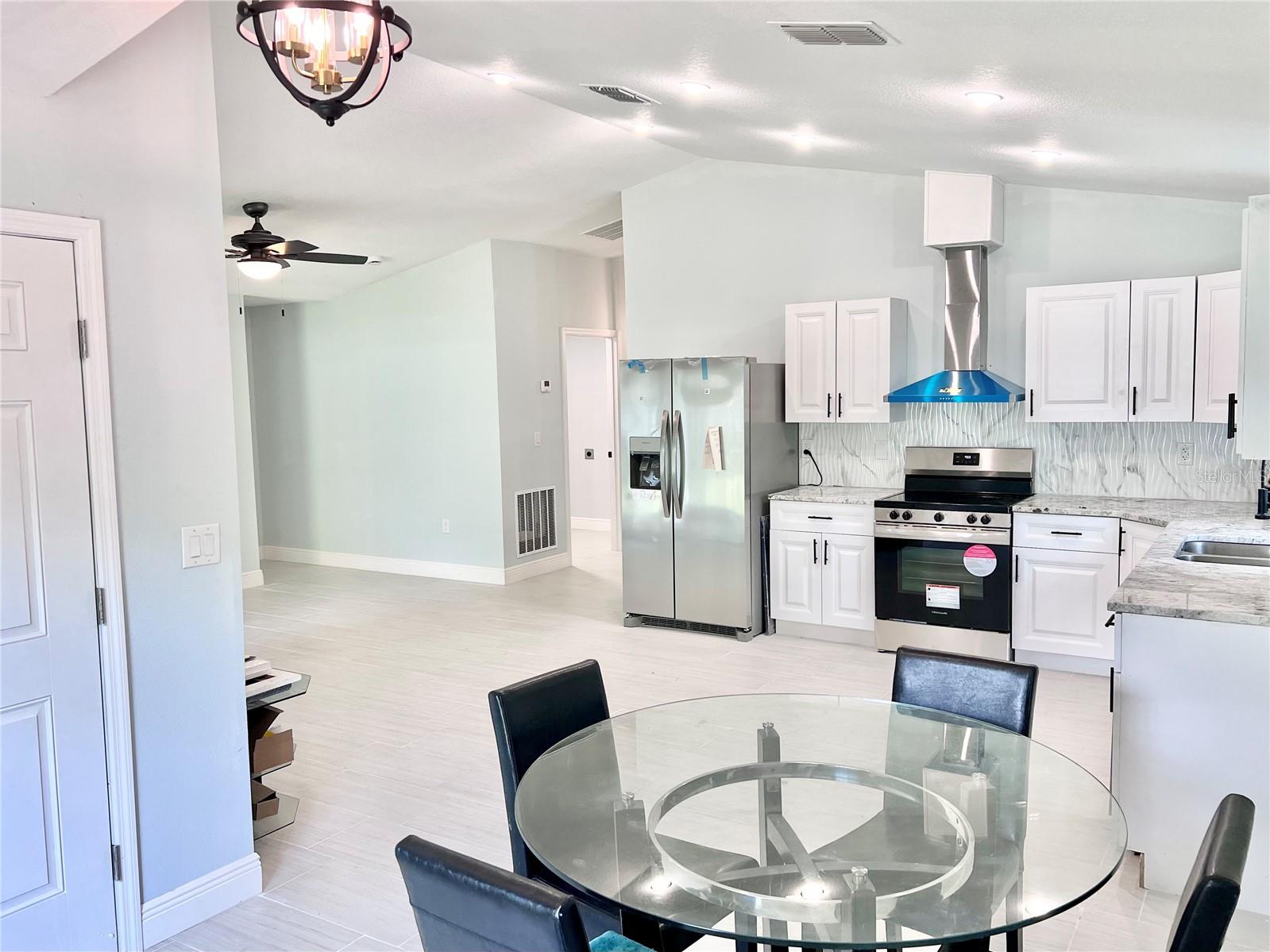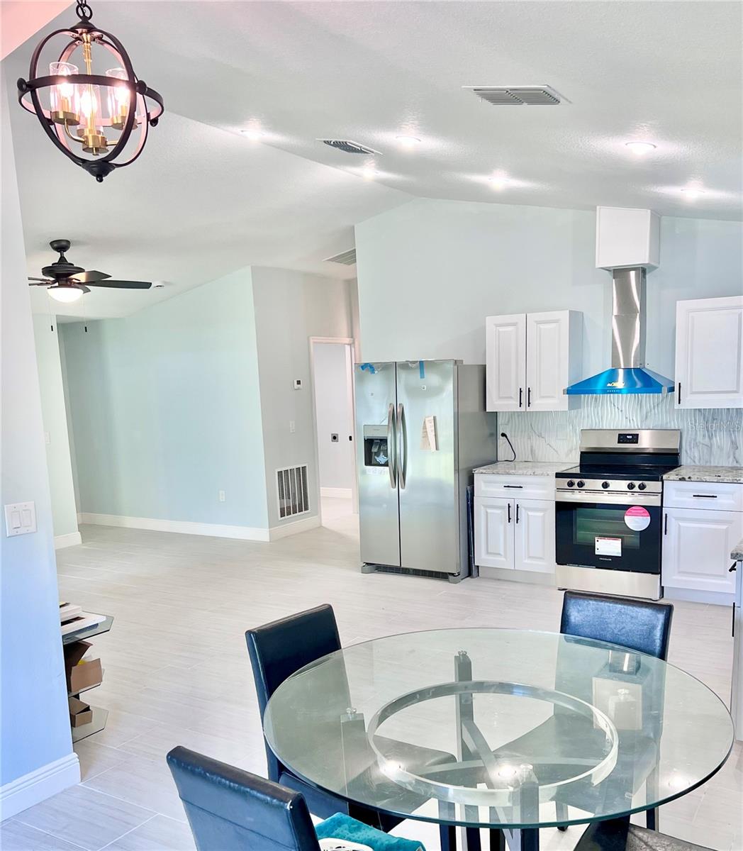 New construction home in Winter Haven. This newly constructed, single-story gem is perfectly situated just a short distance from downtown, hospitals, restaurants and stores allowing you to enjoy both the tranquility of suburban living and the vibrancy of city amenities. Step inside to discover an inviting open floor plan designed for seamless living and entertaining. The spacious living area flows effortlessly into the dining and kitchen spaces, creating a warm and welcoming atmosphere. High ceilings enhance the sense of openness, while elegant ceramic tile flooring runs throughout the home, providing both style and easy maintenance. The heart of this home is the kitchen, which boasts sleek granite countertops and a full suite of stainless steel appliances. The master suite is a true retreat, featuring a beautiful tray ceiling that adds a touch of sophistication. The ensuite bathroom is designed with relaxation in mind, standing shower and double vanity sinks with contemporary fixtures and finishes. With three well-sized bedrooms and two bathrooms, this home provides ample space for family and guests. Each room is thoughtfully designed to maximize comfort and functionality, ensuring that everyone has their own private sanctuary. The outdoor space complements the interior perfectly with large back yard and wood fence provide a serene environment for enjoying your mornings or evenings.