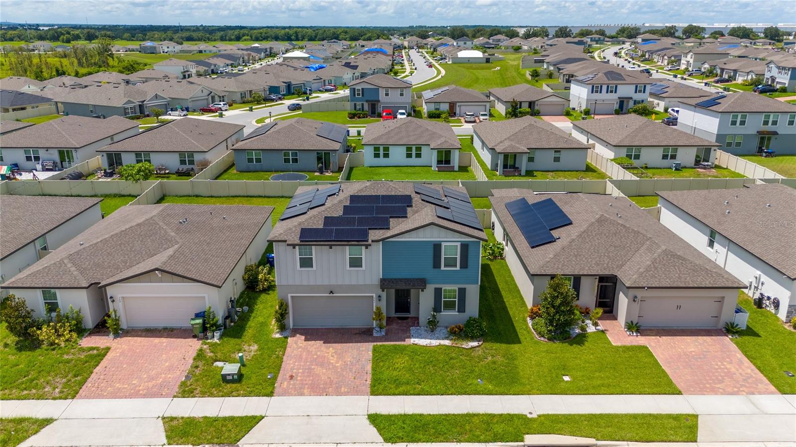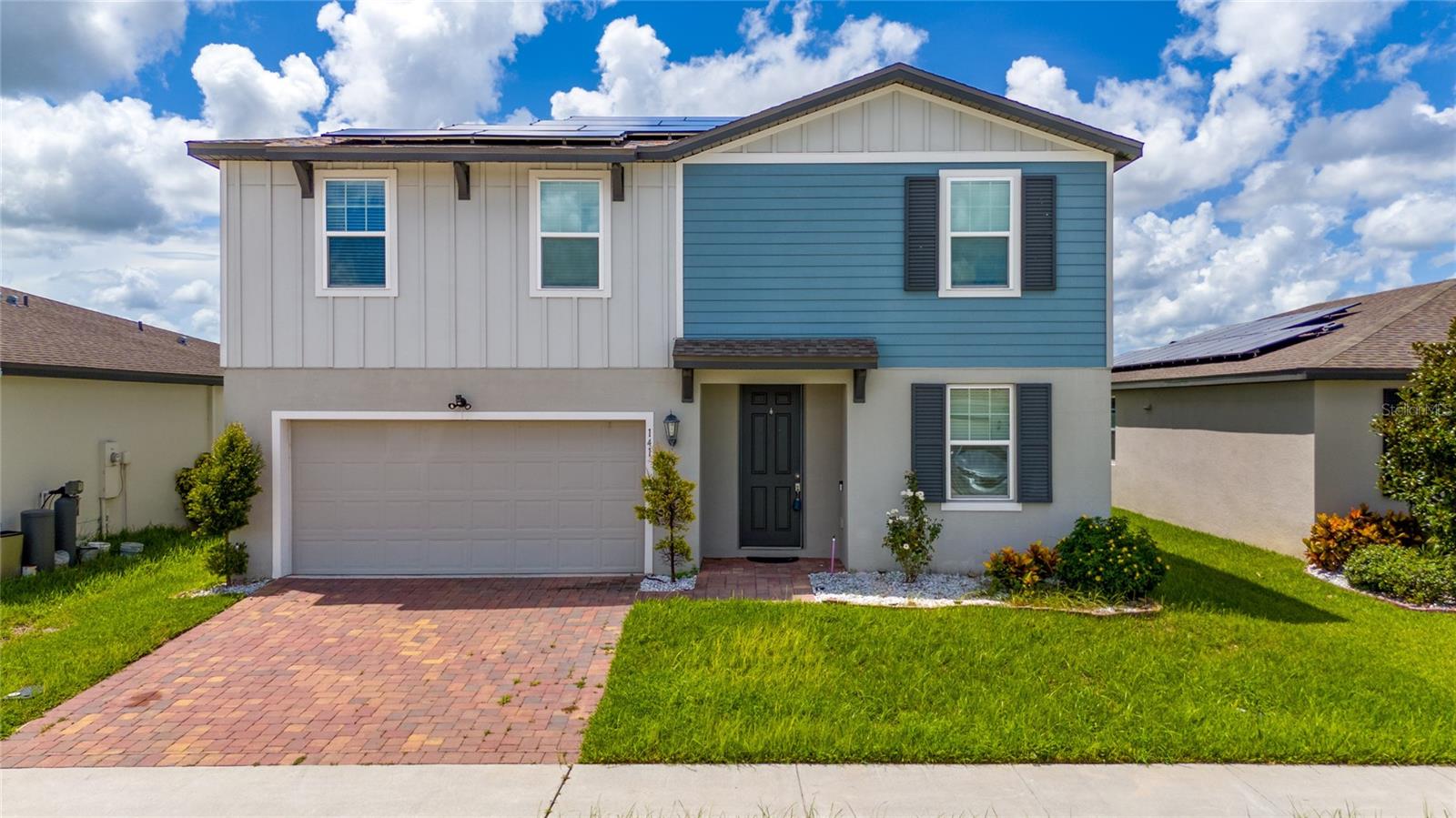 Welcome to this Immaculate 4-bedrooms 2.1-bath, It could be your perfect family home or investment property. As you enter the drive way, you'll be greeted with a charming land scaping. This beautiful 2-stories home features a spacious and elegant floorplan for your family and guest entertainment! This house has it ALL: 4 bedrooms and 2/1 baths. Great dining room, Indoor laundry room, It features an open floor plan and LOTS OF CUSTOMS HIGH-END UPGRADES. As you enter the house you'll be welcome into a peaceful atmosphere, with plenty of natural lighting, high ceiling and modern tile flooring. Towards your right, you'll find the Pleasant dinning area, followed by hallway towards the open concept Kitchen and living/family room area. The Kitchen features a large Island, granite counter tops, backsplash, upgrades cabinets, coffee station, equipped with stainless steel appliances and a large food pantry closet. The Living/family room is so charming and elegant with a custom-made stonewall. All windows are energy efficient! In the second floor awaits you another family/flex room, ready for your creativity: a movie theater, game room, gym, or it will serve your functionality needs. There's also 3 spacious bedrooms that share the second Bathroom with double sink and granite counter. The ample Master Bedroom features an En-Suite bathroom and walk-in closet. This house has everything you need: THIS IS AN ENERGY EFFICIENT HOME WITH RENEWAL ENERGY! to SAVE$$$ IN YOUR ELECTRICAL BILL and to contribute to a more sustainable planet! SMART HOME SYSTEM INSTALL WITH CAMARAS, WATER SOFTER, EXTRA Storage cabinets in the Garage, and Laundry room. Large back yard with extend porch paver's floor. LOW HOA. The Community is quite and neighbors are friendly. There's a COMMUNITY POOL, PLAY GROUND and a beautiful LAKE to go around in those exercise routines. Close to Restaurants, Walmart, Shopping. Just 35 MINS drive TO DISNEY WORLD and close to many other THEME PARKS in Orlando, Kissimmee and Tampa! Call today to Schedule a showing and Experience all the great things the Florida living style.